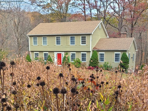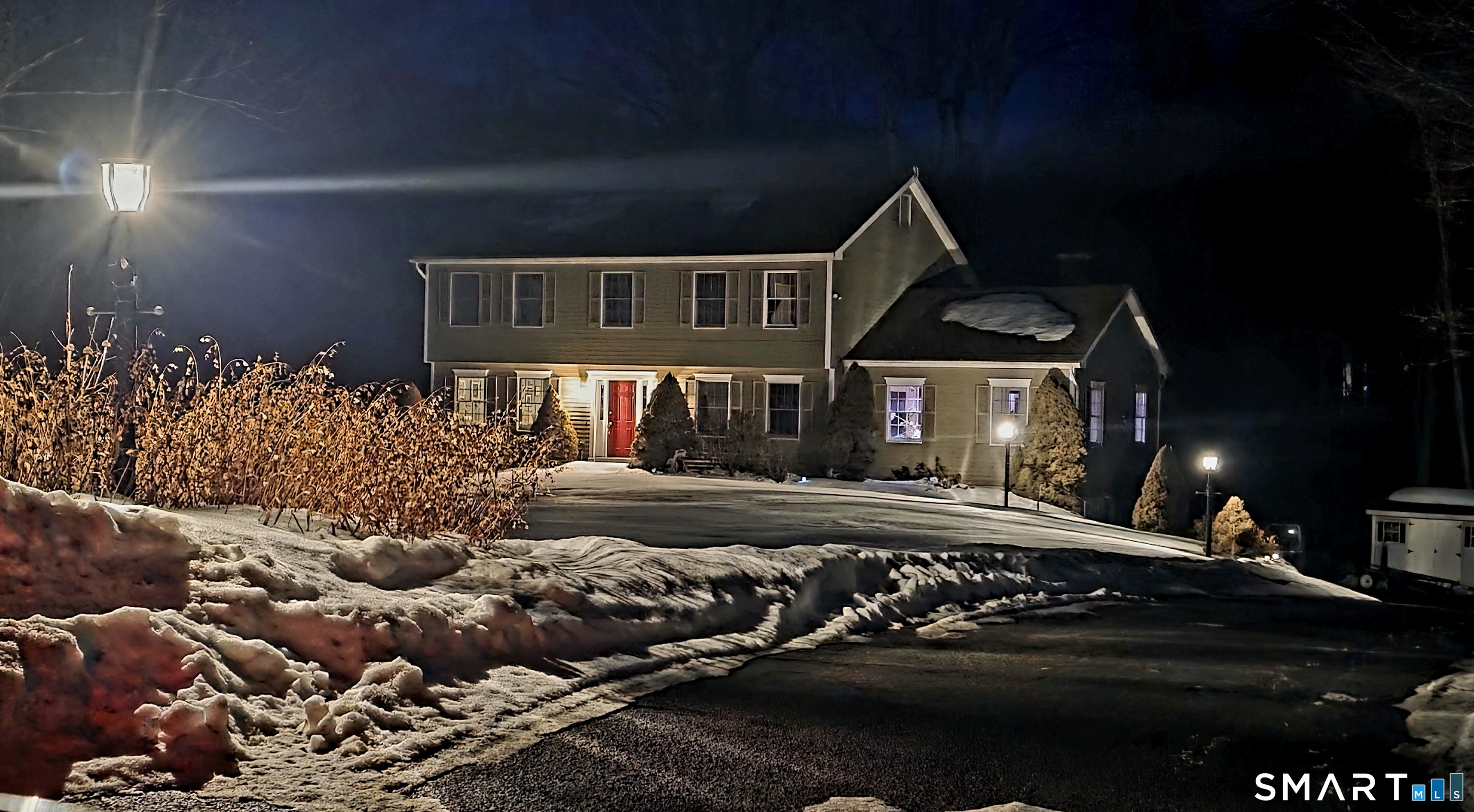 A special retreat on an cul-de-sac road of similar large homes nestled in the woods... where indoor comfort meets outdoor beauty. Outdoor TV in a custom built cabinet & firepit for fun this summer! This over-sized 4 bedroom Colonial sits back from the quiet road on 3.3 serene acres in a quiet cul-de-sac setting, offering the perfect balance of privacy & community. ~ During heavy rain you can enjoy the relaxing noises of the small brook wandering in the back yard. ~ Step inside to find sun-filled living spaces, including formal living and dining rooms, a home office, and a spacious eat-in kitchen with granite counters, stainless appliances, and a large island made for gathering. The oversized family room with fireplace is ideal for relaxing or entertaining. Upstairs, the primary suite provides a peaceful escape with a walk-in closet and private bath, along with three additional bedrooms. The finished lower level offers endless possibilities-media room, gym, playroom, or workspace.~ Outside, enjoy birds & nature from your deck or patio, with plenty of room to explore, unwind, and entertain. Close to hiking trails, lakes, and outdoor recreation, this home truly offers a live/work/play lifestyle.