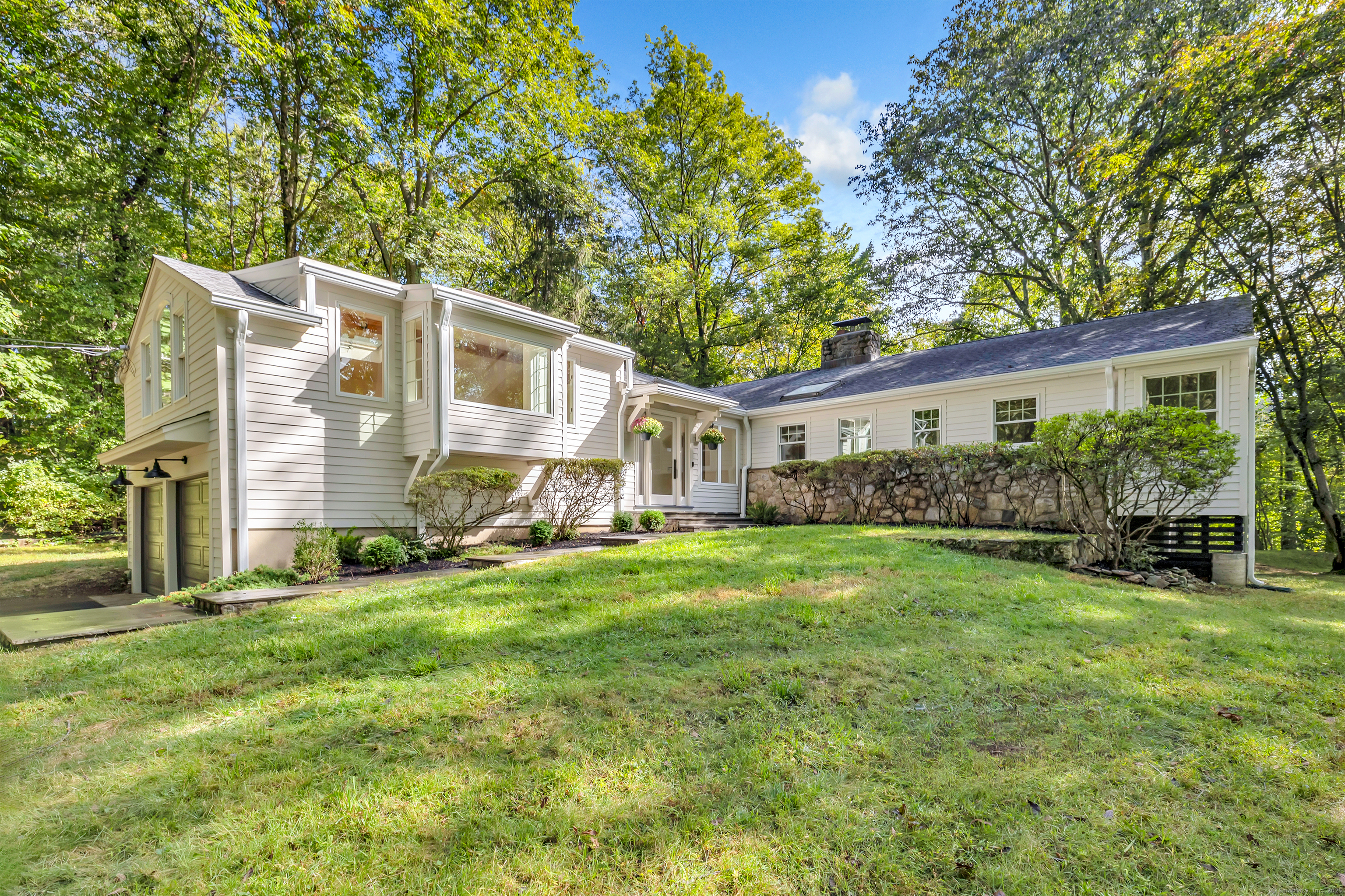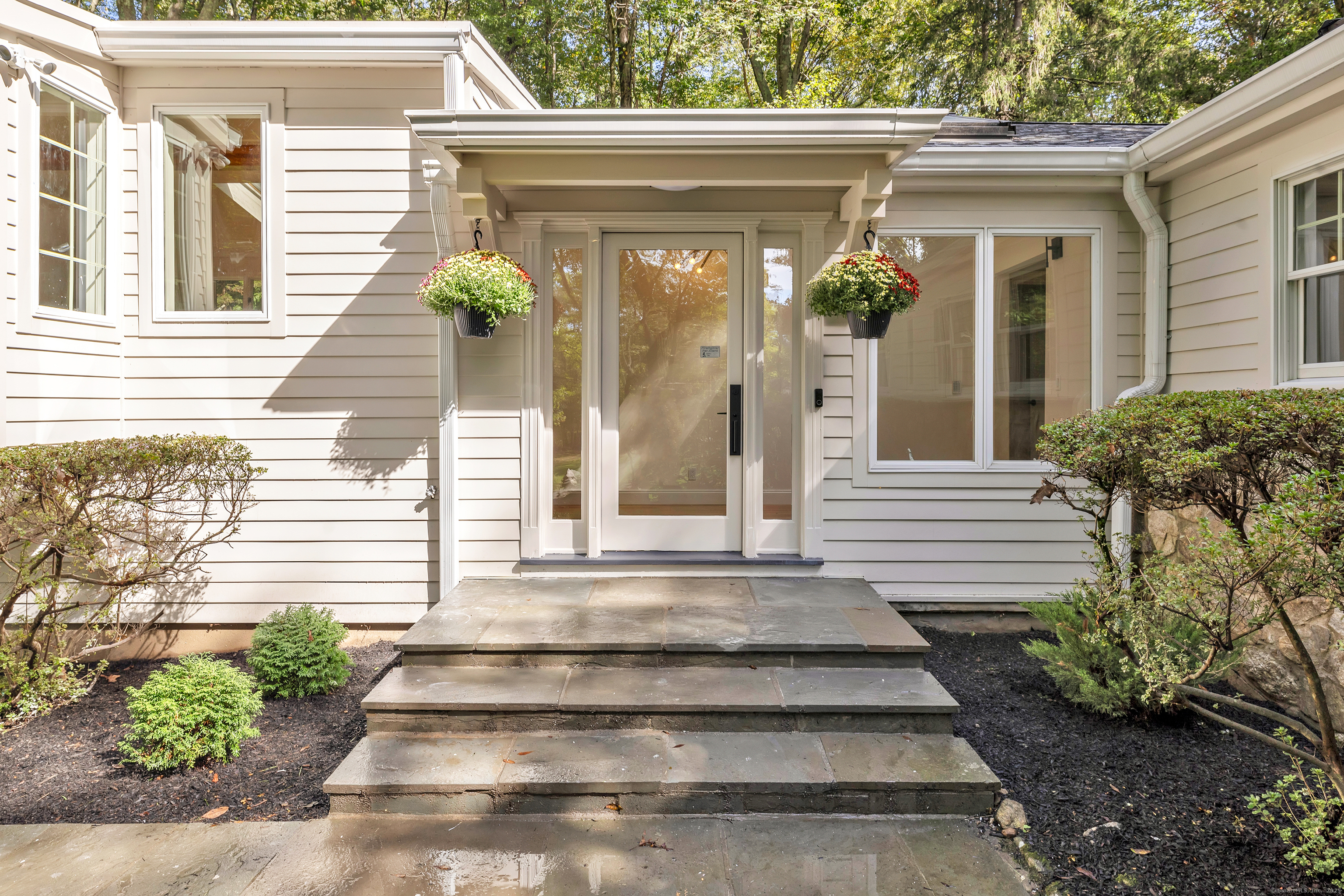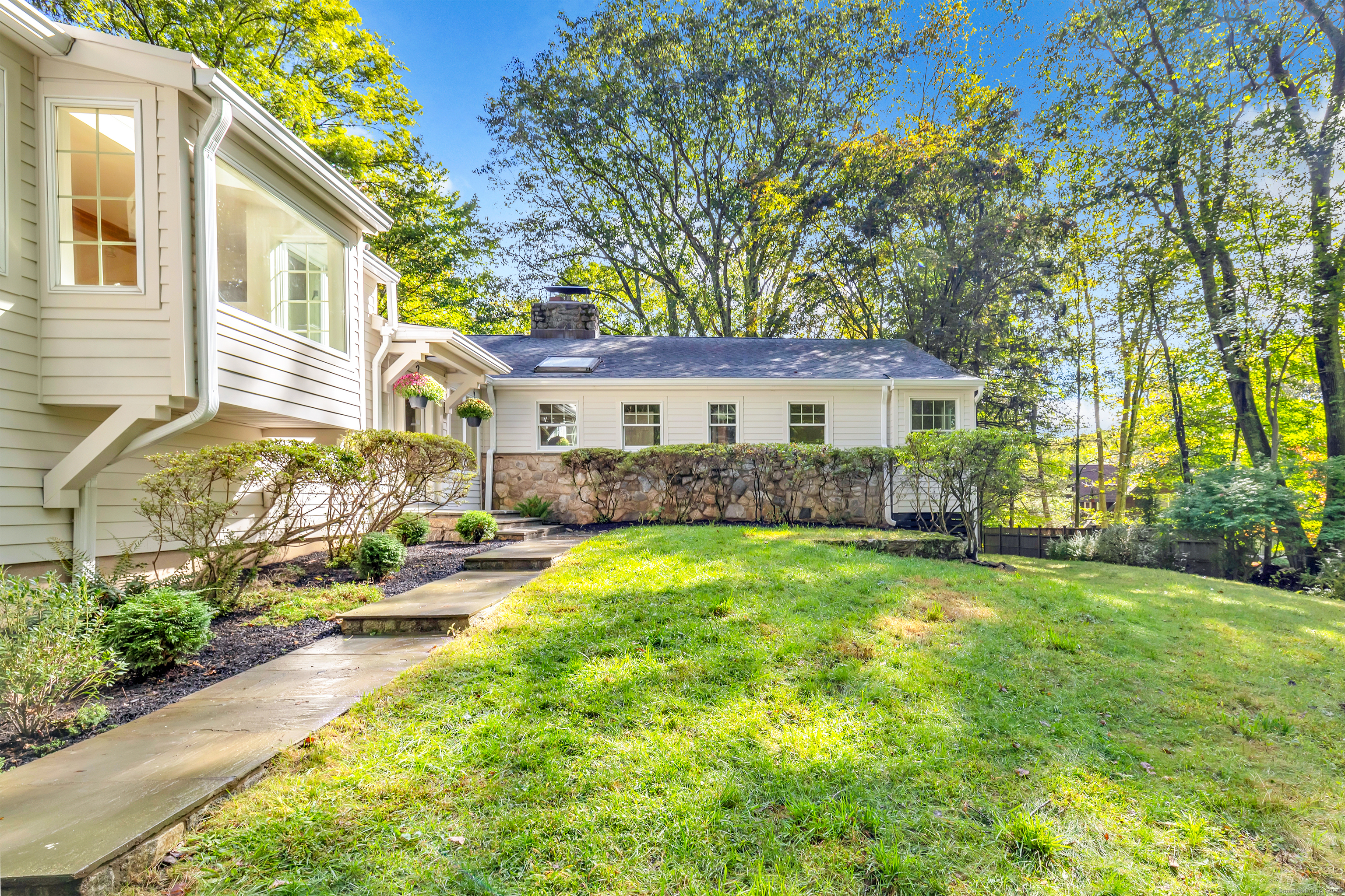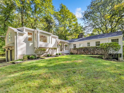 Bluestone walkway leading to the tastefully renovated 3,000+ sqft, four-bedroom, three full-bath New England retreat with direct waterfront access on the Aspetuck River. Enjoy a tucked-away and serene property on a private lane in Lower Weston, minutes to Westport and Weston town centers, and award-winning schools. Brand new kitchen, bathrooms, fiber-cement siding, hydro air forced air heating, all appliances, and laundry. New garage doors and garage door openers. Many windows and doors are new; new and refinished hardwood floors. New large deck with modern cable railings. Professional landscaping. Comfortable ONE LEVEL LIVING.