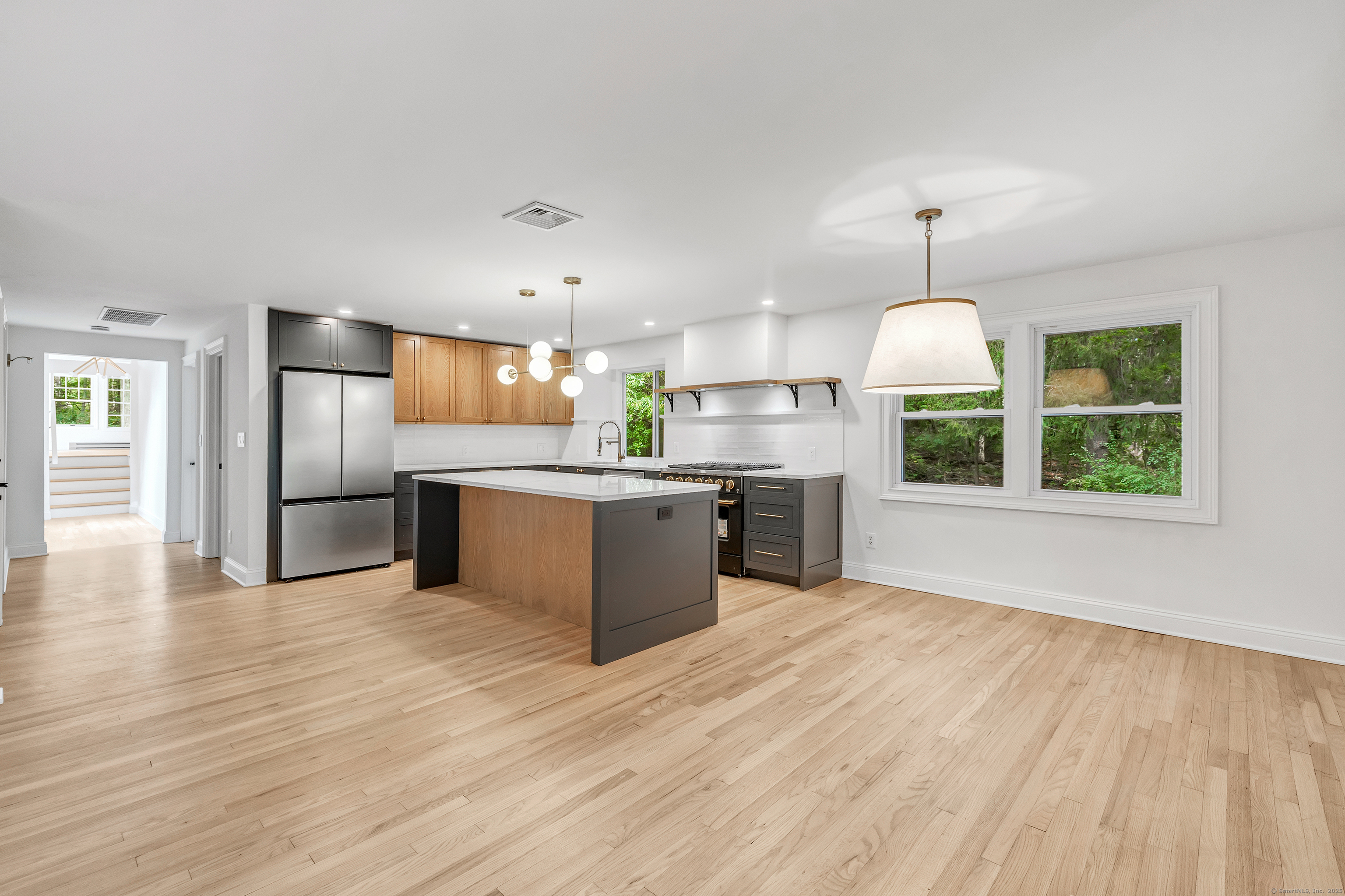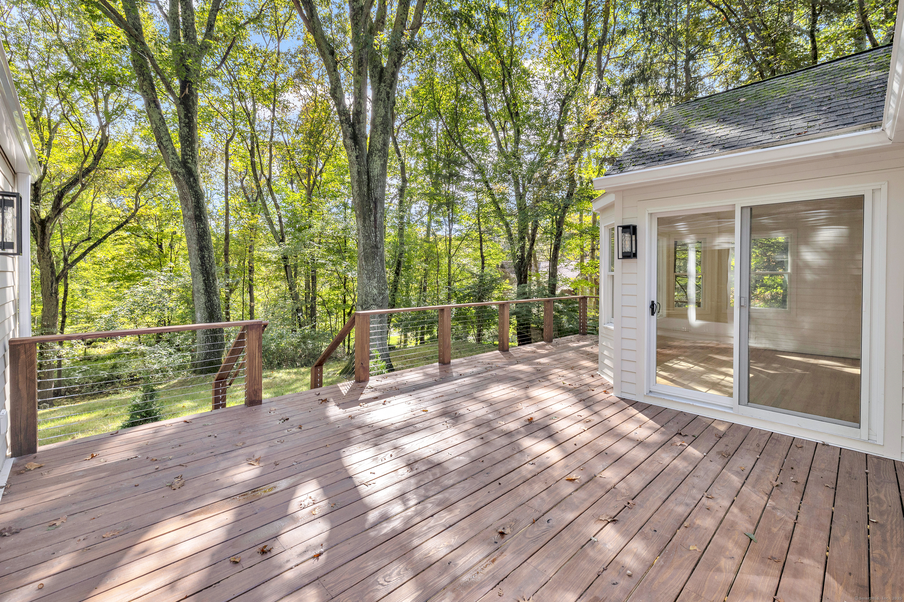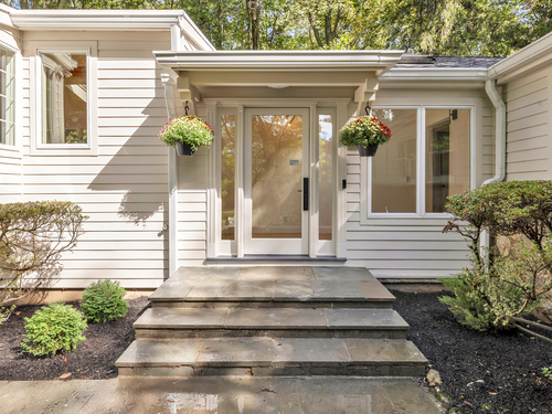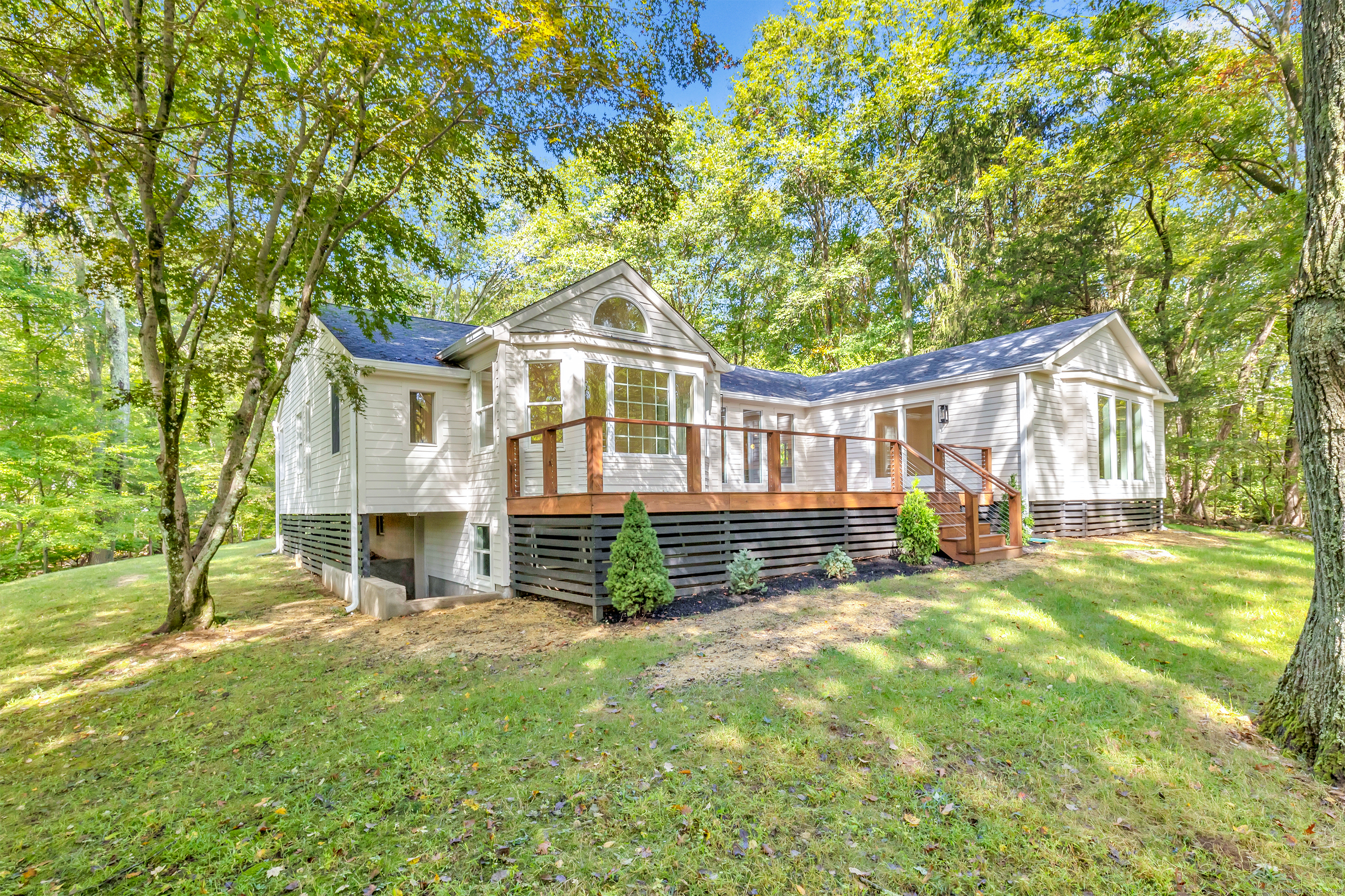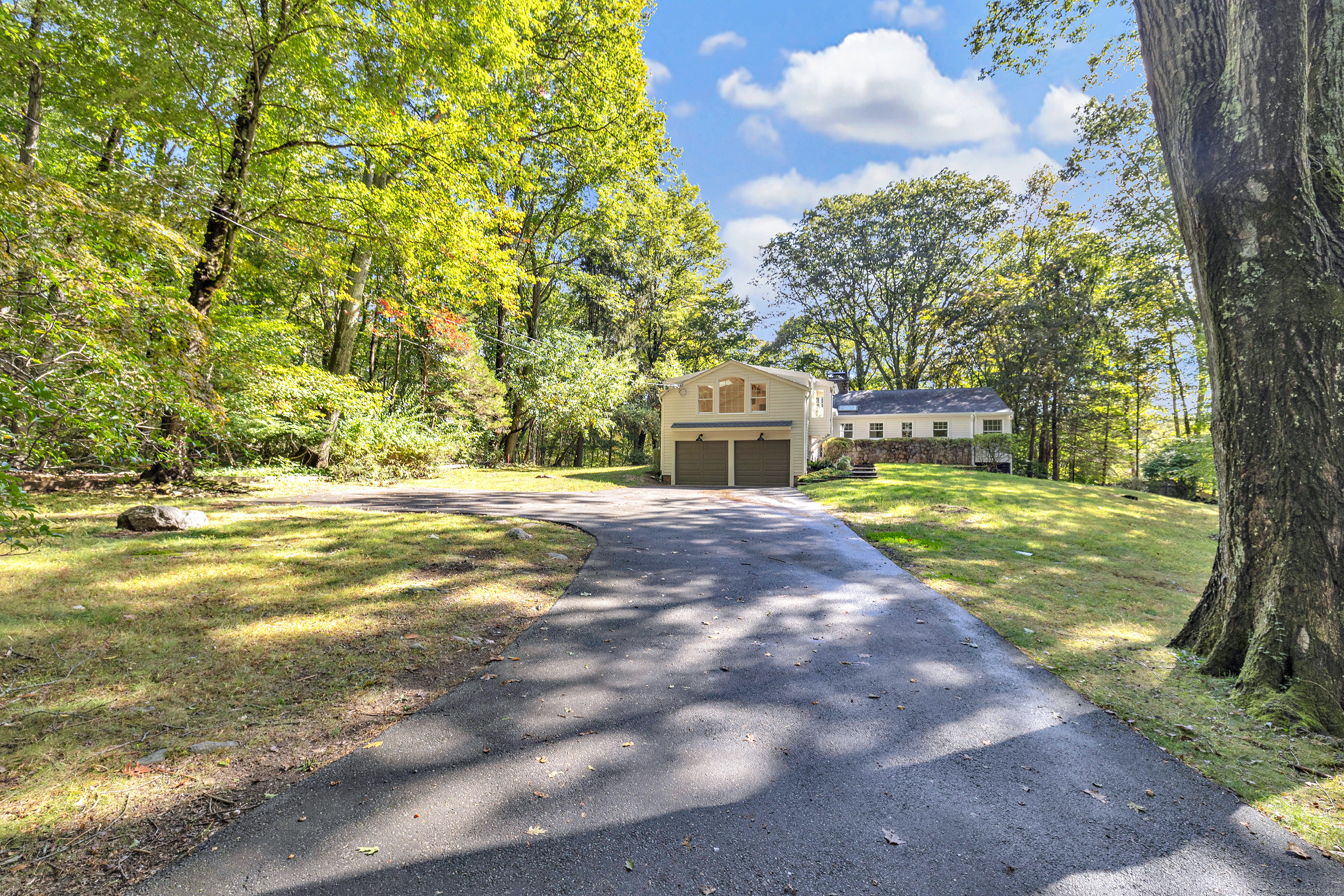 Bluestone walkway leading to the tastefully renovated 3,000+ sqft, four-bedroom, three full-bath New England retreat with direct waterfront access on the Aspetuck River. Enjoy a tucked-away and serene property on a private lane in Lower Weston, minutes to Westport and Weston town centers, and award-winning schools. Brand new kitchen, bathrooms, fiber-cement siding, hydro air forced air heating, all appliances, and laundry. New garage doors and garage door openers. Many windows and doors are new; new and refinished hardwood floors. New large deck with modern cable railings. Professional landscaping. Comfortable ONE LEVEL LIVING.