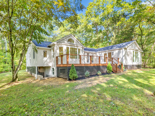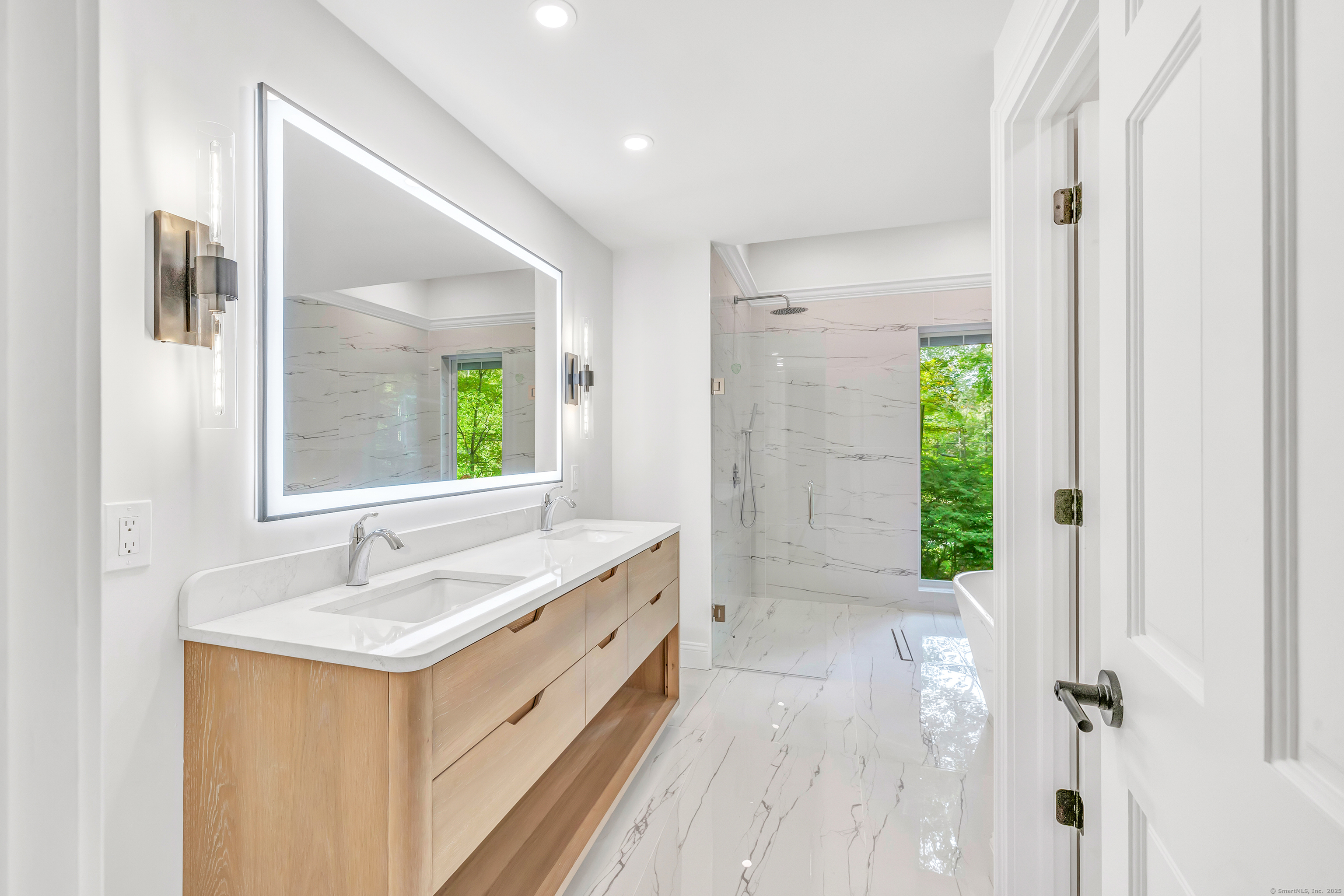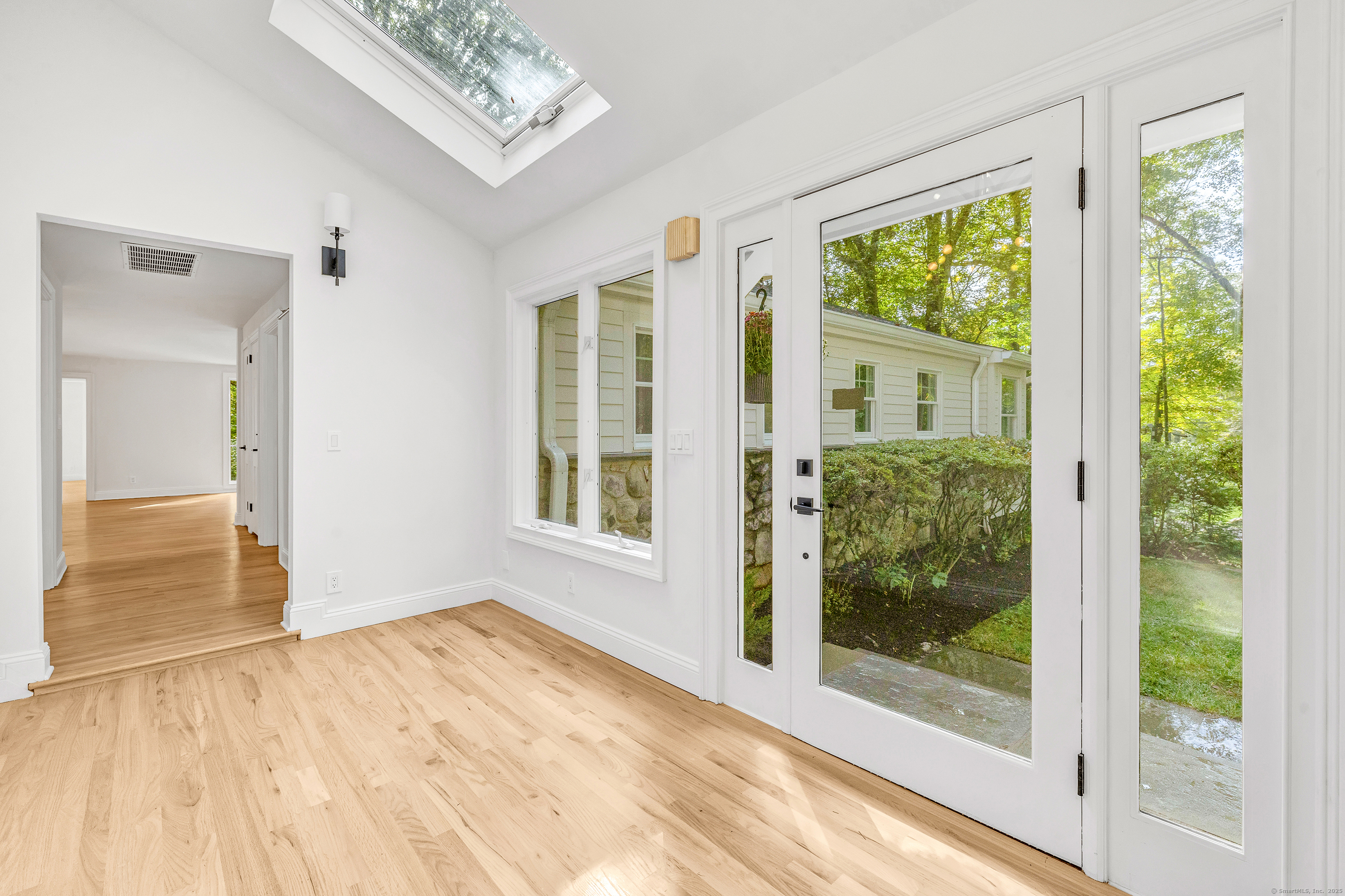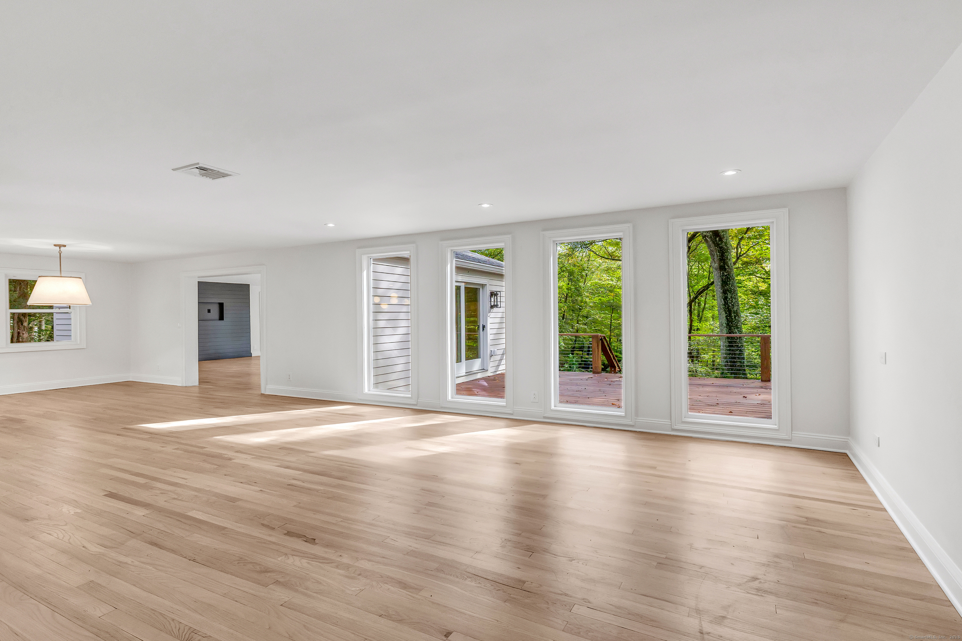 Bluestone walkway leading to the tastefully renovated 3,000+ sqft, four-bedroom, three full-bath New England retreat with direct waterfront access on the Aspetuck River. Enjoy a tucked-away and serene property on a private lane in Lower Weston, minutes to Westport and Weston town centers, and award-winning schools. Brand new kitchen, bathrooms, fiber-cement siding, hydro air forced air heating, all appliances, and laundry. New garage doors and garage door openers. Many windows and doors are new; new and refinished hardwood floors. New large deck with modern cable railings. Professional landscaping. Comfortable ONE LEVEL LIVING.