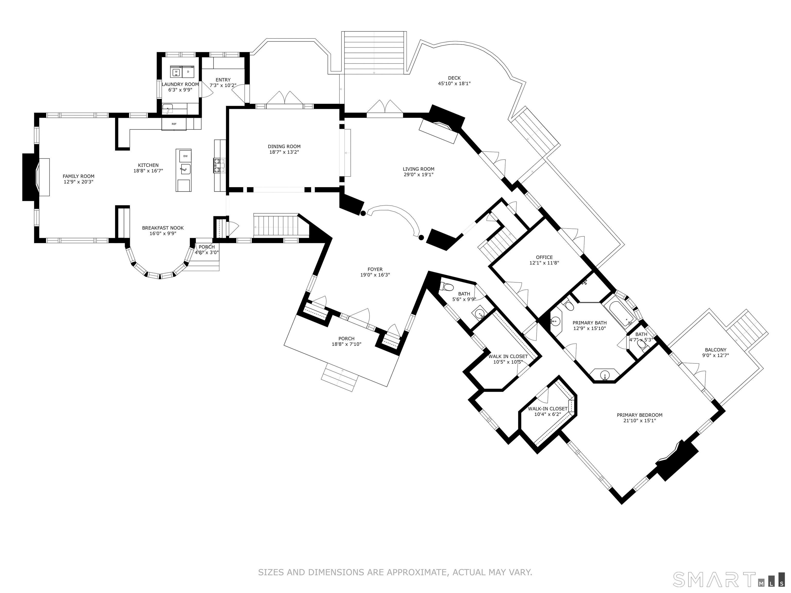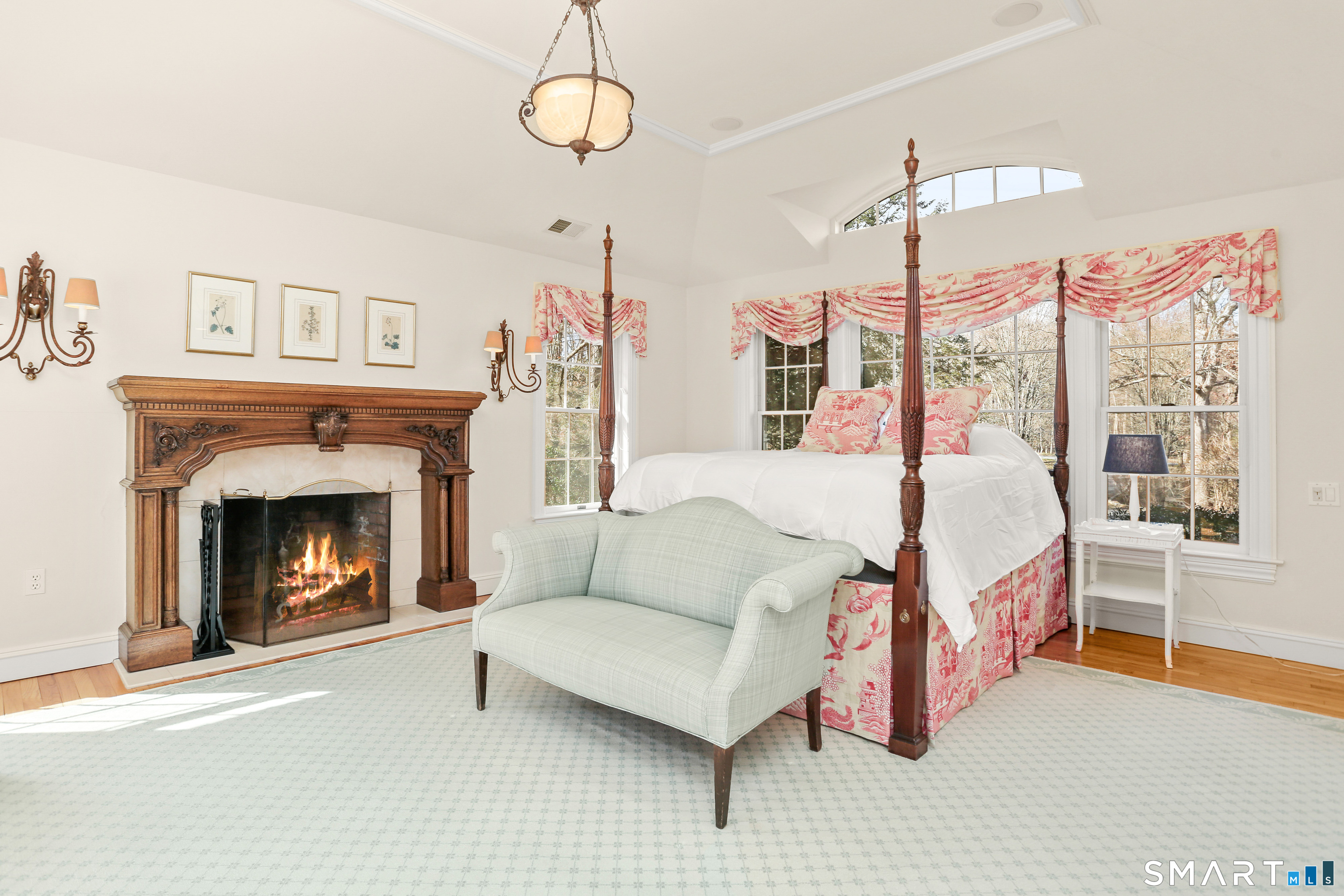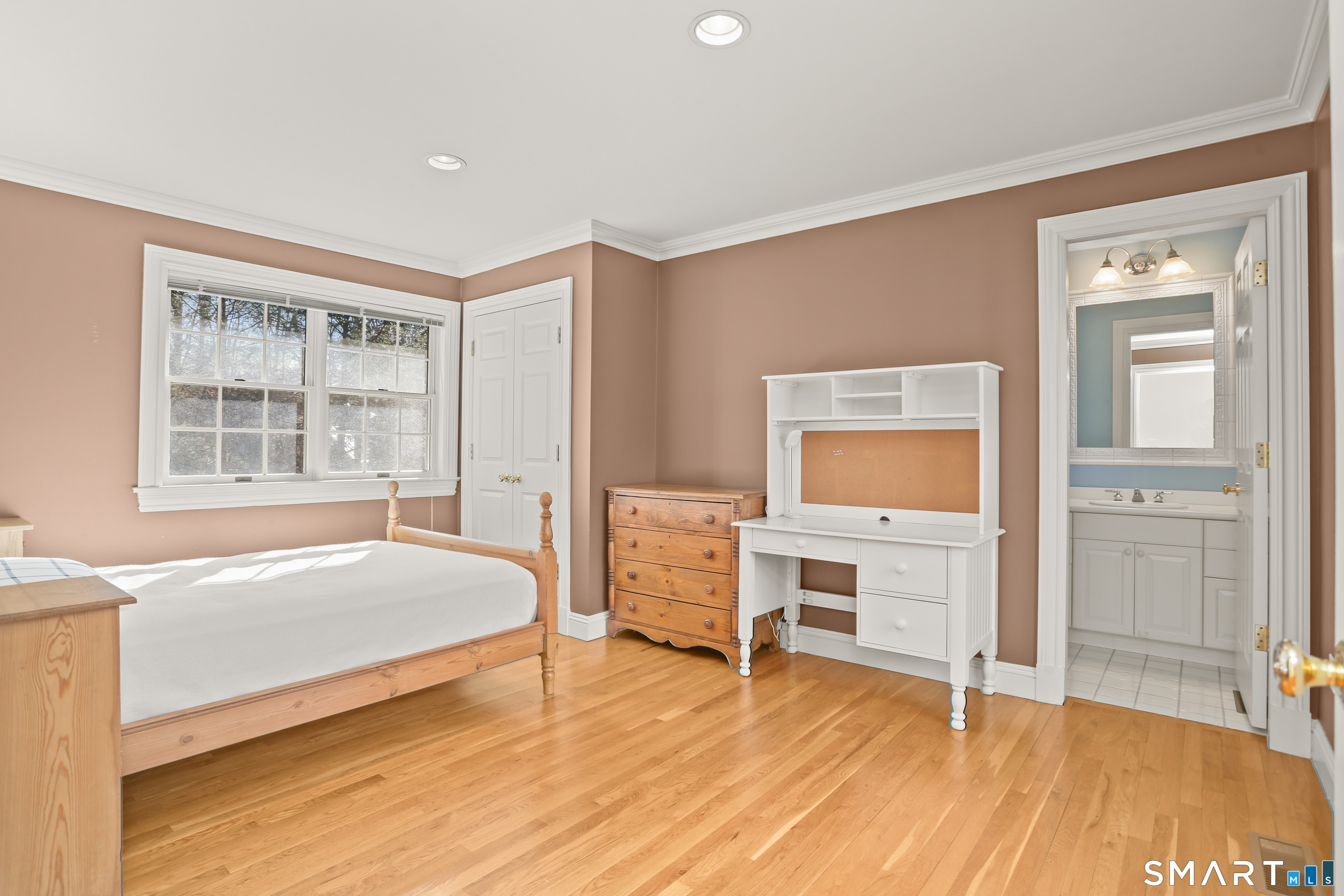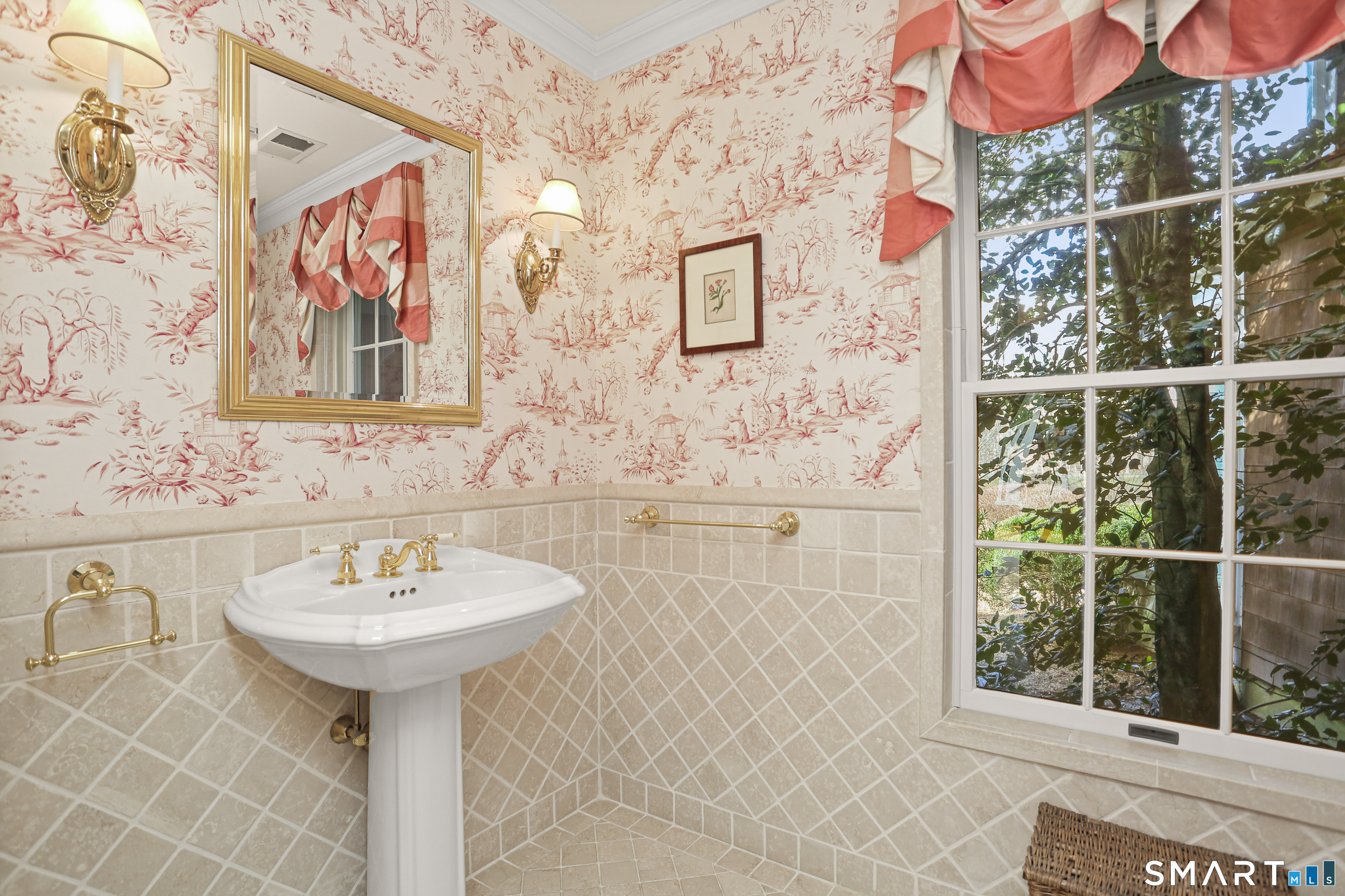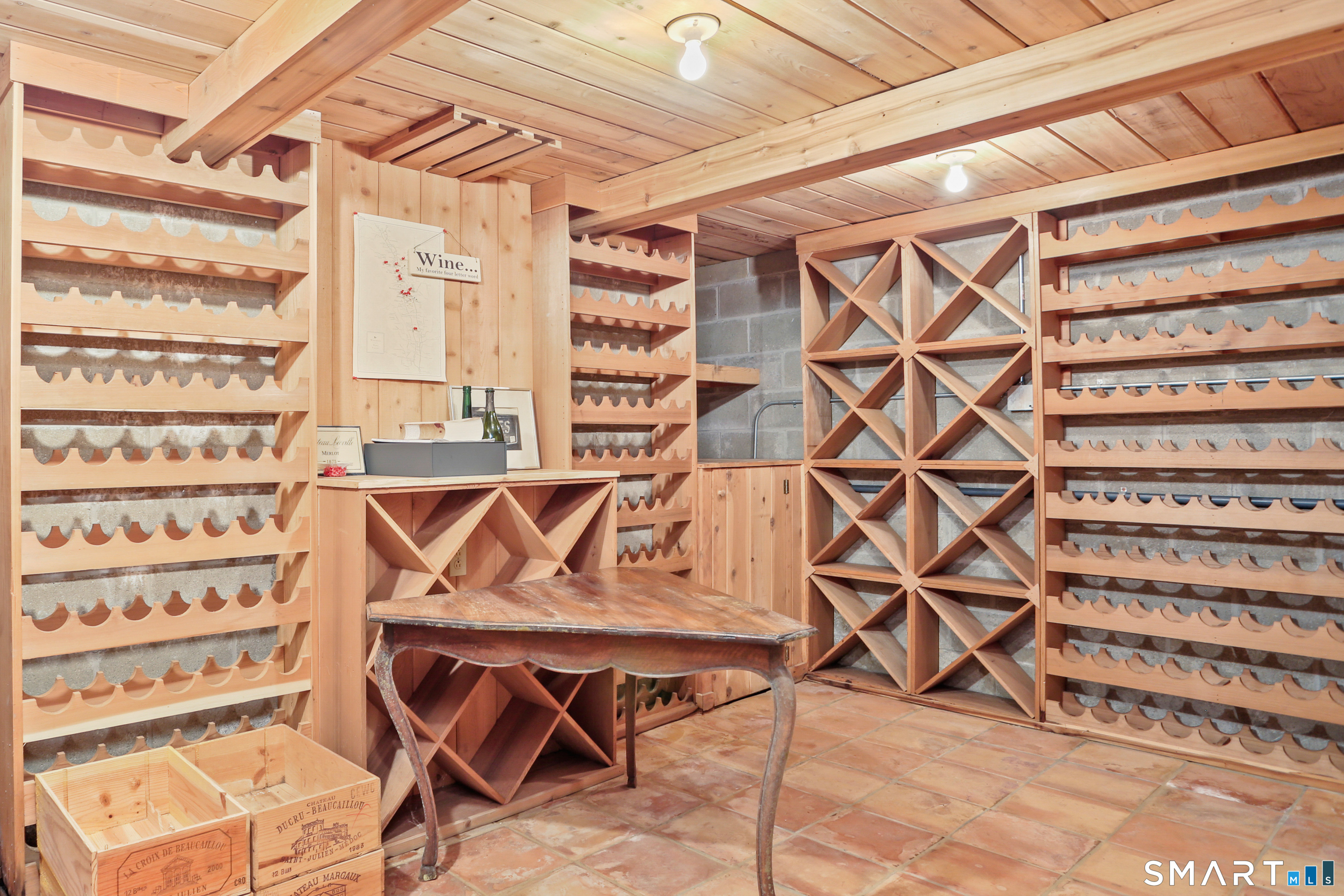 Set on a beautifully scenic 2.35-acre lot on a tranquil circle near Laurel Reservoir, this exceptional property stands as the pinnacle of curb appeal, with a picturesque pond (and private island accessed by a footbridge) leading to the home's grand facade. Completely reimagined and remodeled in 1998 by distinguished architect, Carol Kurth, and renowned builder, Joseph Sisca, the home was awarded the Society of American Registered Architects' Design Award of Merit for superior achievement and professional design excellence. The gracious two-story foyer welcomes visitors into the open concept living and dining rooms. The spacious chef's kitchen, featuring an eat-in breakfast nook with panoramic windows, adjoins an inviting family room with fireplace. Privately positioned on the main level, the primary suite includes a fireplace, private deck, and large bathroom with radiant floor heating. The upper level provides four additional bedrooms; two with ensuite baths and private balconies. The expansive finished lower level adds a rec room with wet bar, gym, workshop, and wine cellar. Beautifully integrated with its natural surroundings, the property offers exceptional privacy, scenic views, and inviting indoor-outdoor living throughout the seasons. The garage is equipped with a Tesla charging station.