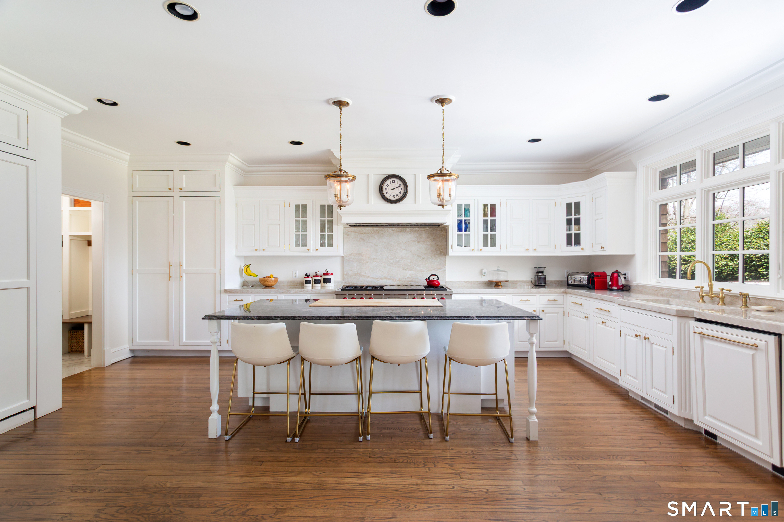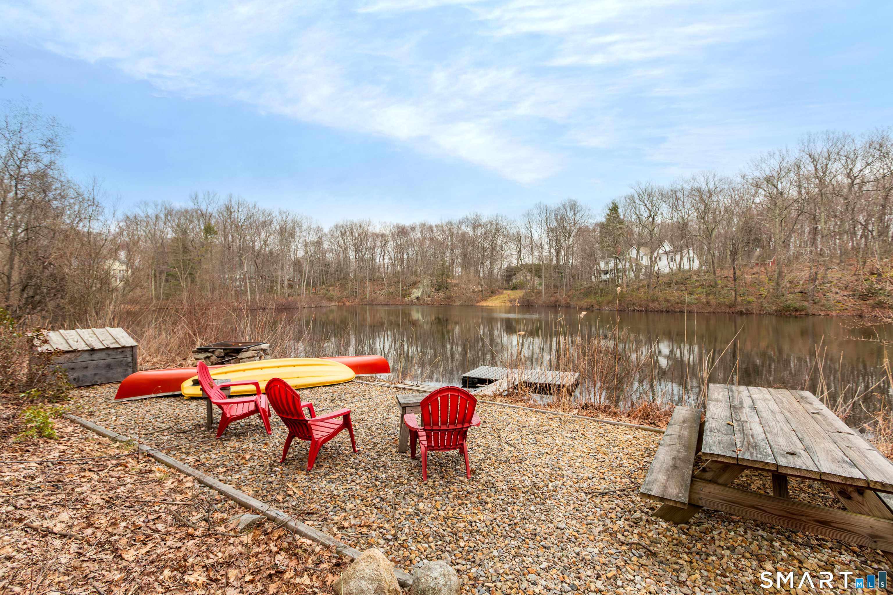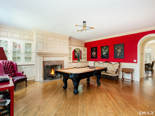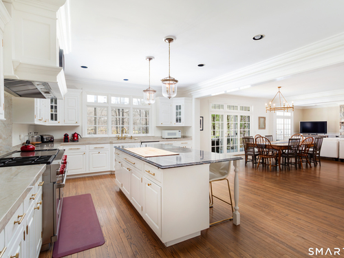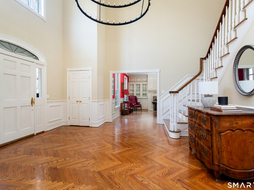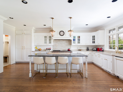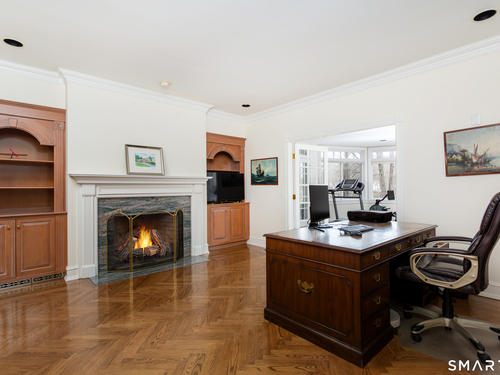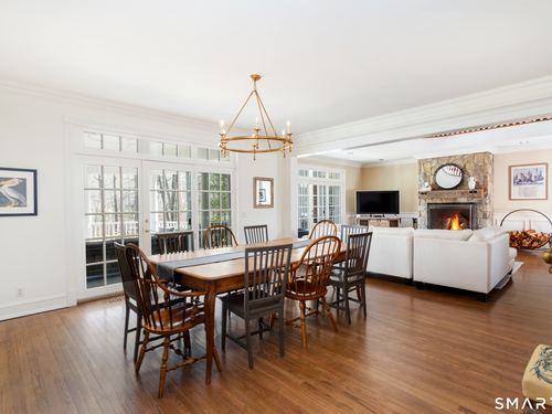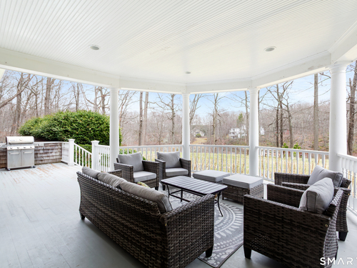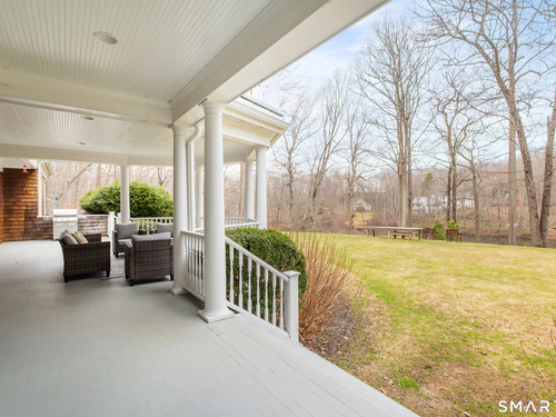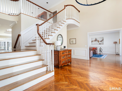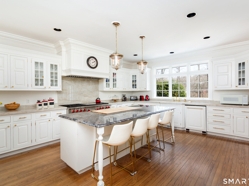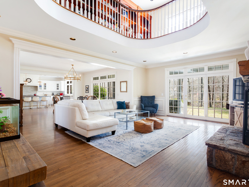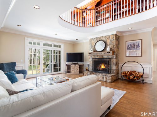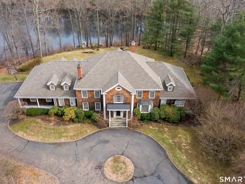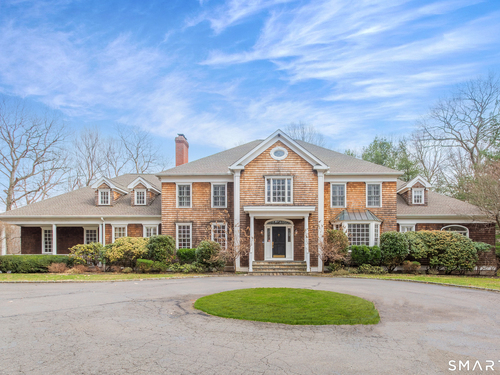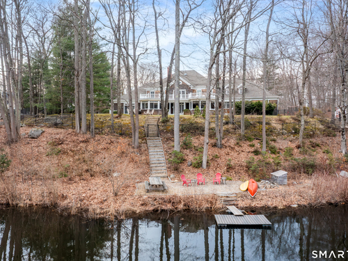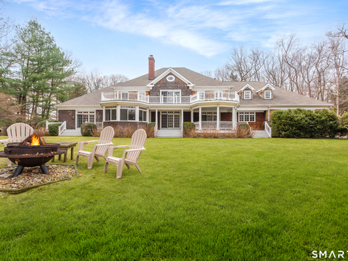 Come & be dazzled by this Nantucket inspired water-front country estate! Custom craftmanship is the hallmark throughout this 5BR home. A gracious foyer welcomes you & leads you to sunny living room w/ bay window, large dining room w/ custom built-ins & fireplace.The recently remodeled kitchen is a chef's dream w/ 6 burner Wolf Gas range, 8 ft. granite topped center island, a double sub-zero & travertine counter tops. The kitchen is open to the great room w/ fieldstone fireplace & unique Rotunda/Solarium w/ balcony/deck & water views! The1st floor primary bedroom w/ 14ft ceilings offers privacy, 2 walk-in closets, large bath, & french doors leading to lovely, serene porch to enjoy morning coffee, afternoon iced tea or evening glass of wine. Completing the first floor is a large office w/ custom built-ins & fireplace & a light filled sun room/gym overlooking the pristine grounds, as well as a large mudroom, laundry room & 2 half baths. A butterfly staircase will take you to the 2nd floor w/ 4 bedrooms (2 with decks & balcony) & rec & guest room w/ fireplace. The outdoor space is a pure delight w/pillared deck/veranda overlooking 2 beautifully manicured acres w/specimen trees & shrubs leading to large pond & dock for swimming, fishing, ice skating and boating or cooking out by the firepit! Central Air, HW floors, & a new 50 year architectural roof are just a few of the special features of this home. Located just a few miles to Weston school campus & town center. Welcome Home!