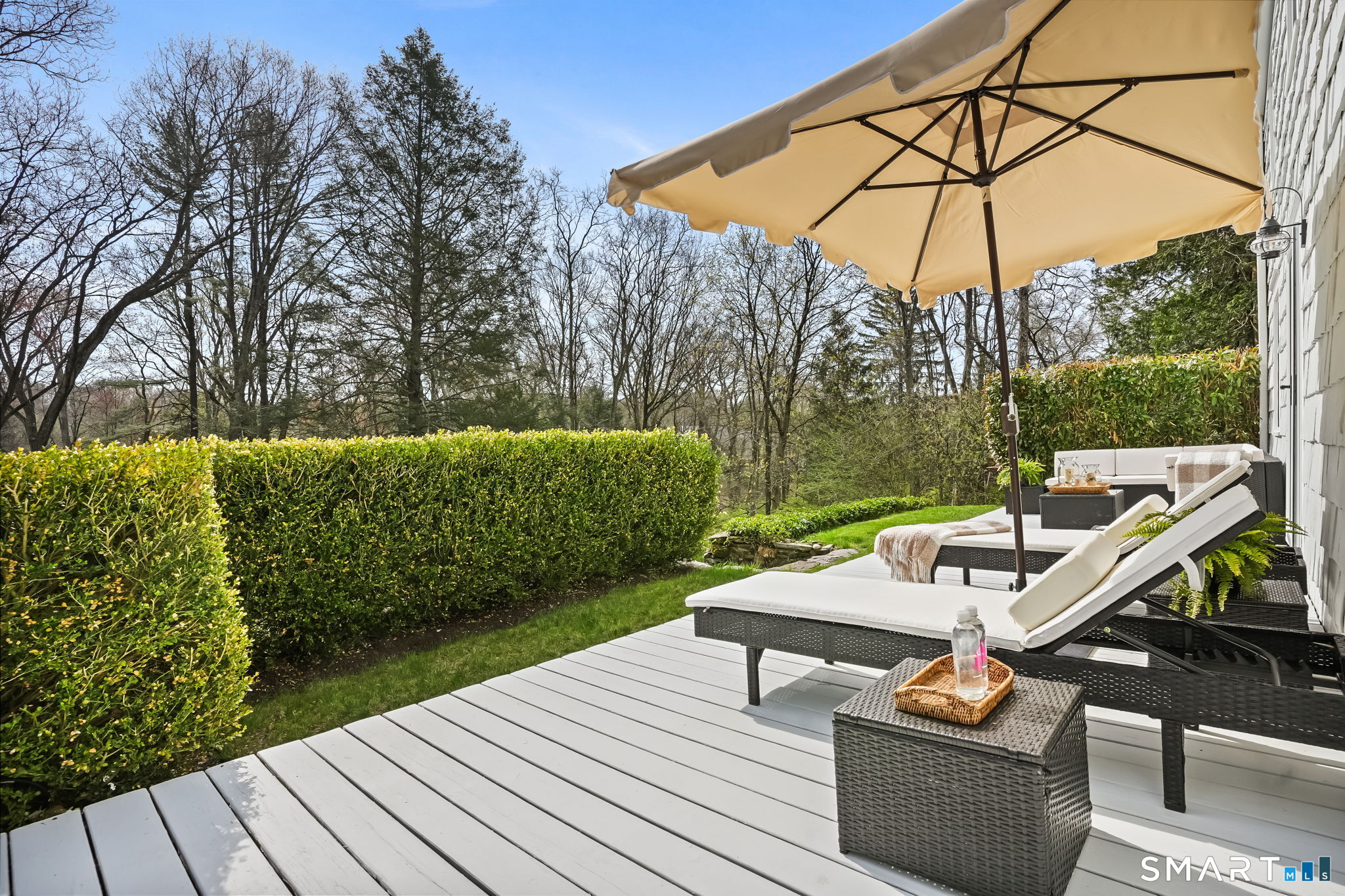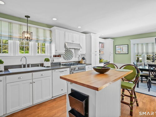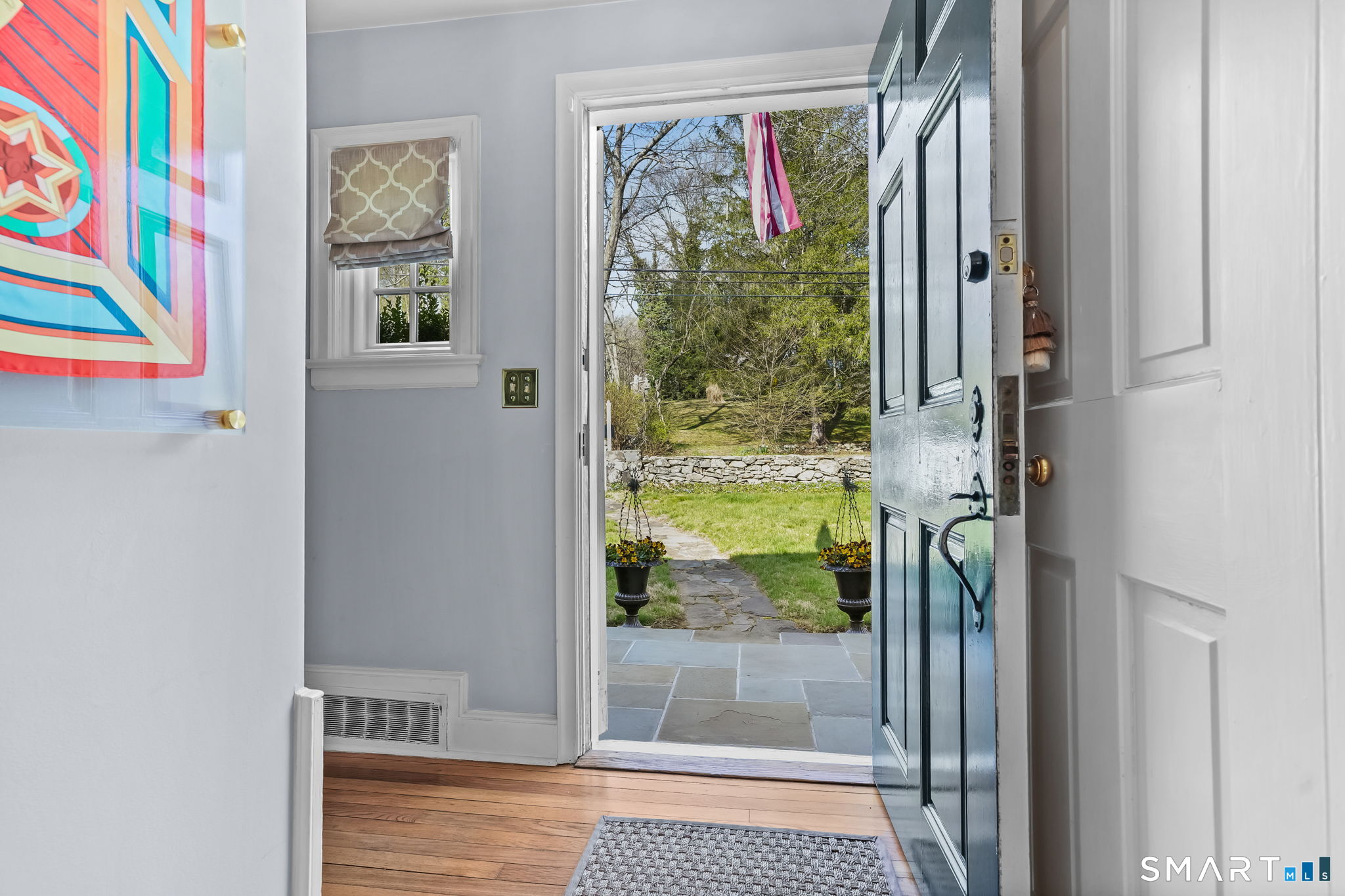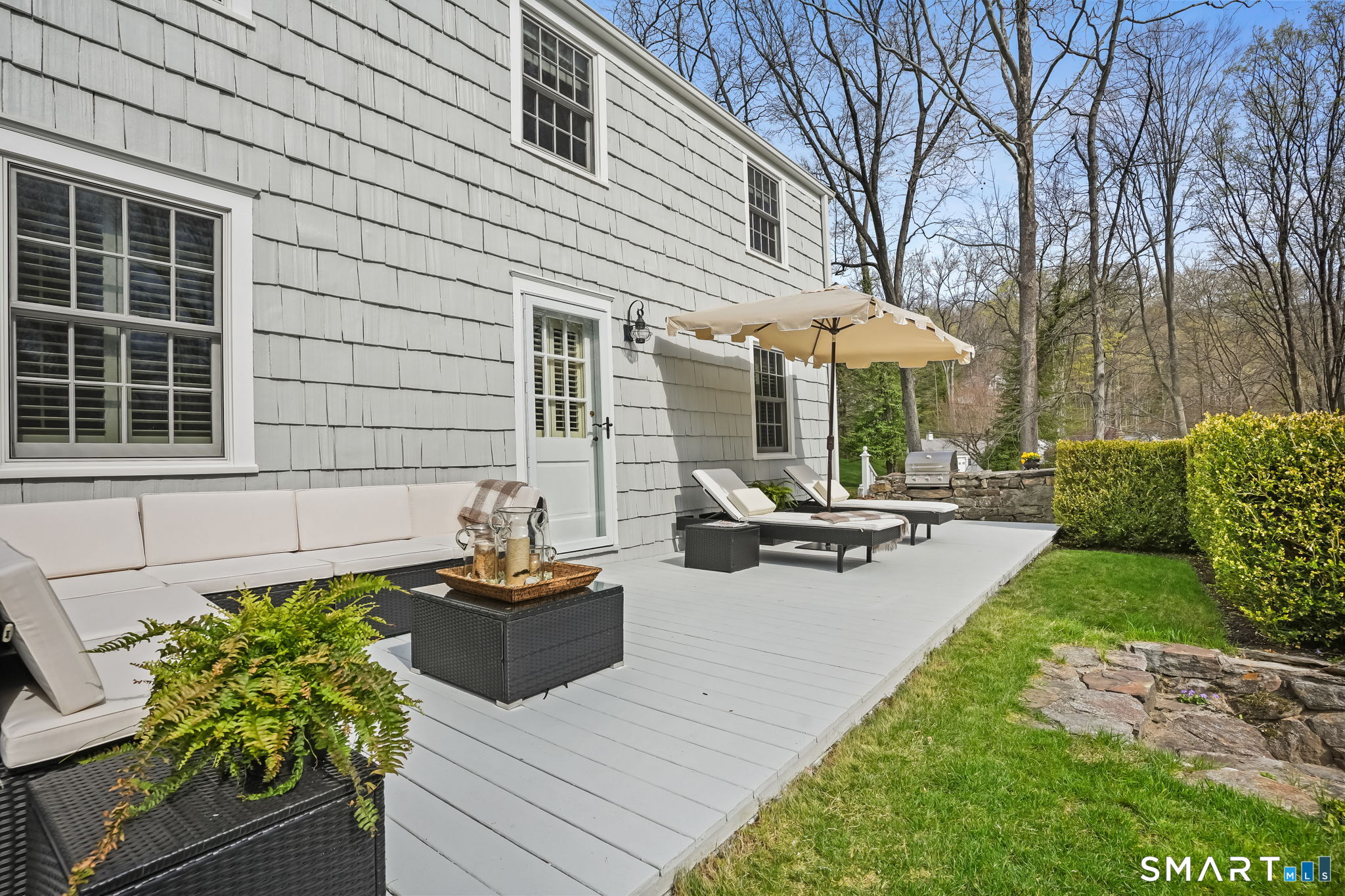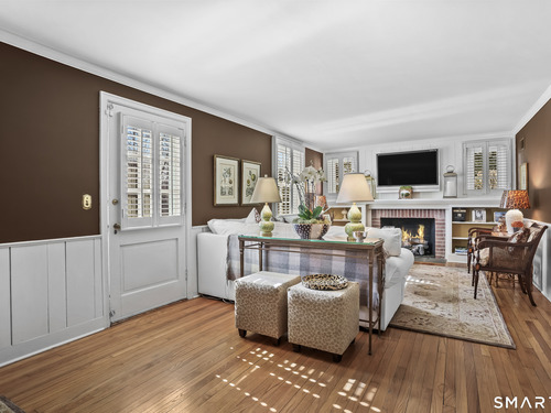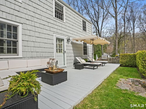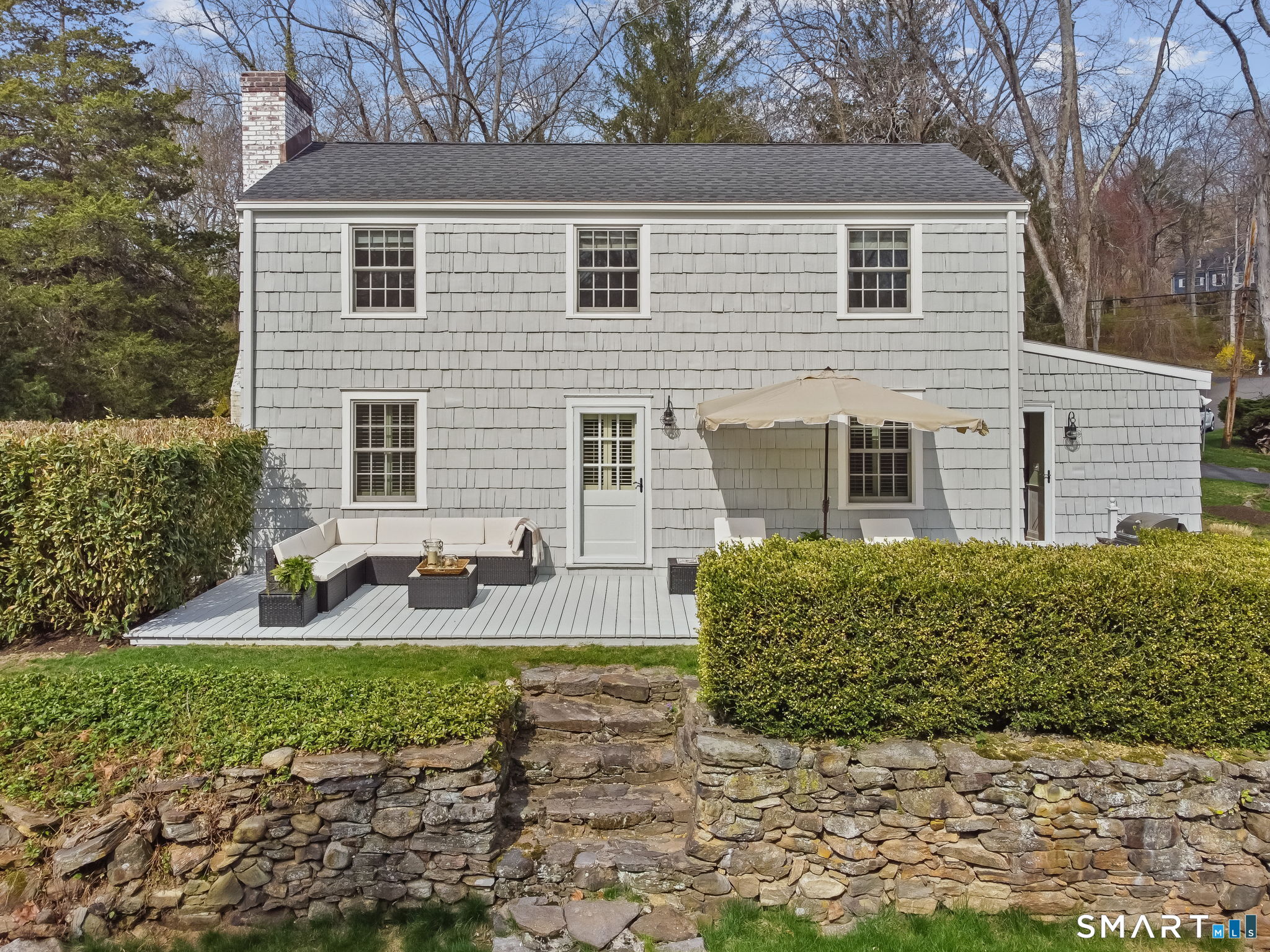 Lined with charming homes from the 1930s, Sport Hill Parkway is one of Easton's most desirable streets. Together with its quiet sister side streets, it is a secluded enclave and highly coveted dead-end located in one of the best commuting locations in town. This pristine 1938 Saltbox is set on a panoramic corner lot with an inviting custom colonial gate and New England stone walls. It has been meticulously cared for - almost every system and space has been updated in recent years. The custom shutter doors, window boxes, and urns out front set the mood as you approach. Step inside and be wowed by the whimsical elegance. The welcoming front office with its built-ins greets you. Pass the jewel box of a powder room and make your way to the inviting open concept living/dining room with gas fireplace, plantation shutters, built-ins, wainscoting, crown moldings, and easy access to the relaxing 10"x30" deck. Off the open family area enjoy the cheerful custom eat-in kitchen with sunny window seat, spunky dry bar, stylish window treatments, & practical laundry closet. Retreat upstairs to the beautifully appointed primary suite with its elegant white spa bath. The spacious second bedroom boasts its own full bath as well. Off the kitchen enjoy the built-in gas grill, extensive masonry, 3-season entertaining overlooking lush green lawn, & the tranquility of the Mill River. All this plus easy access to the train, shopping, restaurants, hiking trails, farm stands, & scenic reservoir drives.