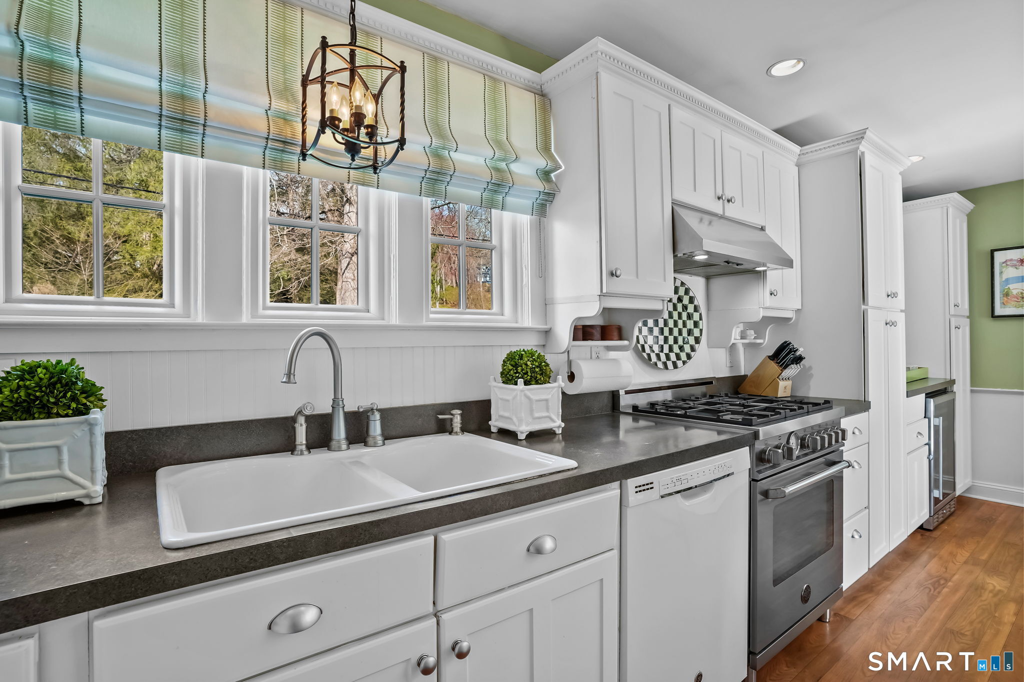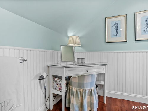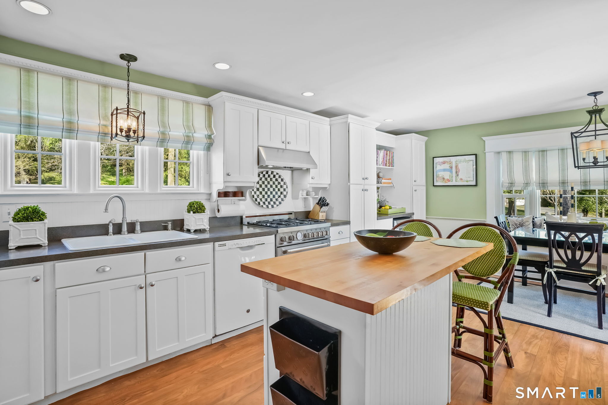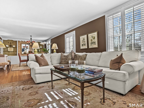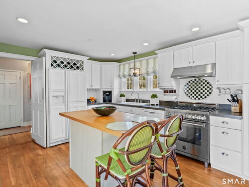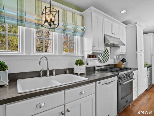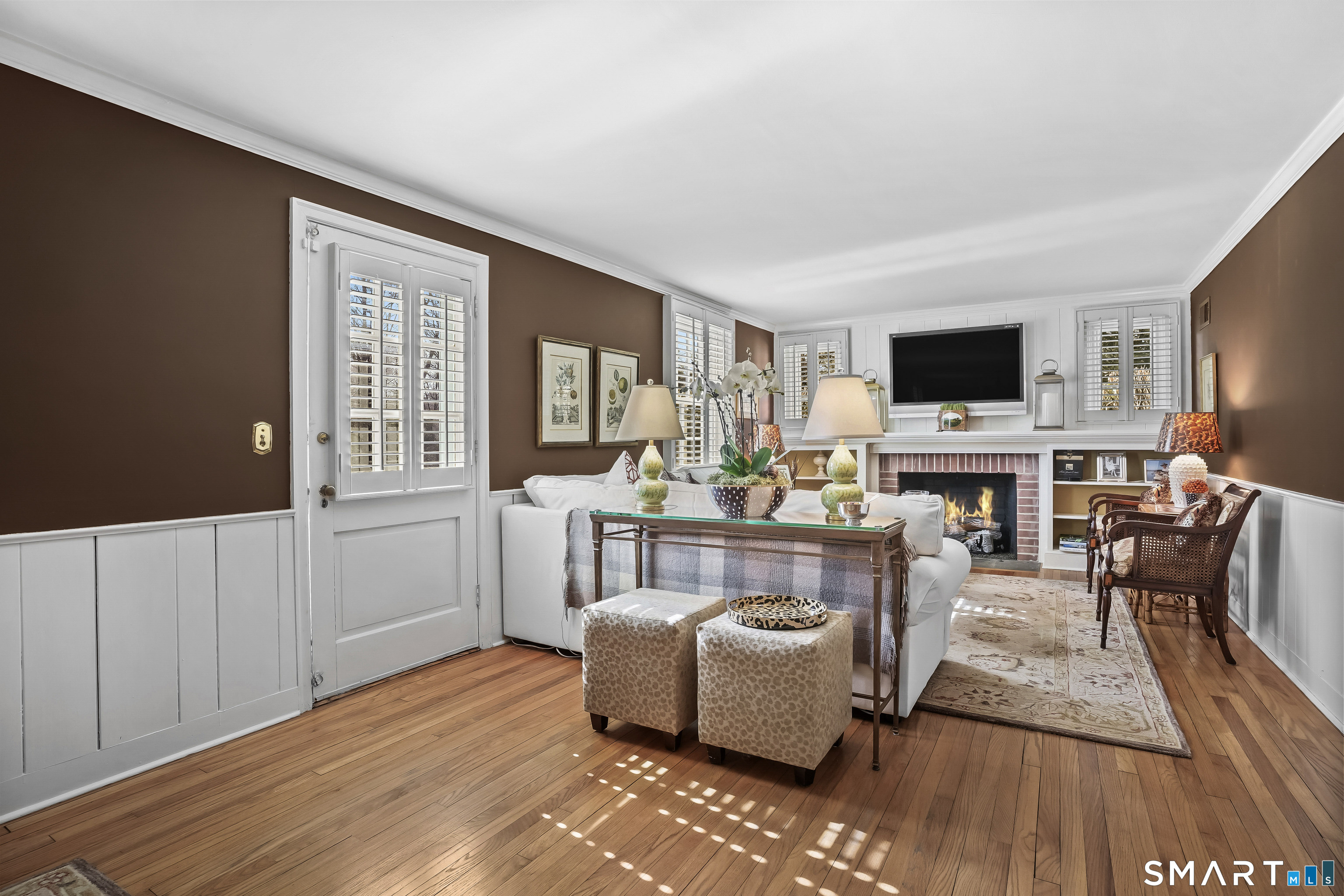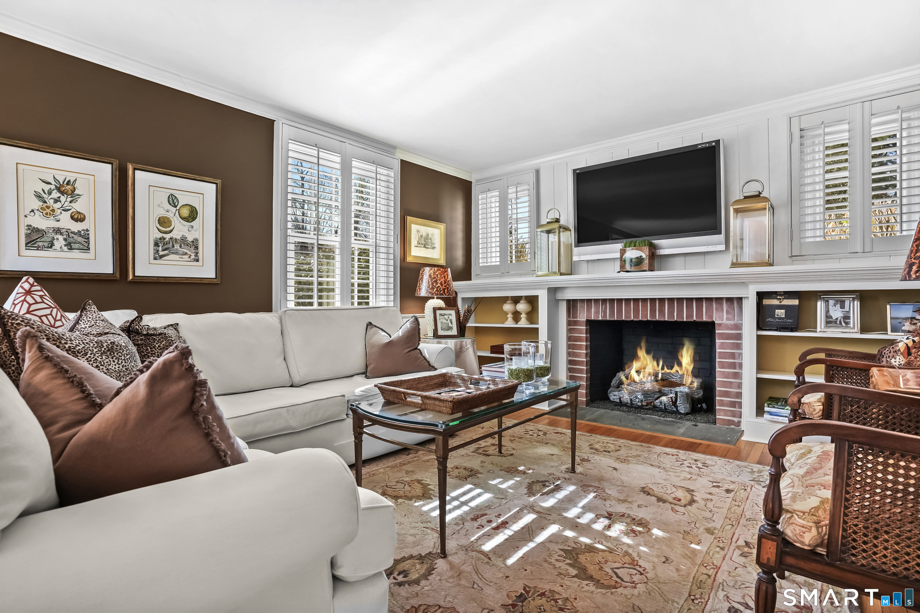 Lined with charming homes from the 1930s, Sport Hill Parkway is one of Easton's most desirable streets. Together with its quiet sister side streets, it is a secluded enclave and highly coveted dead-end located in one of the best commuting locations in town. This pristine 1938 Saltbox is set on a panoramic corner lot with an inviting custom colonial gate and New England stone walls. It has been meticulously cared for - almost every system and space has been updated in recent years. The custom shutter doors, window boxes, and urns out front set the mood as you approach. Step inside and be wowed by the whimsical elegance. The welcoming front office with its built-ins greets you. Pass the jewel box of a powder room and make your way to the inviting open concept living/dining room with gas fireplace, plantation shutters, built-ins, wainscoting, crown moldings, and easy access to the relaxing 10"x30" deck. Off the open family area enjoy the cheerful custom eat-in kitchen with sunny window seat, spunky dry bar, stylish window treatments, & practical laundry closet. Retreat upstairs to the beautifully appointed primary suite with its elegant white spa bath. The spacious second bedroom boasts its own full bath as well. Off the kitchen enjoy the built-in gas grill, extensive masonry, 3-season entertaining overlooking lush green lawn, & the tranquility of the Mill River. All this plus easy access to the train, shopping, restaurants, hiking trails, farm stands, & scenic reservoir drives.