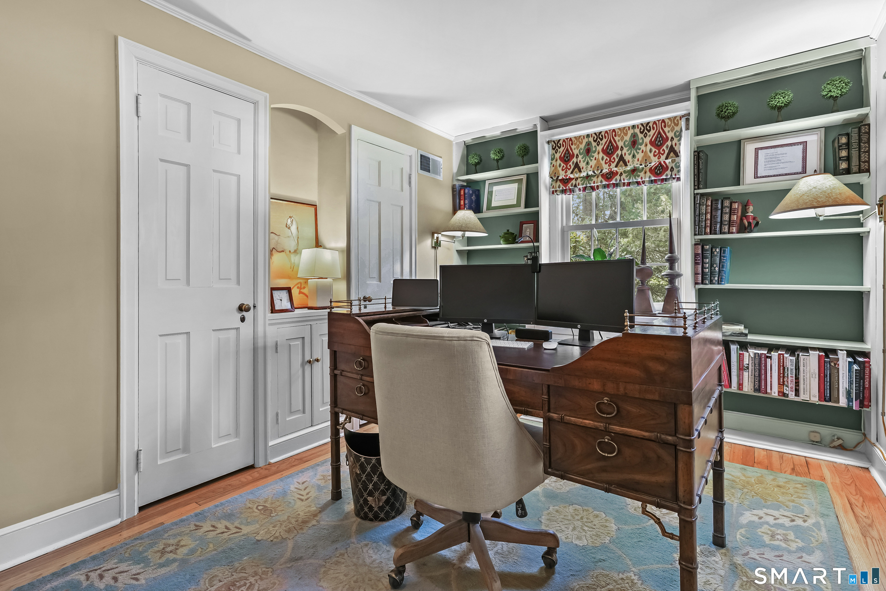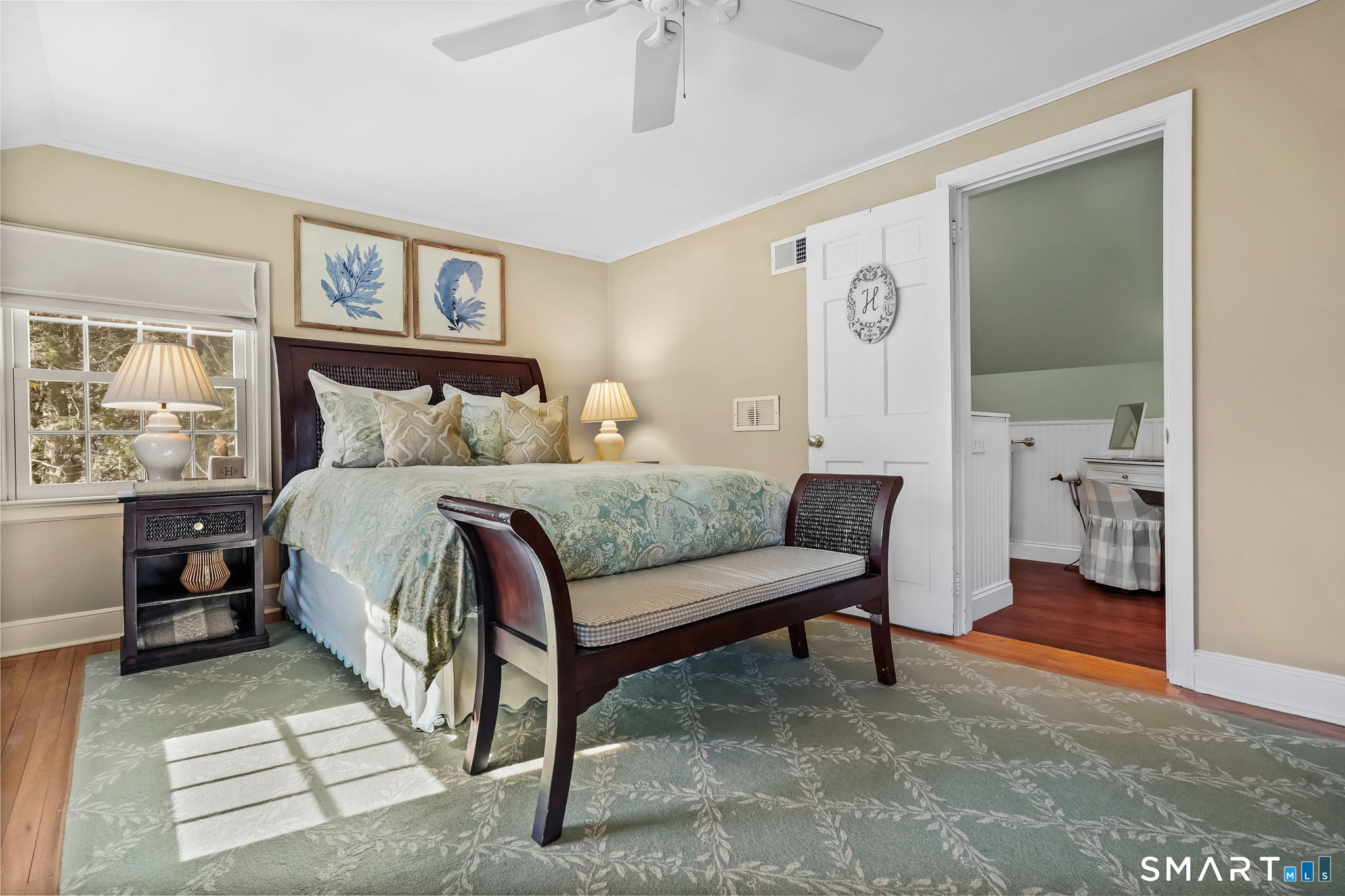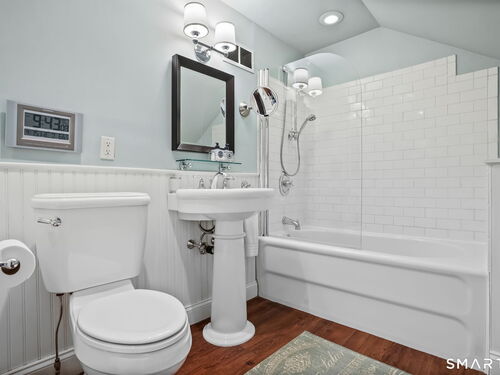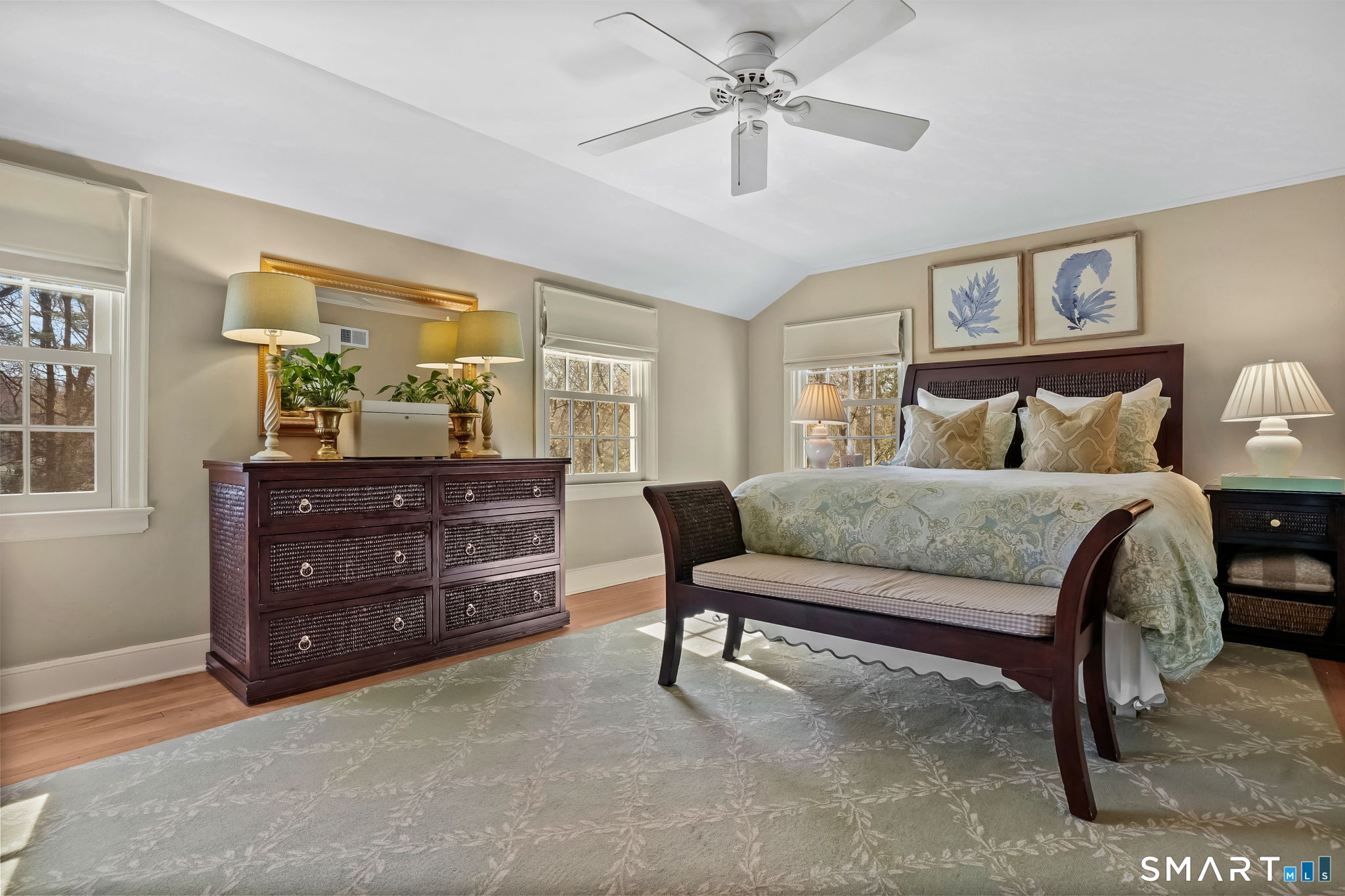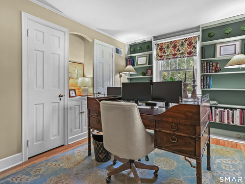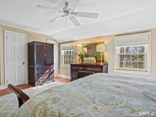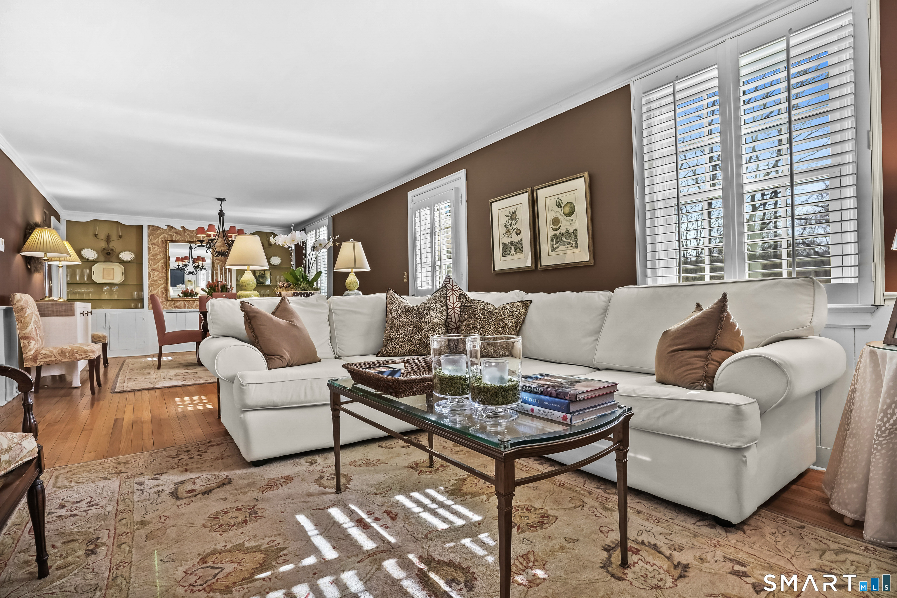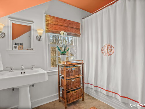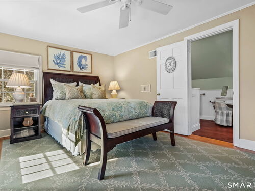 Lined with charming homes from the 1930s, Sport Hill Parkway is one of Easton's most desirable streets. Together with its quiet sister side streets, it is a secluded enclave and highly coveted dead-end located in one of the best commuting locations in town. This pristine 1938 Saltbox is set on a panoramic corner lot with an inviting custom colonial gate and New England stone walls. It has been meticulously cared for - almost every system and space has been updated in recent years. The custom shutter doors, window boxes, and urns out front set the mood as you approach. Step inside and be wowed by the whimsical elegance. The welcoming front office with its built-ins greets you. Pass the jewel box of a powder room and make your way to the inviting open concept living/dining room with gas fireplace, plantation shutters, built-ins, wainscoting, crown moldings, and easy access to the relaxing 10"x30" deck. Off the open family area enjoy the cheerful custom eat-in kitchen with sunny window seat, spunky dry bar, stylish window treatments, & practical laundry closet. Retreat upstairs to the beautifully appointed primary suite with its elegant white spa bath. The spacious second bedroom boasts its own full bath as well. Off the kitchen enjoy the built-in gas grill, extensive masonry, 3-season entertaining overlooking lush green lawn, & the tranquility of the Mill River. All this plus easy access to the train, shopping, restaurants, hiking trails, farm stands, & scenic reservoir drives.
