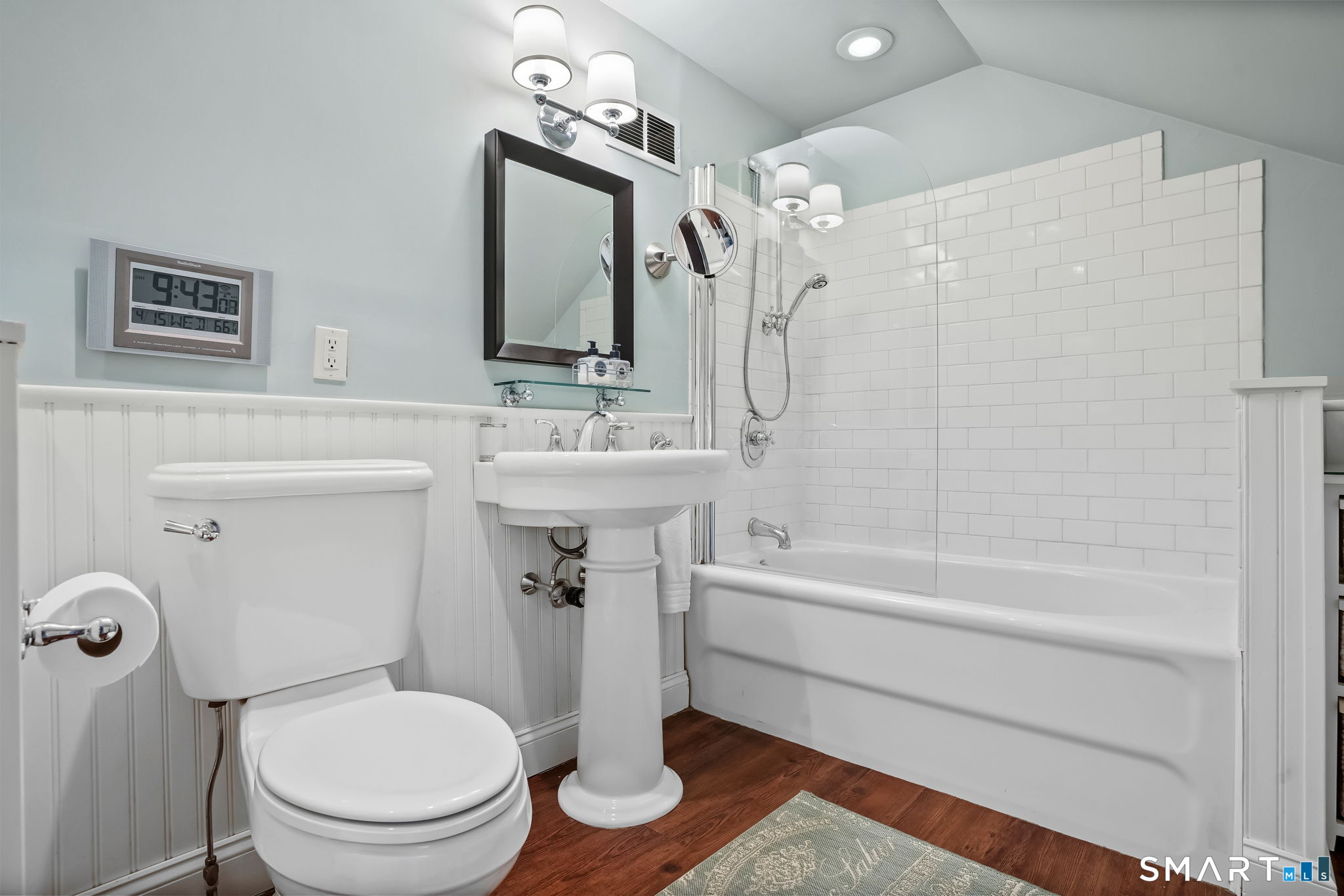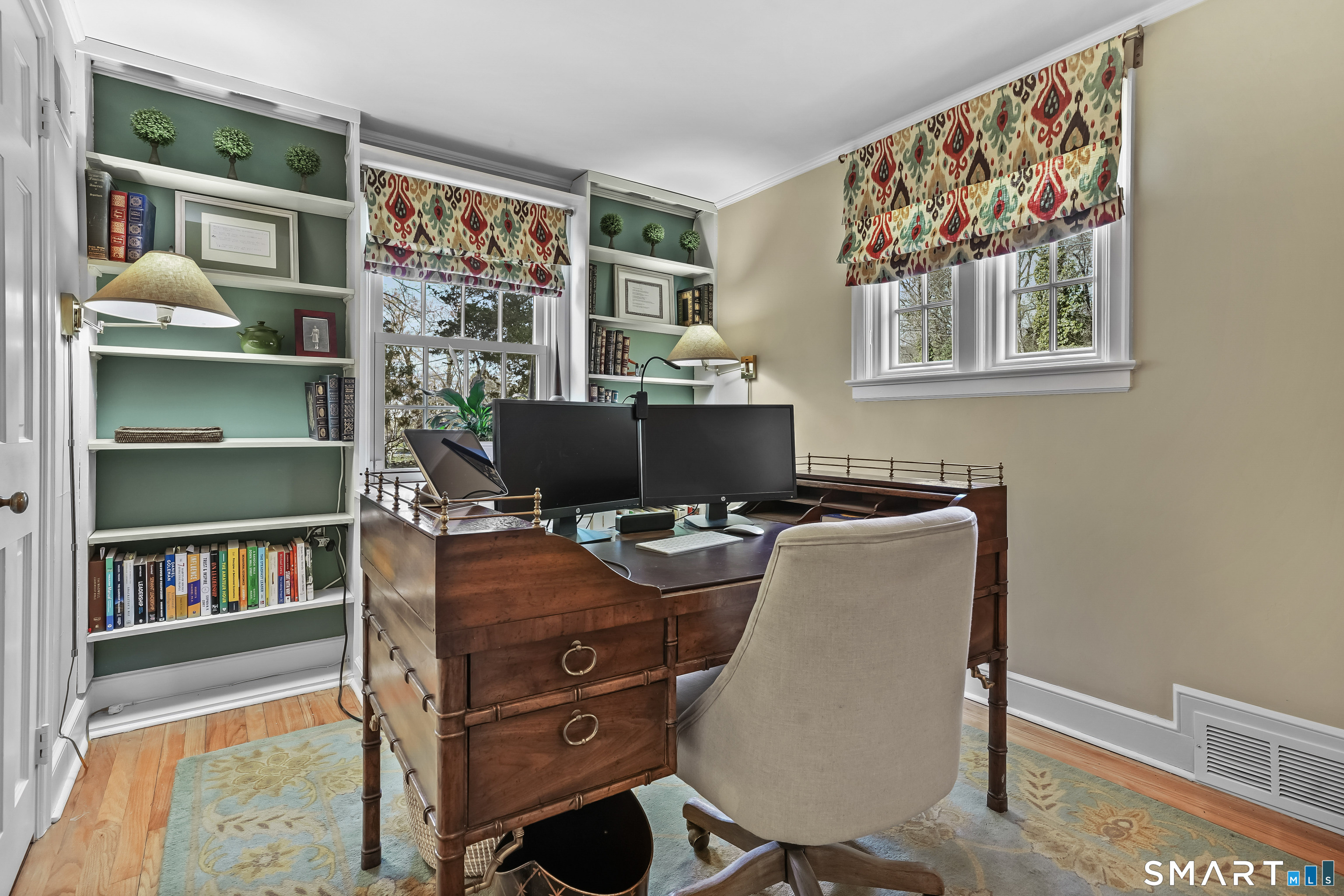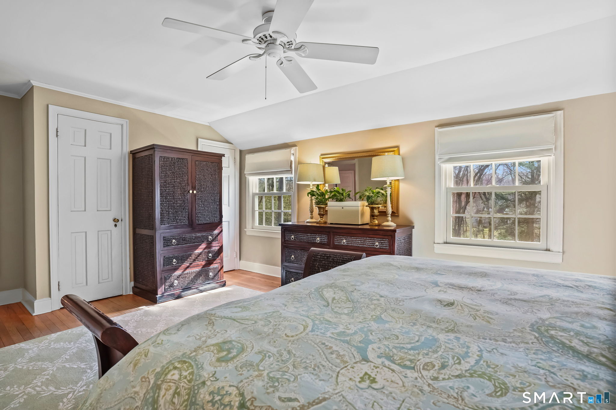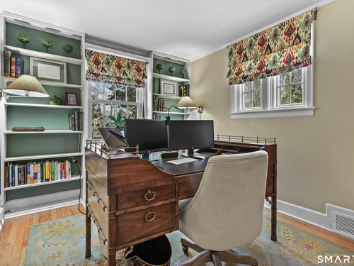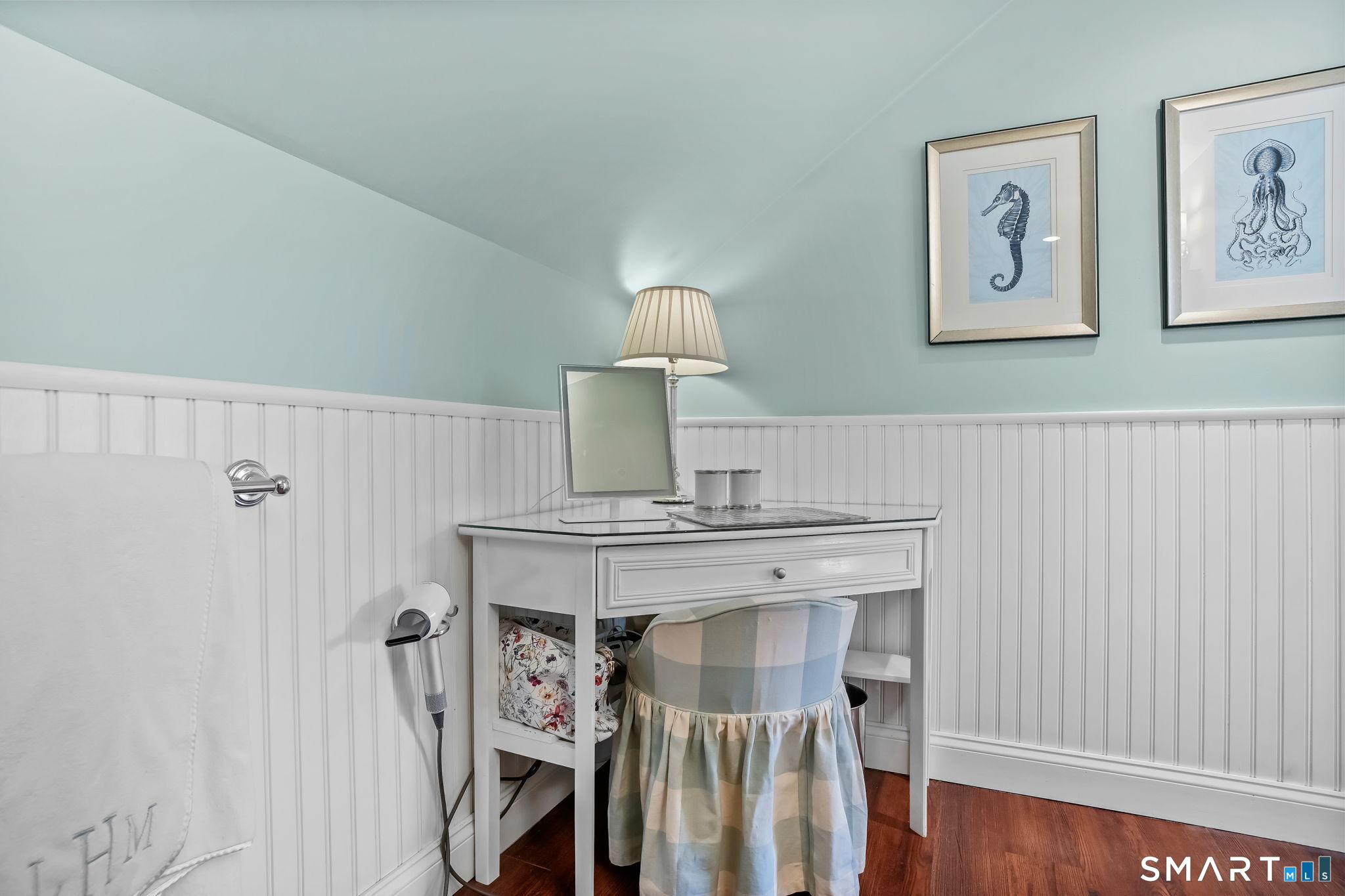 Lined with charming homes from the 1930s, Sport Hill Parkway is one of Easton's most desirable streets. Together with its quiet sister side streets, it is a secluded enclave and highly coveted dead-end located in one of the best commuting locations in town. This pristine 1938 Saltbox is set on a panoramic corner lot with an inviting custom colonial gate and New England stone walls. It has been meticulously cared for - almost every system and space has been updated in recent years. The custom shutter doors, window boxes, and urns out front set the mood as you approach. Step inside and be wowed by the whimsical elegance. The welcoming front office with its built-ins greets you. Pass the jewel box of a powder room and make your way to the inviting open concept living/dining room with gas fireplace, plantation shutters, built-ins, wainscoting, crown moldings, and easy access to the relaxing 10"x30" deck. Off the open family area enjoy the cheerful custom eat-in kitchen with sunny window seat, spunky dry bar, stylish window treatments, & practical laundry closet. Retreat upstairs to the beautifully appointed primary suite with its elegant white spa bath. The spacious second bedroom boasts its own full bath as well. Off the kitchen enjoy the built-in gas grill, extensive masonry, 3-season entertaining overlooking lush green lawn, & the tranquility of the Mill River. All this plus easy access to the train, shopping, restaurants, hiking trails, farm stands, & scenic reservoir drives.