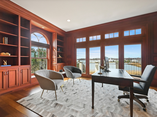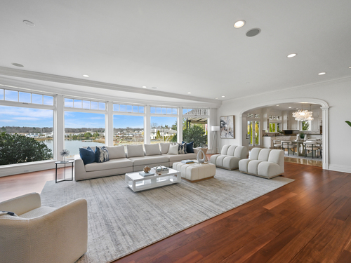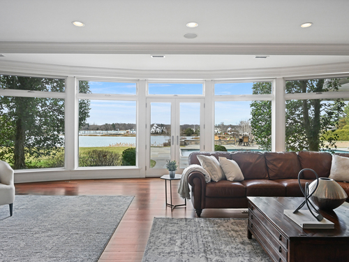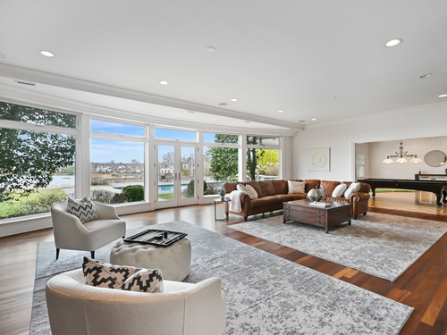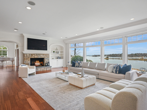 Experience unparalleled luxury in this extraordinary custom-built Riverside waterfront residence. Nestled on 1.13 acres with 9,418 square feet of living space, this exceptional home, designed by acclaimed architect Cormac Byrne, boasts a seamless open-concept layout that promotes effortless flow throughout. Soaring ceilings and expansive windows flood the interiors with natural light, highlighting the breathtaking water views that can be enjoyed from nearly every room. Outside, indulge in the serene beauty of a sparkling pool and a private dock, perfect for those who love the water, while westward-facing vistas offer stunning sunsets. A walk-out lower level elevates the home's functionality, making it a rare fine in Riverside!