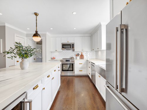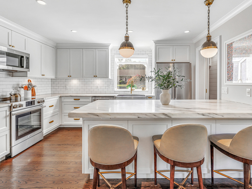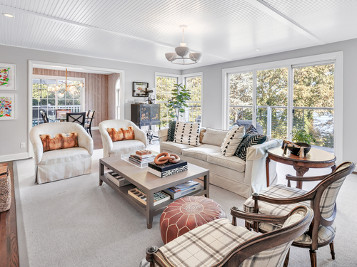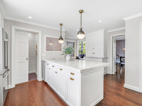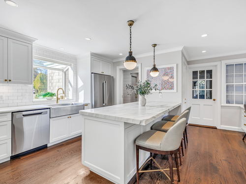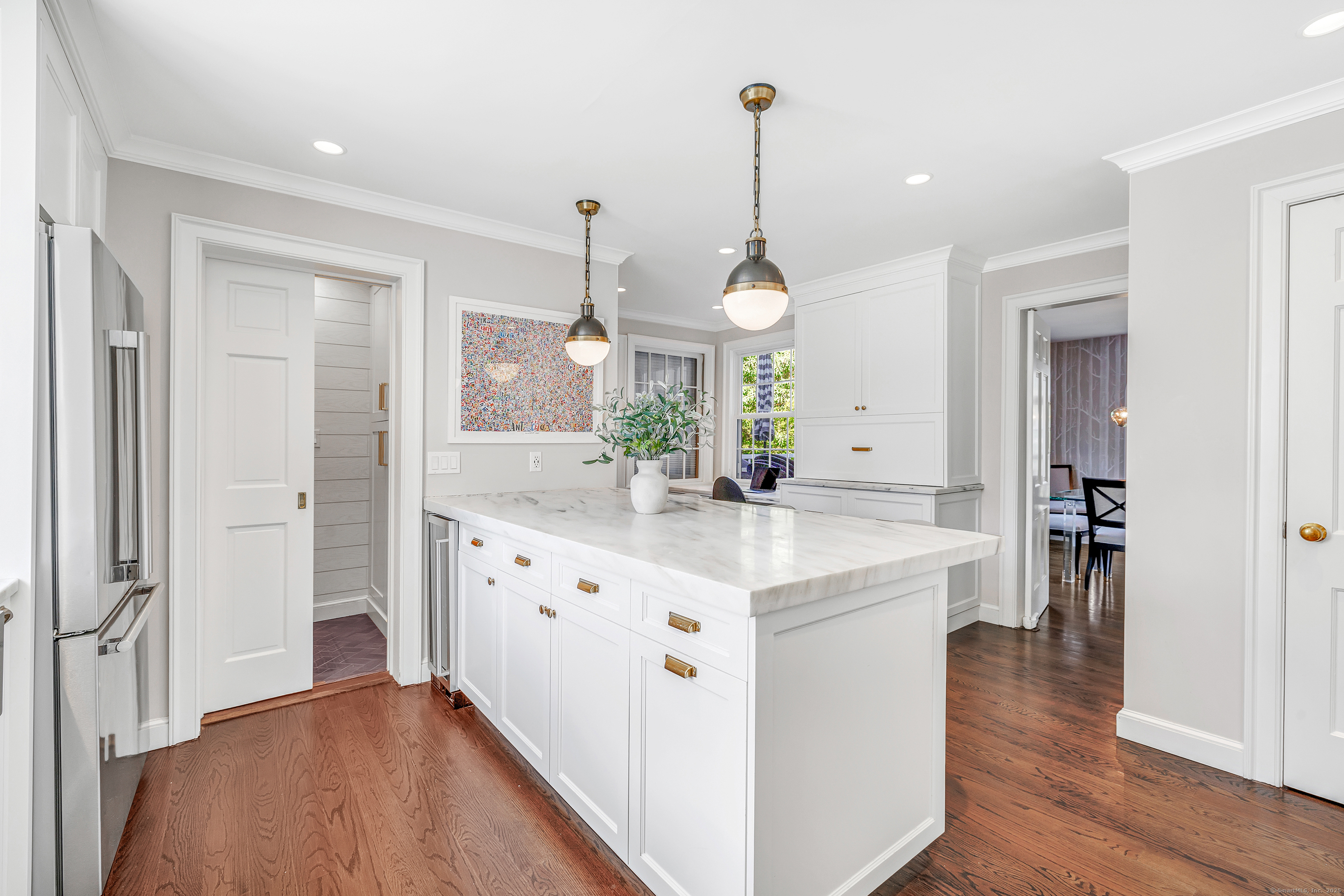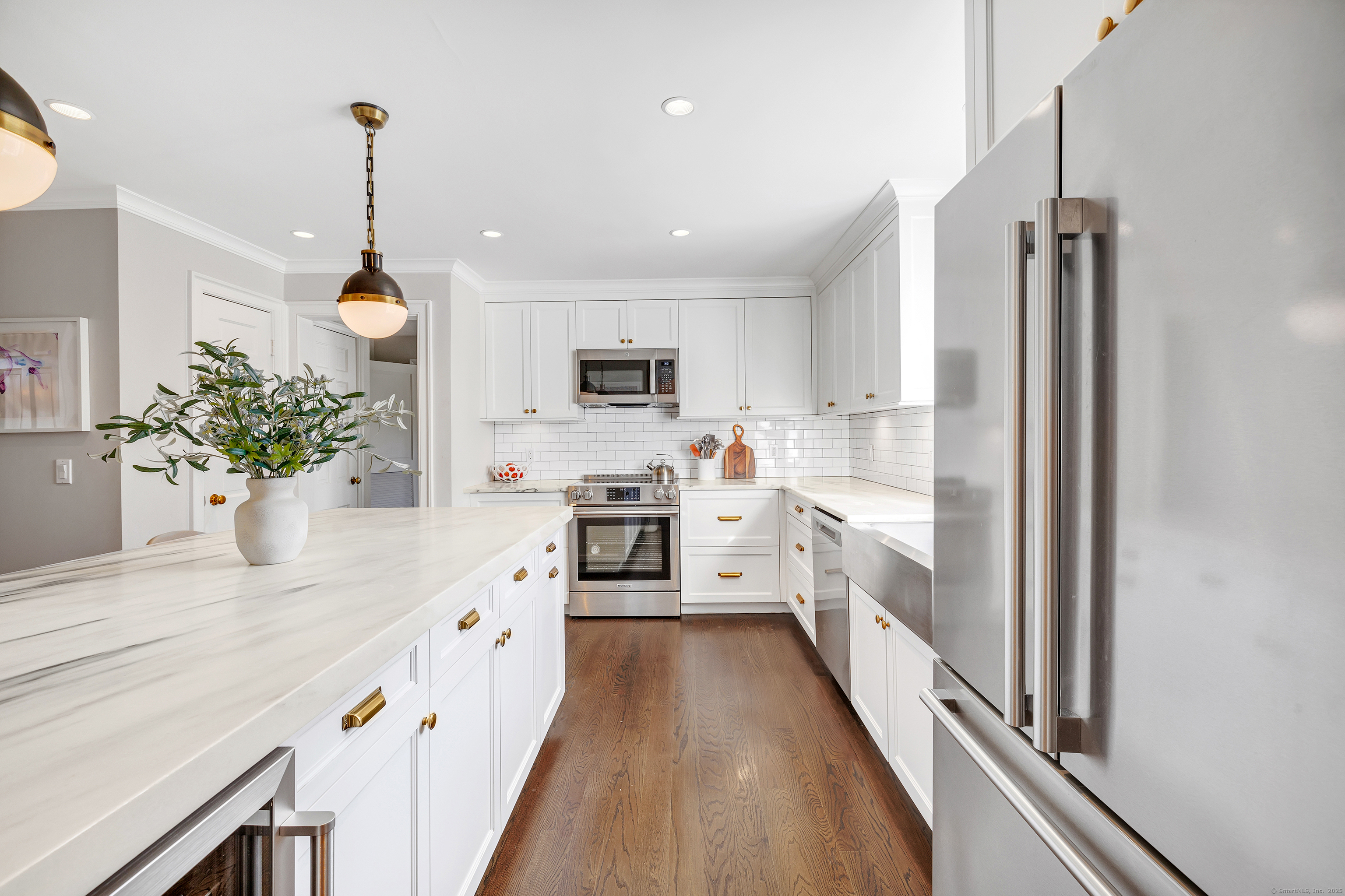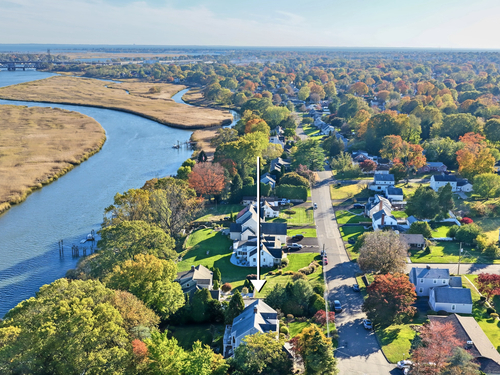 Perfectly set at the end of a quiet cul-de-sac overlooking the Housatonic River, this beautifully reimagined Cape offers timeless craftsmanship and elevated design. Every detail of this home has been thoughtfully curated, from custom cabinetry to gleaming hardwood floors and designer lighting. The heart of the home is the beautifully appointed kitchen, featuring a large marble island, wine fridge, stainless steel appliances, pantry, and built-in workspace. A cozy office sits beyond a French door, while the mudroom with custom storage keeps daily life organized. The dining room opens to the deck and flows to a living room with a striking fireplace and walls of windows framing sweeping river views. Enjoy morning coffee from the balcony as the sun rises over the water. 5 bedrooms and 2 full baths offer flexibility, including 1st and 2nd floor primary options. The 1st floor features 2 bedrooms and a spa bath with radiant heat and a steam shower, while upstairs includes 3 bedrooms, a full bath, and a large bonus room ideal for a playroom or family room. Outside, is a beautifully tiered half-acre with space for entertaining and a path to the river's edge for fishing/ kayaking. Elevated above the floodplain, no flood insurance is required! Located minutes from Stratford's Paradise Green, beaches, dining, parks, and the Metro North train. This home combines craftsmanship, comfort, and riverfront lifestyle that discerning buyers seek, at a value rarely found along Connecticut's coast