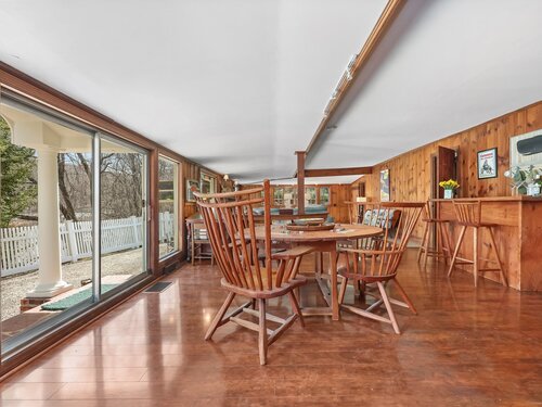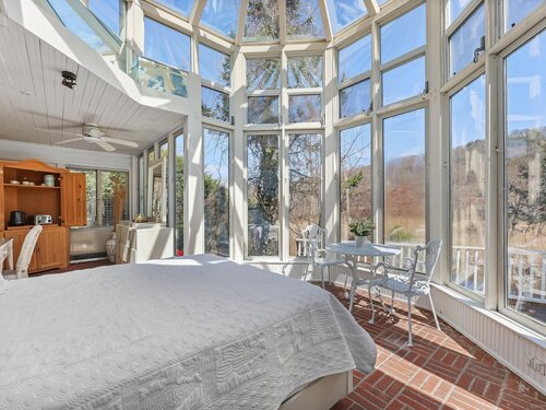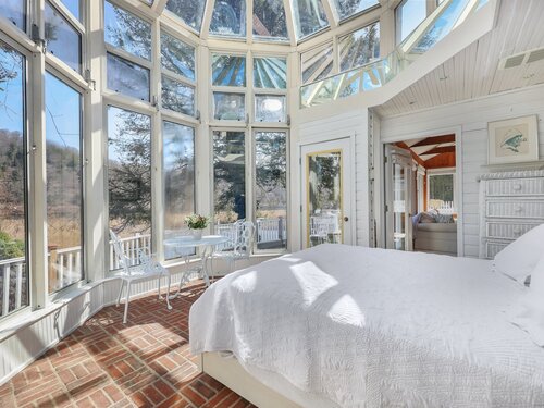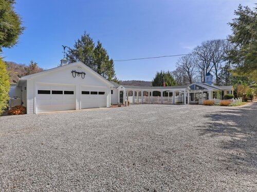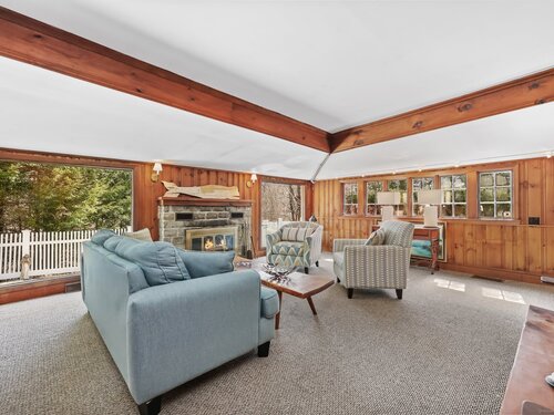 Rustic compound on Lake Zoar. Once in a while a truly special property comes to market, this is one of those. Overlooking Lake Zoar in Sandy Hook, welcome to The Fording House circa 1918. This private, waterfront property offers a tree lined gravel drive leading to the main house with floor to ceiling views of the lake, three bedrooms, kitchen with newer appliances, great room, sun room and more. There is a separate two room cottage connected by a beautiful breezeway. The cottage retreat boasts a glass conservatory bedroom designed by the Hilton family. While simple and accommodating in style, there are one of a kind features such as the all glass gazebo bedroom, views of the water from almost all of the rooms, waterfront privacy and charming architectural details. The compound has been lovingly maintained, substantial recent investments include but are not limited to new main house septic system, roofs, furnaces, gravel drive, dock system and exterior paint, Imagine waking up to the sun's rays warming your skin through the glass bedroom walls, providing a peaceful rest while taking in the natural habitat of the quiet cove. Immersed in history, with the outbuildings dating from 1918. The main home and guest quarters were built in 1957 by the previous owner who managed a high profile restaurant in NYC. Folklore has it that he frequently invited celebrities, including members of the rat pack and the Hilton family to stay at the lake who would fly in via sea plane.