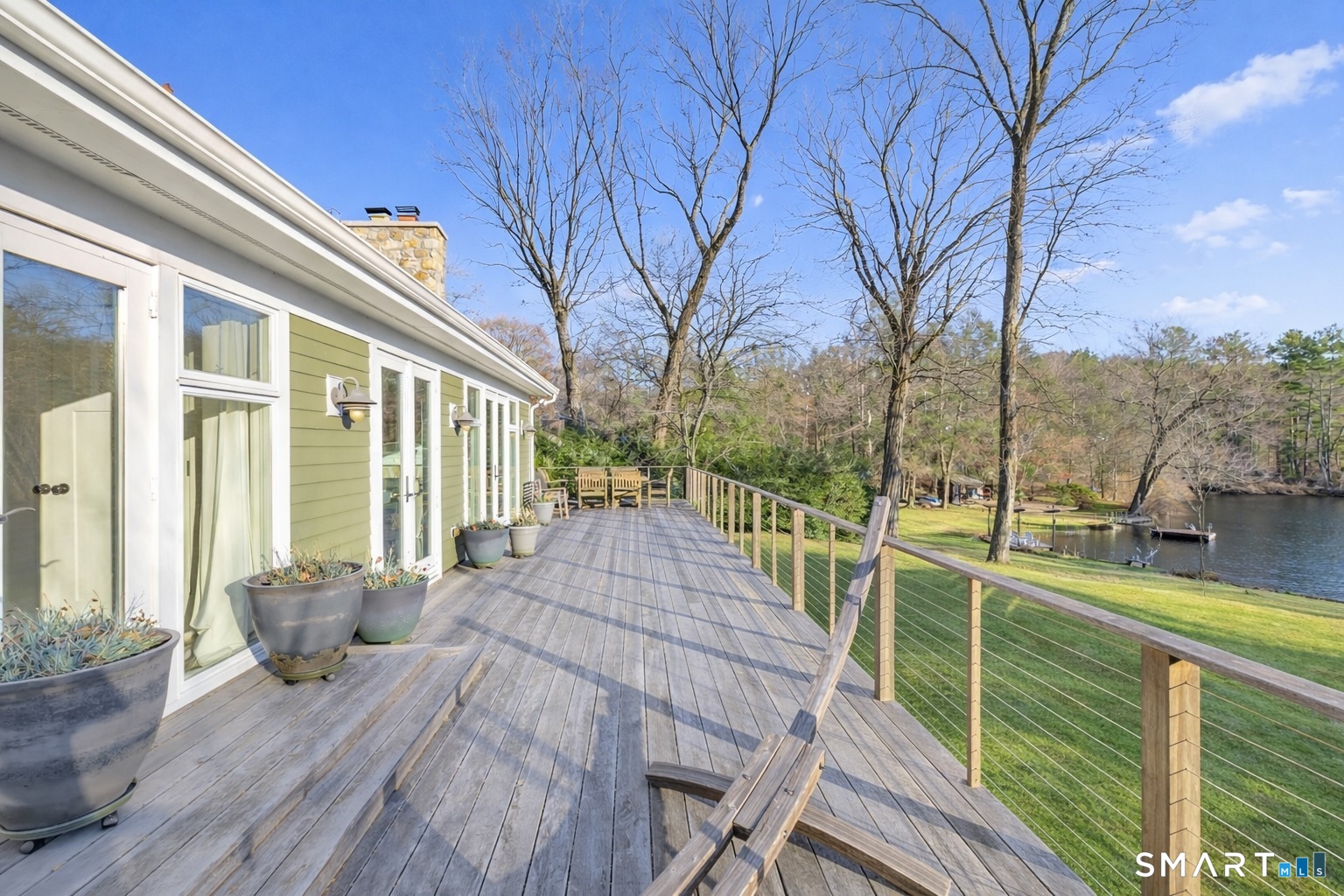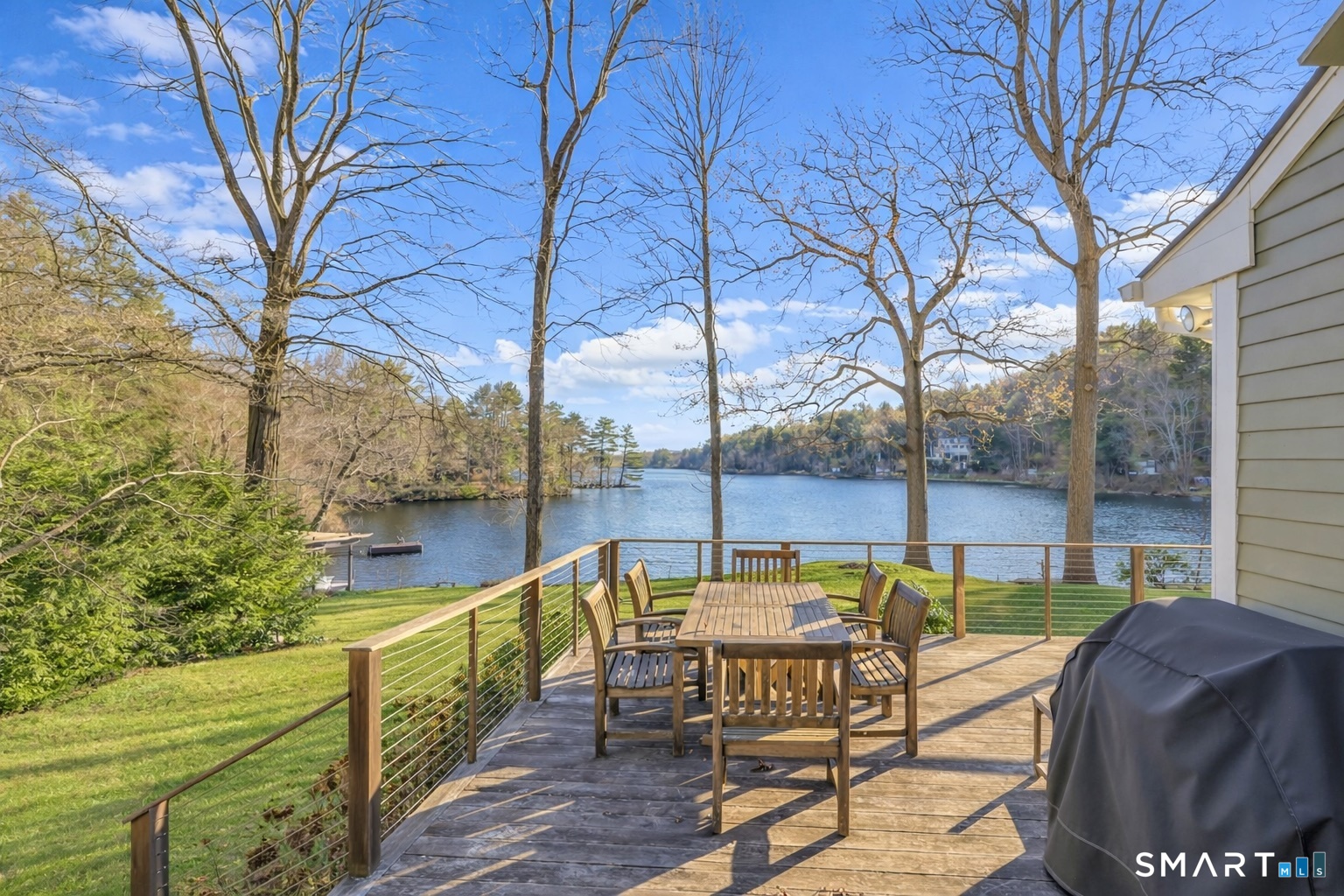 Vacation living on beautiful Pinewood Lake! Wake up every morning to one of the most breathtaking lakefront views & enjoy the feeling of a year-round resort right from home. Offering one-level living at its best, this beautifully remodeled residence features 3 bedrooms, 2 full baths, and over 3200 square feet of living space. Step inside to an inviting open-concept layout w/a sun-filled living room featuring a fireplace, seamless dining area, & a stunning kitchen complete w/granite countertops & a large center island, perfect for entertaining. Three generously sized bedrooms & a beautifully updated full bath complete the main level. The finished lower level offers exceptional flexibility w/a spacious family room & second fireplace, laundry room, full bath, & potential fourth bedroom or home office, ideal for guests or work-from-home living. Outdoors, enjoy direct water access & relax, dine, or unwind on the expansive 800+ sq ft natural wood deck, surrounded by majestic shade trees & perennial landscaping. The property boasts over 100 feet of lake frontage, creating a truly idyllic & peaceful setting. Enjoy swimming, boating, fishing, and ice skating w/spectacular views in a wonderful community. This home features deeded lake rights with the option to join Pinewood Lake Association, offering a recently renovated clubhouse, private beach w/lifeguards, canteen, & event rental opportunities. Conveniently located near major cities, universities, & public transportation!