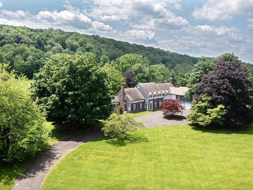 Welcome Home to this beautiful estate property, sited on 7.39 private, picturesque acres just minutes from Ridgefield's vibrant village center. Built in 1970 and offering 5,705 square feet of above-grade, finished living space, this classic Colonial and the surrounding property are brimming with opportunity. The custom-built residence's main living space includes a gracious living room, formal dining room, dedicated office, and a large kitchen and breakfast room. An expansive great room with vaulted ceilings, exposed beams, custom built-ins, and split full bathroom anchors the home. All bedrooms feature ensuite bathrooms and ample closet space, plus views from multiple bedrooms of the beautiful setting. The grounds are truly spectacular--lush, mature, and serene, with the solid footprint of an older tennis court and shed ready for restoration or reimagining. Countless opportunities for this stunning estate. The home features solid hardwood floors throughout, clapboard siding, central air conditioning, oil-fueled baseboard heat, poured concrete foundation, well, septic, and pull-down attic. Enjoy the remarkable balance of privacy and mere minutes to the village center for boutique shopping, restaurants, theaters, museums, district schools, parks, and quick zip to major commute routes to lower Fairfield County and NYC. Note, this is an estate sale, residence and property being sold "as-is". Welcome Home!