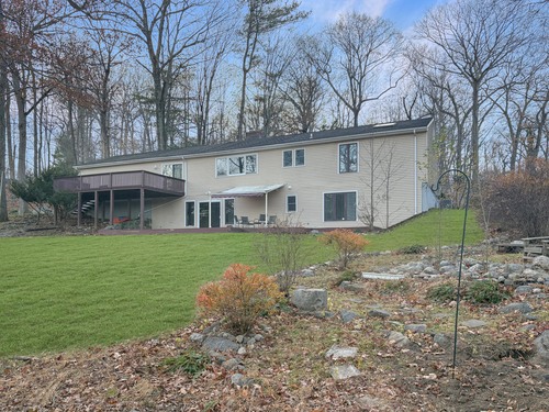Tucked away at the end of a desirable lower North Stamford cul-de-sac neighborhood, this spacious five bedroom ranch offers rare one-level living with direct access to the serene Holtz Ice Pond. Enjoy year round views, pond hockey, ice skating and nature from this spacious ranch. With approximately 3,100 sq. ft. of living space, the home features a generous two-room primary suite with walk in closet, three full baths, central air, and an attached two-car garage. Large windows and two expansive decks capture picturesque water views, creating an ideal setting for relaxation or entertaining. The walk-out lower level expands your living options with new luxury vinyl flooring, LED lighting, cozy fireplace and flexible space for a family room, home gym, office, or guest suite area. Whether you're seeking privacy, nature, or convenience, this pond-side retreat combines them all in a highly desirable North Stamford location at the very end of a cul-de-sac.