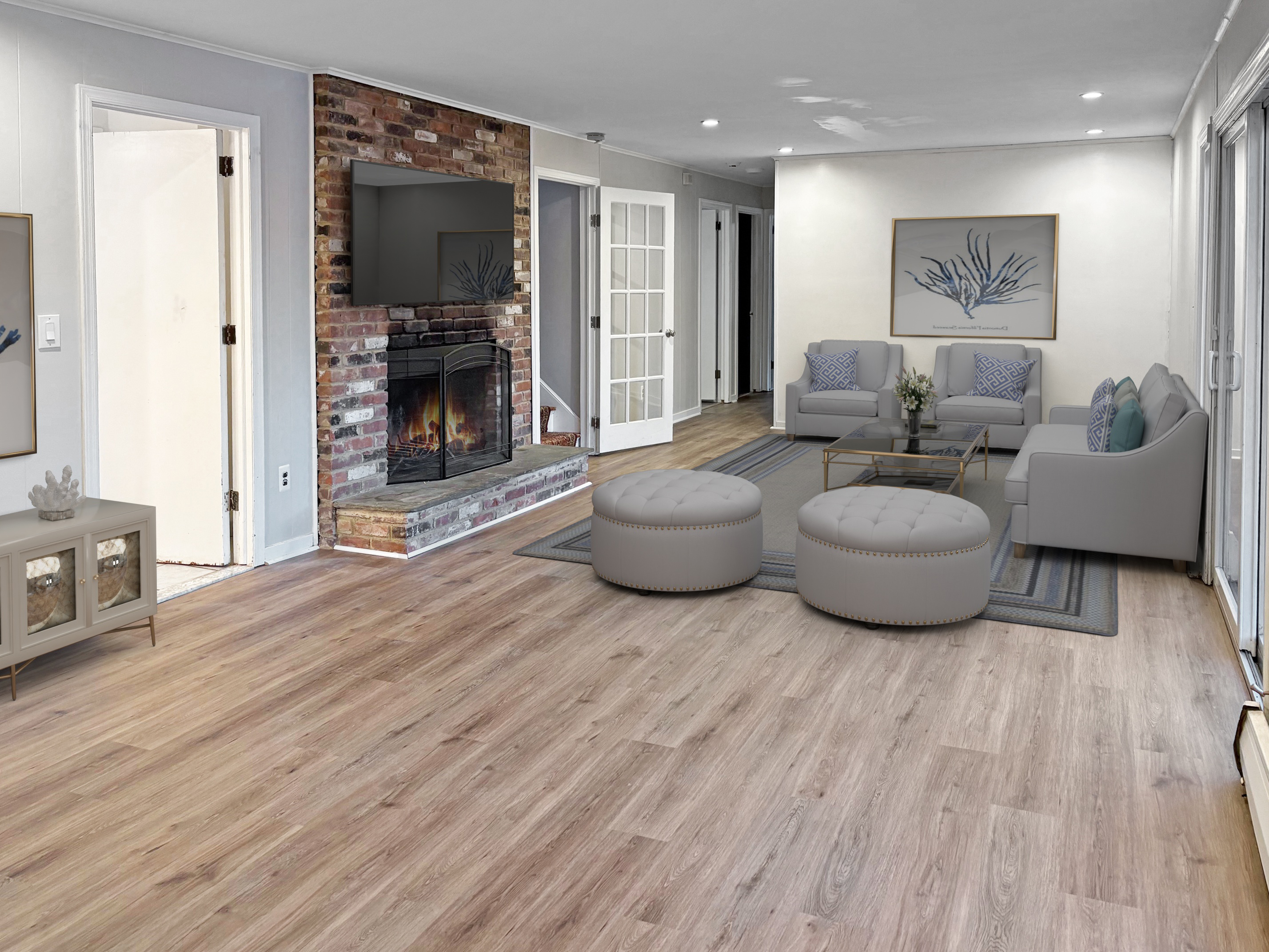 Family Room (Lower Level)Fireplace, Sliders, Vinyl Floor