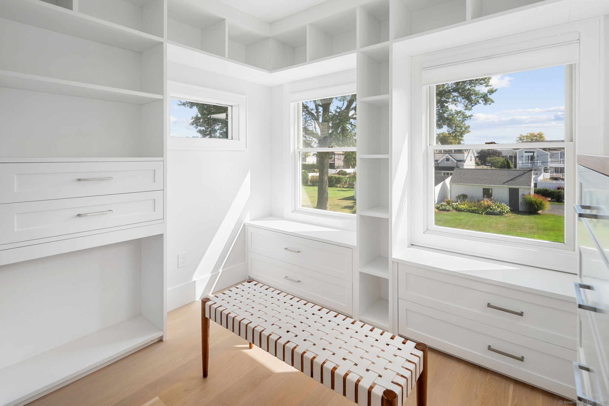 Looking for a stunning beach home with a private dock? Welcome to this exceptional waterfront retreat on coveted Gregory Point, overlooking Norwalk Harbor. Perfectly positioned with west-facing views, this residence captures dazzling sunsets and a dynamic harbor scene from nearly every room. Beautifully renovated, this modern coastal farmhouse is the epitome of move-in-ready luxury. The sunlit chef's kitchen-with wood-burning fireplace-opens to a casual family room wrapped in water views. Entertain effortlessly in the formal dining room or spacious living room designed for gatherings. Host unforgettable dinners in the formal dining room and entertain friends in the relaxed and spacious living room. Upstairs is the Primary Suite, a sanctuary that boasts panoramic harbor views, a sitting area with coffee bar, a luxurious spa bath with soaking tub and separate shower, plus multiple walk-in closets. There are three additional bedrooms, 2 bathrooms and 2 bonus rooms (one with a wall of windows), while the first floor offers a versatile home office or fifth bedroom, and custom mudroom. Step outside to the wrap around porch or the blue stone patio to live life al fresco. And let's not forget your boating dreams - fulfilled with a stationery pier and floating dock. In addition to the attached garage there is a separate garage at the end of the driveway. Enjoy a quiet neighborhood close to beaches, golf, tennis, and local restaurants.