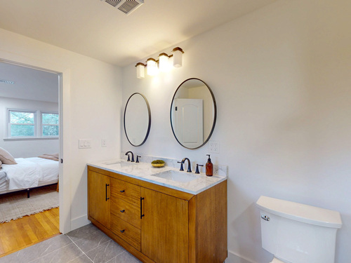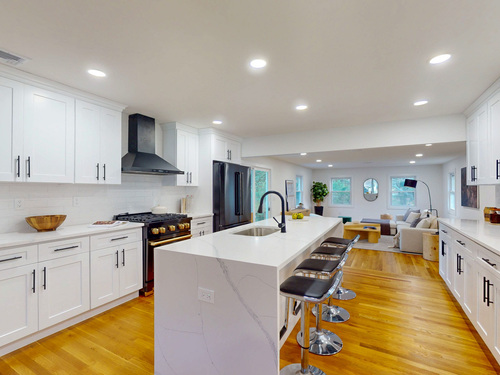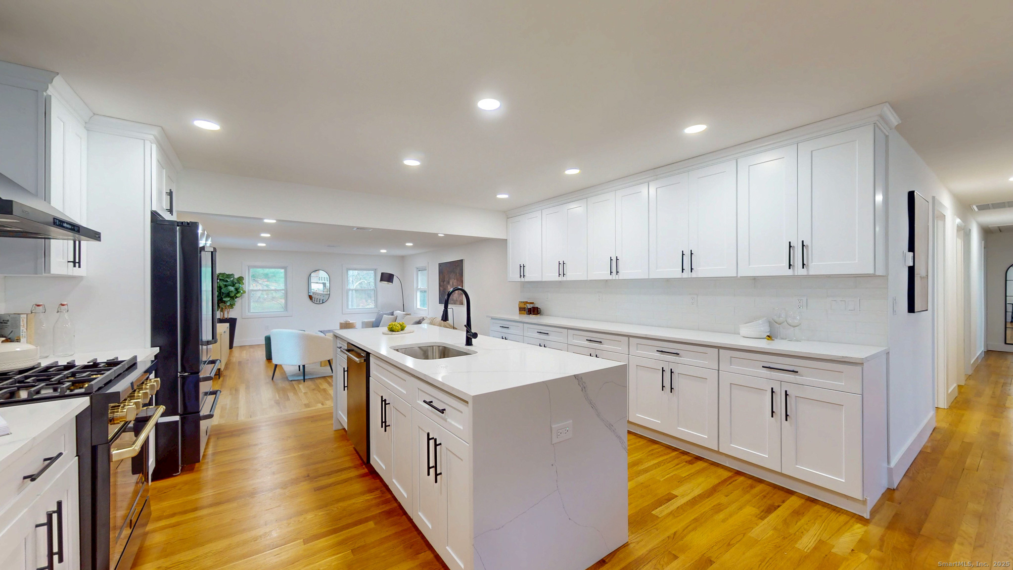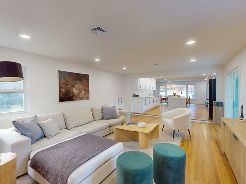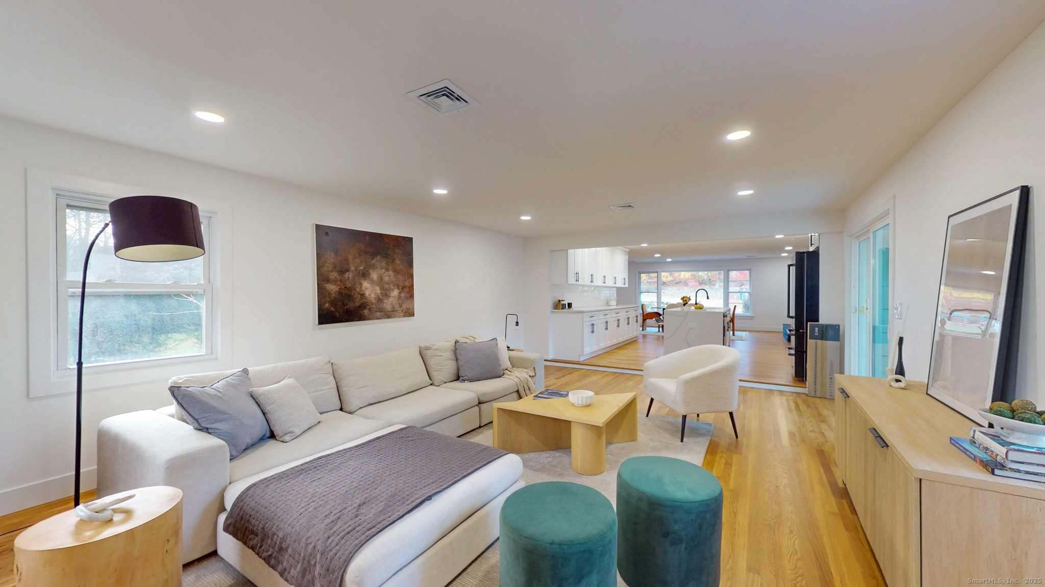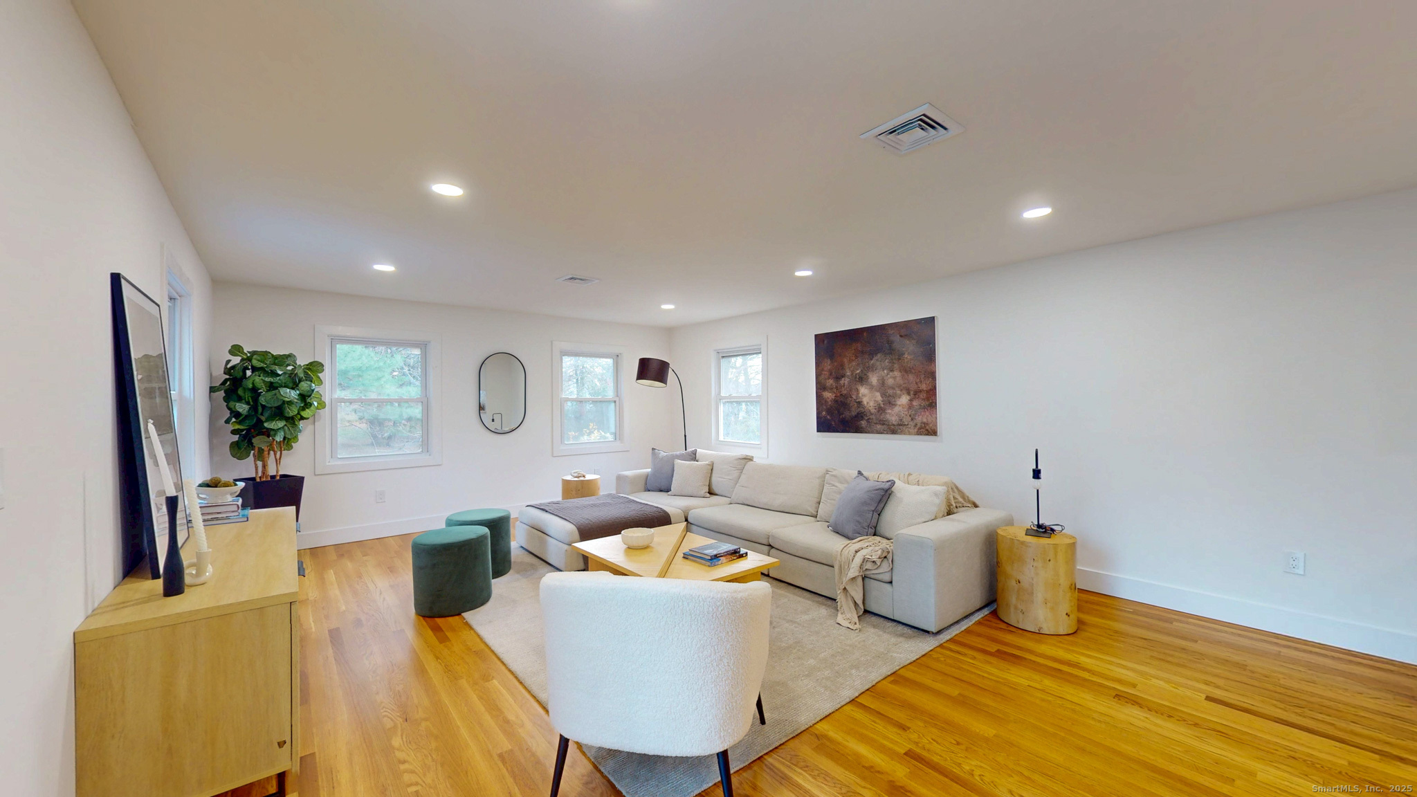 Move-In Ready Modern Ranch - Fully Renovated with Designer Finishes! Discover this beautiful 4-bedroom, 2-bath ranch tucked away on a quiet cul-de-sac with a level .43-acre lot and the peaceful Horse Tavern Brook along the property line. Enjoy a bright open-concept floor plan with gleaming hardwood floors, a stone fireplace, and a gourmet kitchen featuring high-end black stainless-steel appliances, quartz countertops, and custom cabinetry. The oversized primary suite offers a luxurious tile bath, while three additional bedrooms and a fully updated main bath complete the space. Step out to a large patio overlooking a private backyard, ideal for entertaining. Updates include a new roof, vinyl windows, electrical, HVAC, and an oversized two-car garage. Turn-key, energy-efficient, and move-in ready! Owner is a licensed real estate agent.