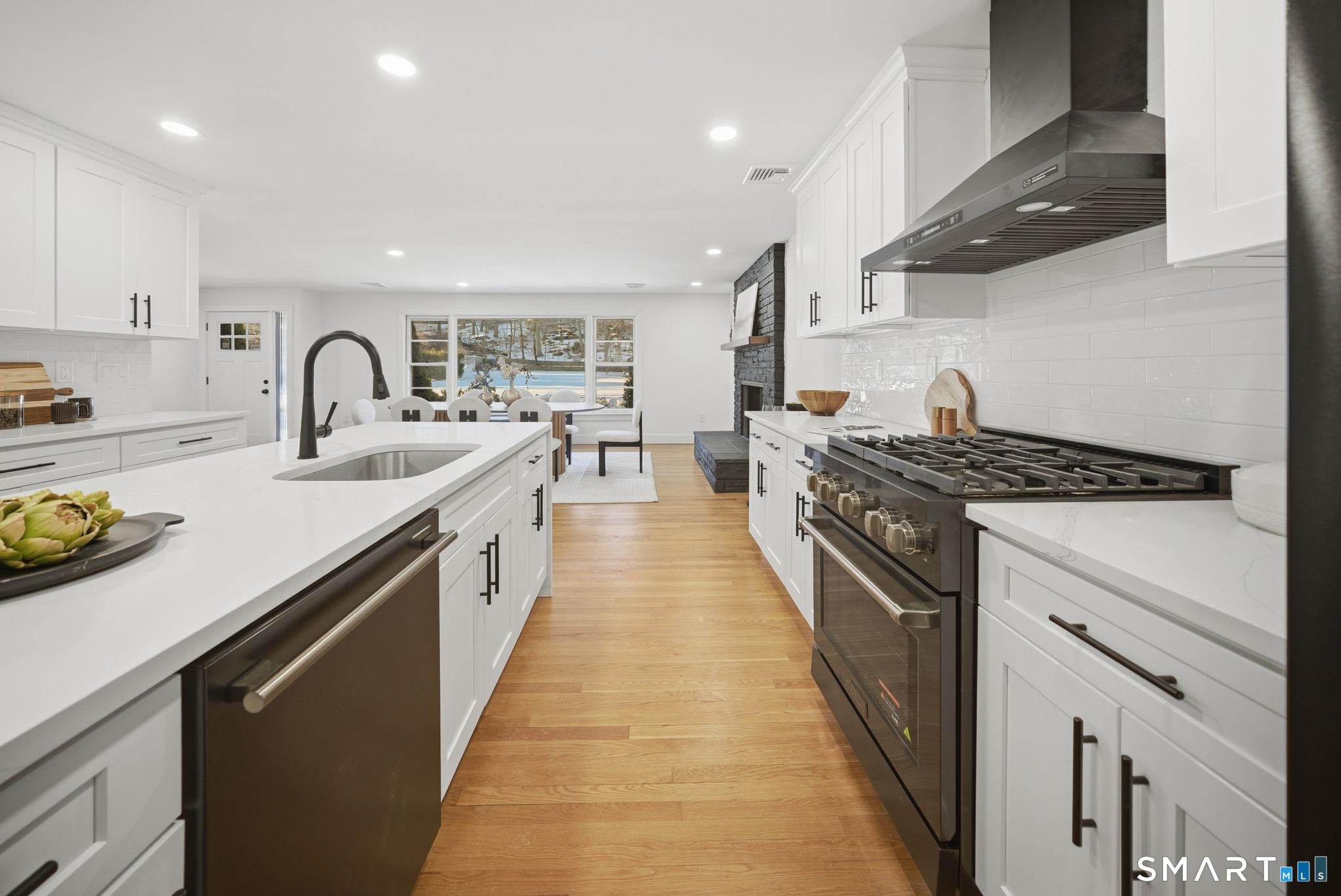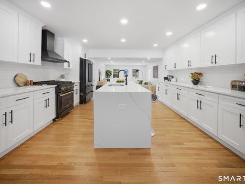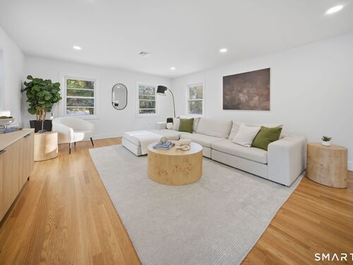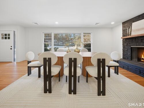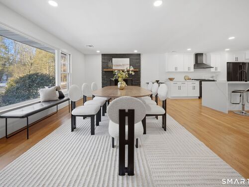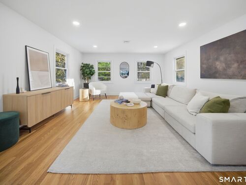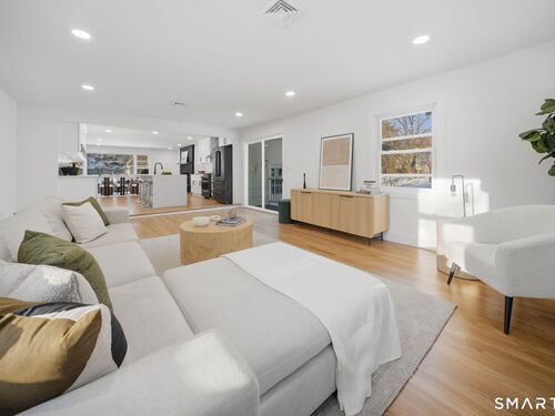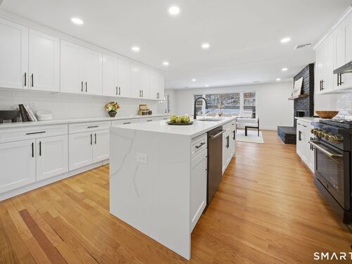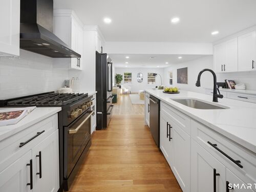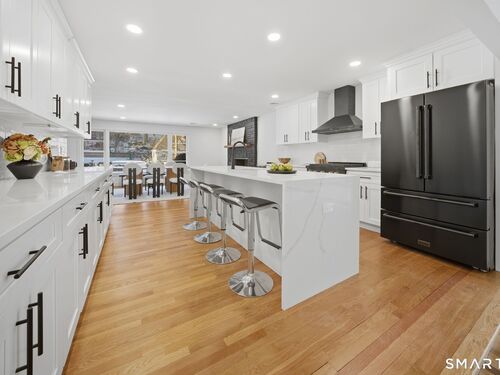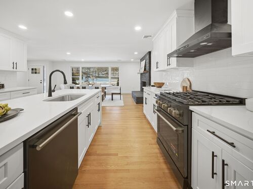 Tucked away on a quiet cul-de-sac, 90 Lu Manor Drive offers modern updates and timeless comfort in a beautifully renovated ranch. Set on a level .43-acre lot bordered by Horse Tavern Brook, this four-bedroom, two-bath home combines privacy with convenience. The sun-filled interior features an open layout with hardwood floors throughout and a classic stone fireplace that adds warmth and character. The redesigned kitchen includes black stainless-steel appliances, quartz countertops, custom cabinetry, and ample storage, making it ideal for both daily living and entertaining. The spacious primary suite includes a stylish tiled bath, creating a private retreat. Three additional bedrooms provide versatility for guests, work-from-home needs, or family living. The updated hall bath features clean, contemporary finishes. Outdoor living is easy with a large patio overlooking the expansive backyard and natural brook setting. Extensive improvements-including a new roof, vinyl windows, electrical updates, and modern HVAC-offer energy efficiency and peace of mind. An oversized two-car garage completes the property. Convenient to schools, parks, shopping, and commuter access, this move-in ready home delivers comfort, quality, and location in one exceptional Fairfield offering. Owner is a licensed real estate agent.