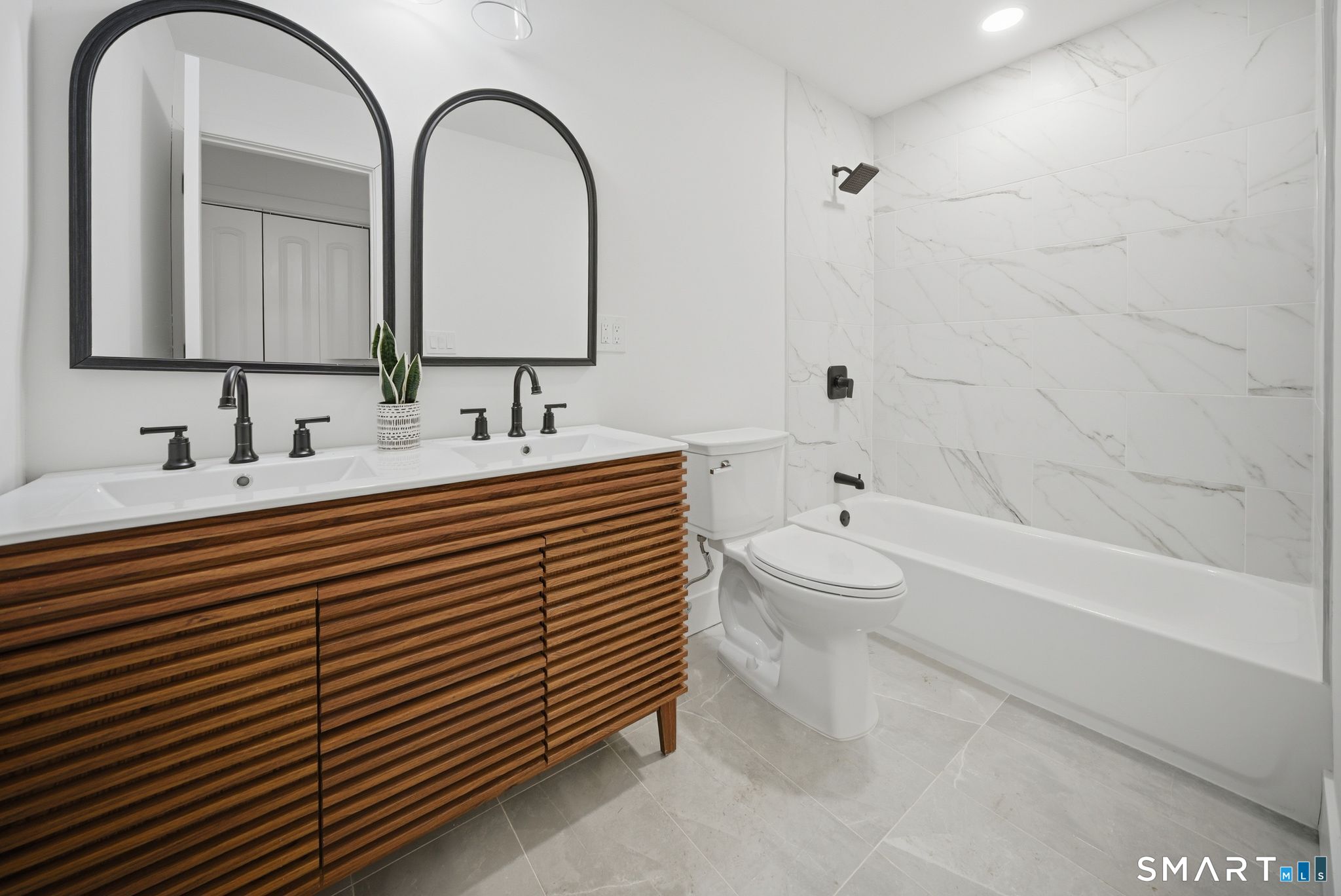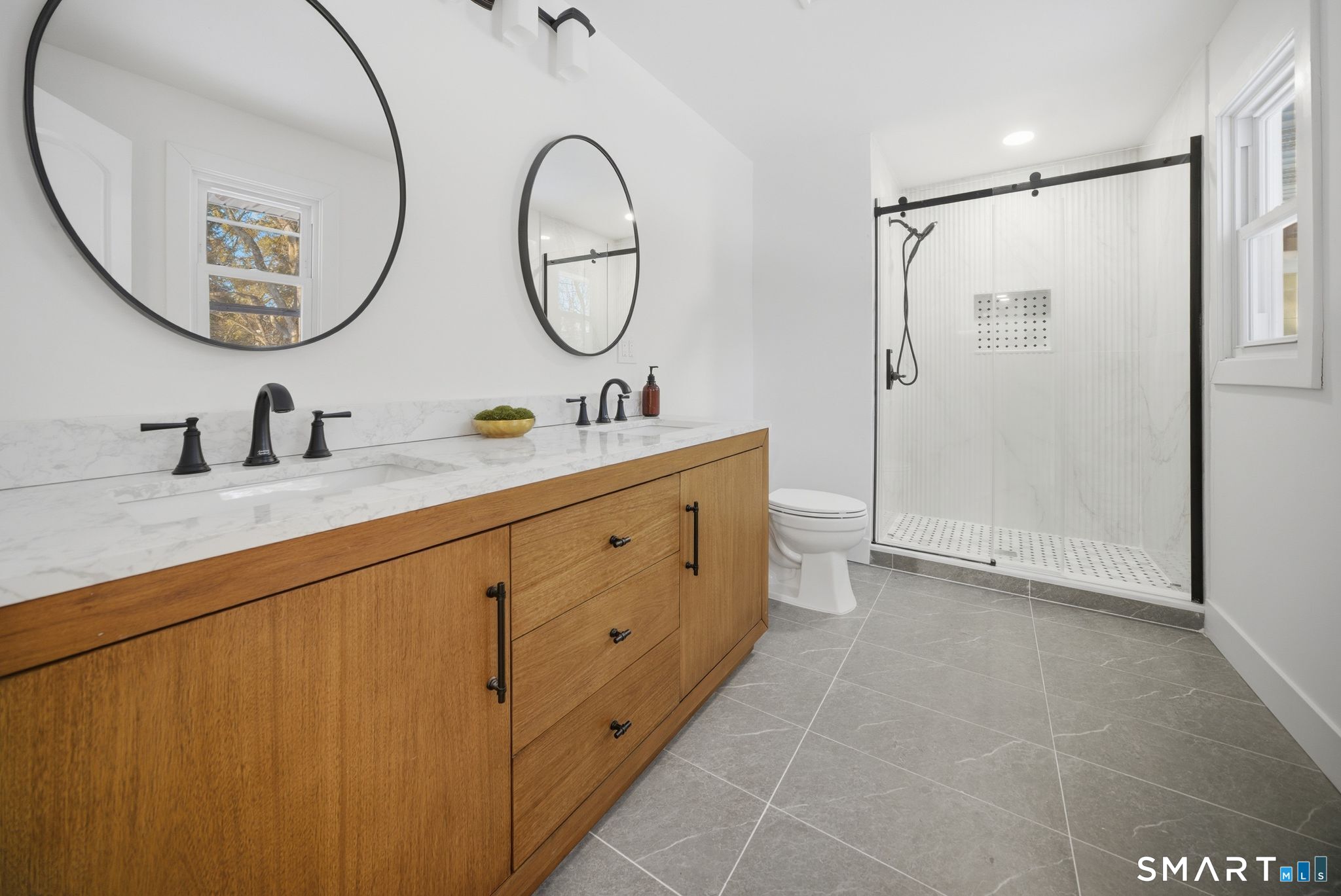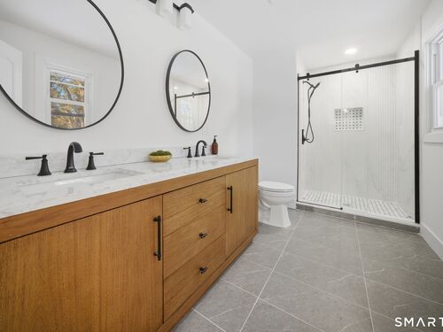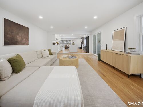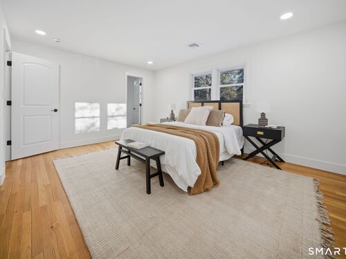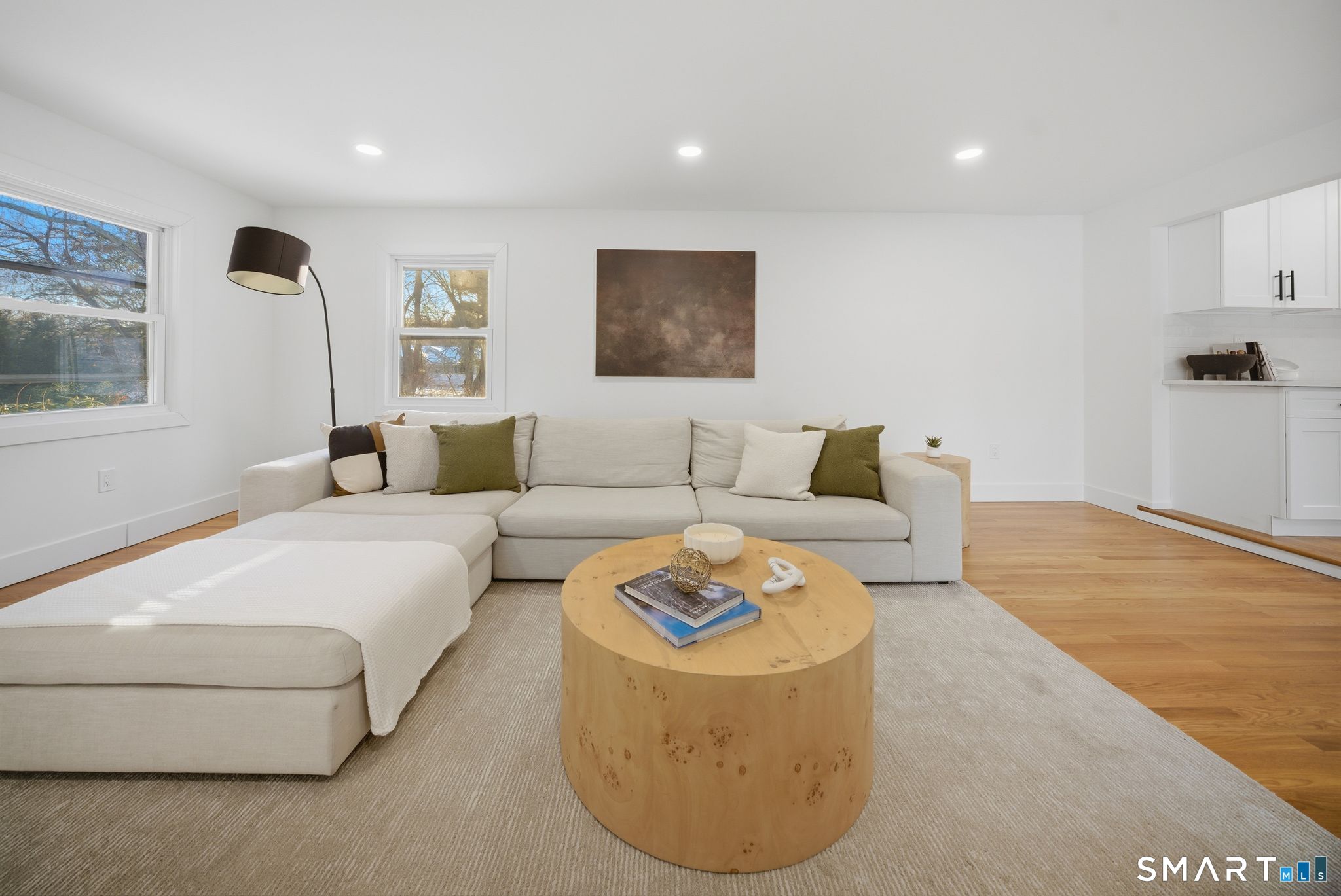 Tucked away on a quiet cul-de-sac, 90 Lu Manor Drive offers modern updates and timeless comfort in a beautifully renovated ranch. Set on a level .43-acre lot bordered by Horse Tavern Brook, this four-bedroom, two-bath home combines privacy with convenience. The sun-filled interior features an open layout with hardwood floors throughout and a classic stone fireplace that adds warmth and character. The redesigned kitchen includes black stainless-steel appliances, quartz countertops, custom cabinetry, and ample storage, making it ideal for both daily living and entertaining. The spacious primary suite includes a stylish tiled bath, creating a private retreat. Three additional bedrooms provide versatility for guests, work-from-home needs, or family living. The updated hall bath features clean, contemporary finishes. Outdoor living is easy with a large patio overlooking the expansive backyard and natural brook setting. Extensive improvements-including a new roof, vinyl windows, electrical updates, and modern HVAC-offer energy efficiency and peace of mind. An oversized two-car garage completes the property. Convenient to schools, parks, shopping, and commuter access, this move-in ready home delivers comfort, quality, and location in one exceptional Fairfield offering. Owner is a licensed real estate agent.