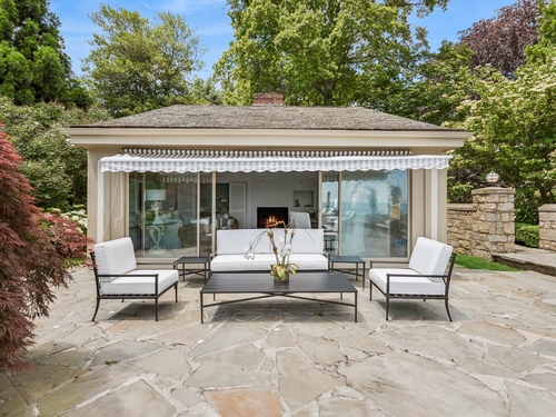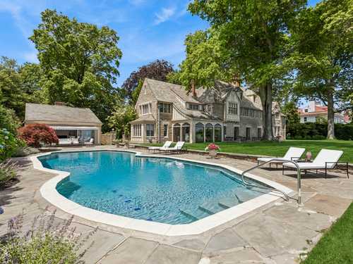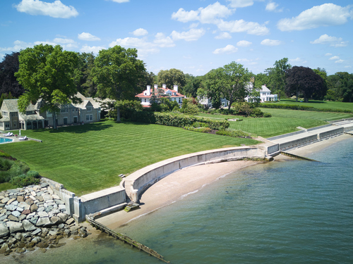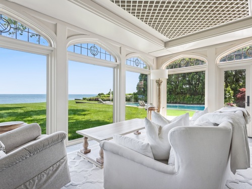 Once-in-a-Generation Historic Estate set on a most coveted stretch of Fairfield County's Gold Coast, with a remarkable provenance as a former Bedford family estate. This extraordinary property is a rare offering that blends timeless architecture with iconic waterfront living. With sweeping views of Long Island Sound, the home's stately presence is matched only by its stunning 3.55 acres of parklike grounds and over 200 feet of waterfront, including a waterfront pool, well-equipped pool house, and 3-bedroom guest cottage. Approach through the gated stone walls and travel the tree-lined drive, enjoying the unfolding Sound views. Rich with original character, the main residence evokes the grace of a bygone era with leaded glass windows, impressive millwork, and grand gathering spaces featuring soaring ceilings designed to showcase the breathtaking views. Included in the home's magic is this wonder: a sailing ship imported from England, reconstructed on site to create a one-of-a-kind study. Generations have hosted parties on these magnificent grounds, enjoyed quiet mornings by the seawall or spent a day boating from the mooring off its private beach. This former longtime home of Lucie Bedford and her husband, Briggs Cunningham - race car driver and America's Cup winner - is a landmark opportunity to own a storied piece of Westport's history along prestigious Beachside Avenue. A one-of-one opportunity to carry on this legacy of luxury and history at this iconic waterfront estate.