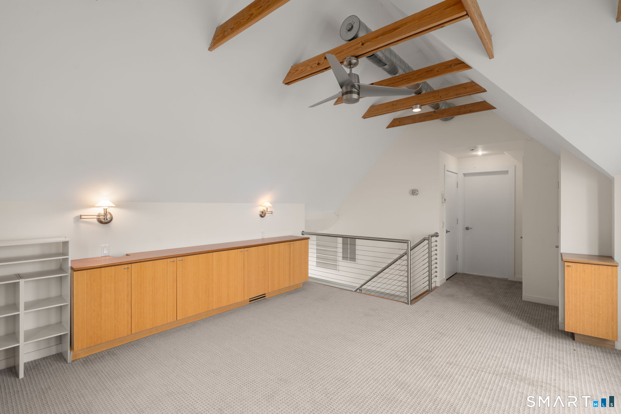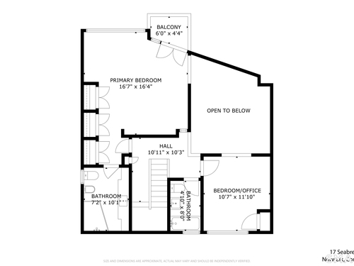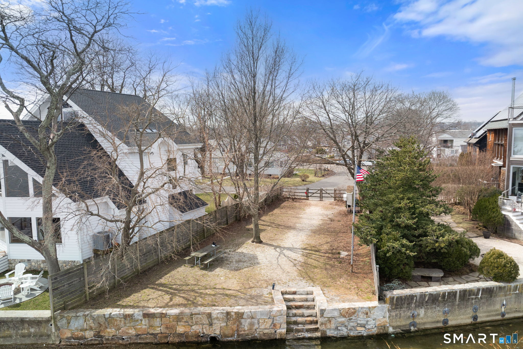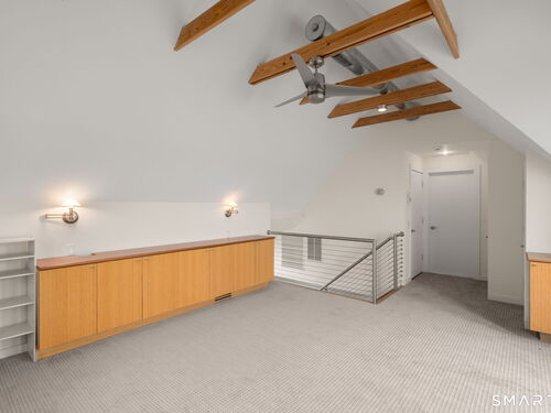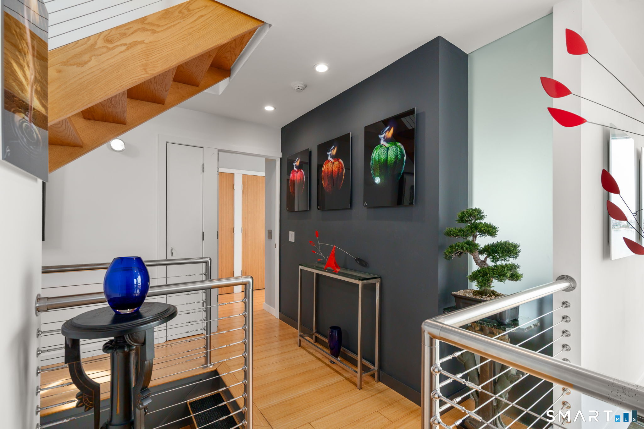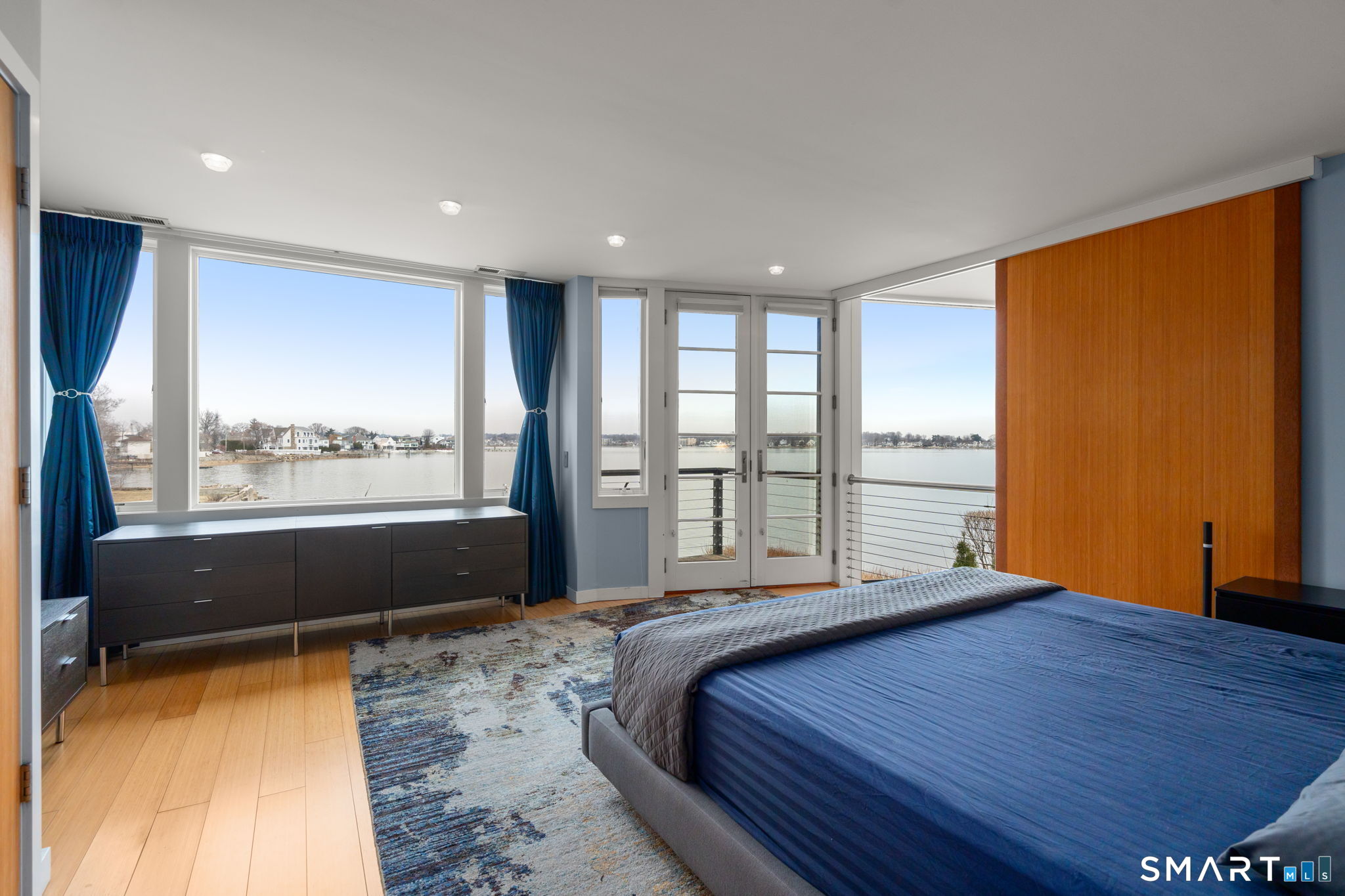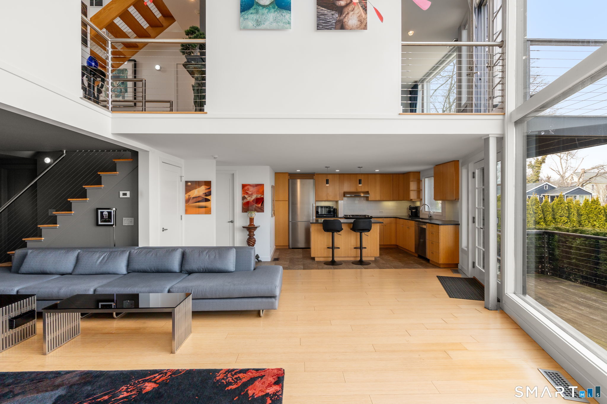 17 Seabreeze Pl "Windswept" is a rare waterfront offering. A thoughtfully designed coastal retreat where architecture and setting come together to create this prized home. The steel-framed construction offers just over 2,000 sq ft across three finished levels. Designed to maximize natural light and panoramic water views, the home features a dramatic 16-foot wall of glass visible from the living room, office, and primary suite. A custom pivot entry door creates a striking first impression, leading into an open living space showcasing bold interior design and subtle nautical-inspired elements, defined by coastal aesthetic metal railings throughout.The flexible floor plan includes a main-level bedroom with access to a full bath. The second floor offers a primary suite with en-suite bath, private balcony, and a custom sliding wall system allowing for privacy or expanded sightlines. An additional room functions as a home office or bedroom with a full bath nearby. The third floor, accessed via a floating staircase, features a vaulted studio room with built-ins, a full bath, and private deck with expansive water views, ideal for relaxing or entertaining. Exterior upgrades include new composite siding, awning, and professionally designed landscaping with drip irrigation. Owned solar panels help offset rising electricity costs. Enjoy nearby Baxter Park, a city-maintained, dog-friendly waterfront park with seating, small kyak launch, a cherished amenity of the Harbor Shores community
