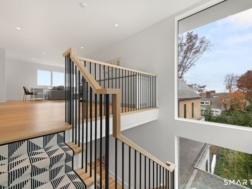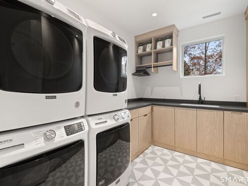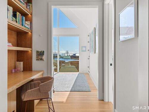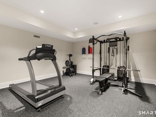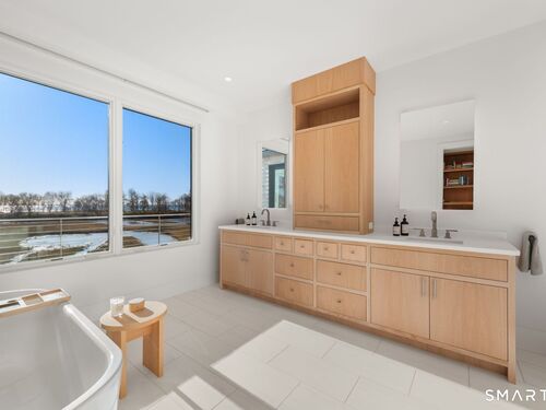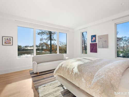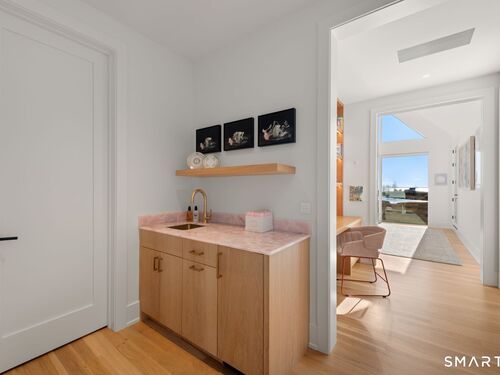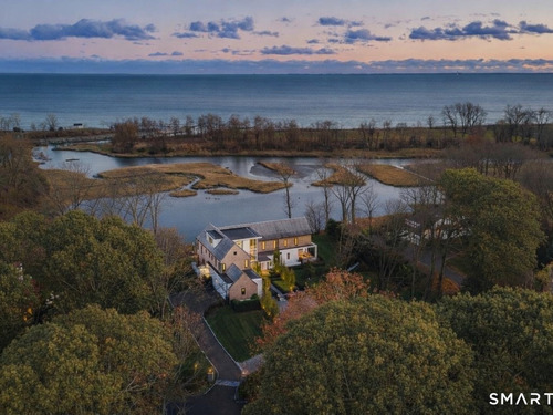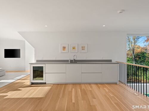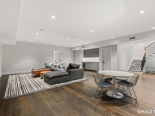 Like-new custom modern home with open-concept living designed for comfort and entertaining. The main level connects the family room, dining room, office, and chef's kitchen featuring Sub-Zero and Wolf appliances, invisible speakers, quartzite countertops, custom cabinetry, two large islands and multiple sliding glass doors leading to an outdoor oasis. The spacious pantry includes custom shelving, an ice maker, and built-in water dispenser. The primary suite features cathedral ceilings, gas fireplace, a private balcony, expansive walk-in closet, and a spa-inspired bath with radiant heated floors, steam shower, soaking tub, and wet bar with refrigerator. The second level also includes four additional en-suite bedrooms and a spacious laundry room with double washer and dryer and custom cabinetry. The third-floor lounge with wet bar and roof deck provides additional entertaining space along with another bedroom and full bath. The finished lower level offers a great room with wet bar, temperature-controlled wine room, gym, media/playroom, and en-suite guest bedroom. Outdoor spaces feature bluestone patios, a heated covered porch with fireplace, built-in grill, heated Gunite pool and spa and heated walkways. Additional highlights include Savant smart home system, Lutron lighting, whole-home audio, radiant heat, multi-zone HVAC, generator, and three-car garage with electric vehicle charger. Walk to Burying Hill Beach, Greens Farms Academy, and Greens Farms train station.