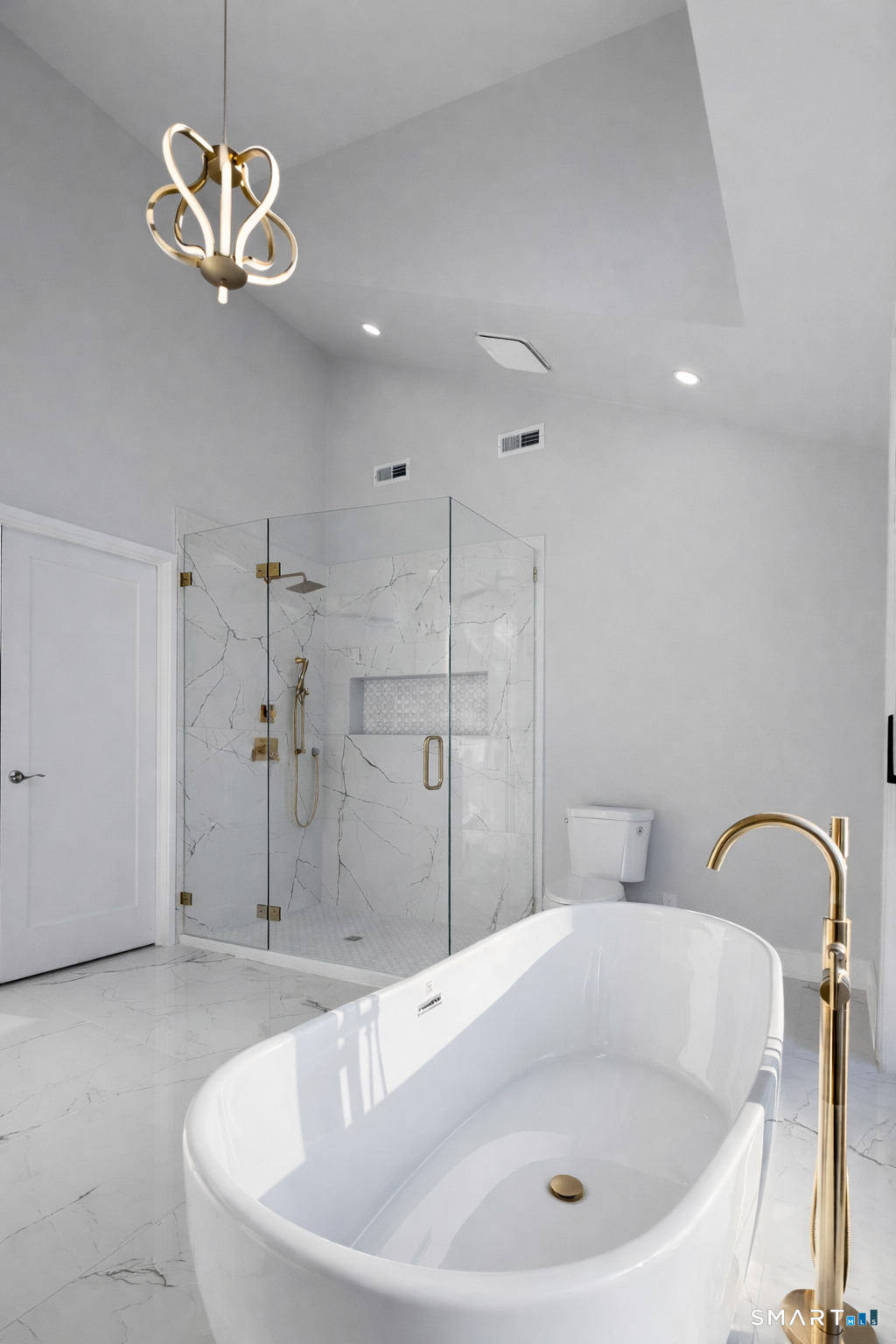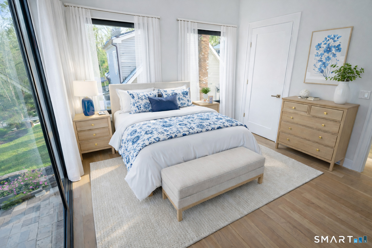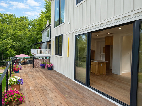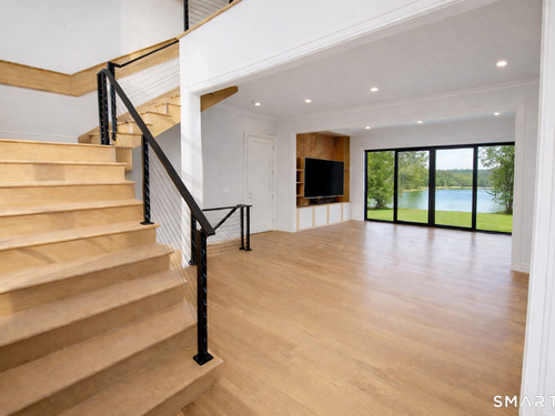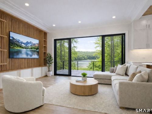 Stunning newly built lakefront residence offering over 3284sqf of thoughtfully designed living space. Ideal fits for own resident or Airbnb.This home features 3 spacious bedrooms, including an extra-large flex room ideal as a 4th bedroom or home office, three full bathrooms, and one half bath.The primary suite is a private retreat with a walk-in closet and separate access to the deck through aluminum sliding door, perfect for enjoying morning coffee with breathtaking lake views. The spa-like primary bathroom features a freestanding soaking tub, oversized shower with elegant gold fixtures, double vanity, heated floors, and tall aluminum windows that flood the space with natural light. Two additional bedrooms offer generous closet space and share a beautifully appointed guest bathroom. The main level boasts a spacious dining area leading into a chef's kitchen equipped with Viking appliances, custom inset cabinetry, white oak island and cabinetry, and a striking coffered ceiling, all overlooking the lake. The kitchen seamlessly connects to the living and family rooms, highlighted by big aluminum sliding door and a custom white oak wall unit with built-in TV. The lower level offers exceptional flexibility with a large playroom and an additional family lounge, both featuring oversized aluminum sliding doors and abundant natural light and access to the patio. Walking distance to a private lake house with its own beach and private dock access. Exceptional lake lifestyle opportunity.