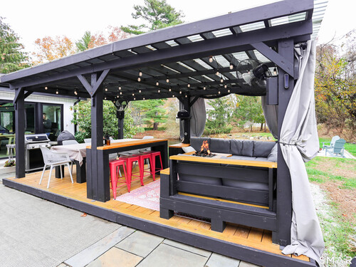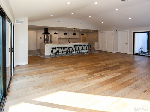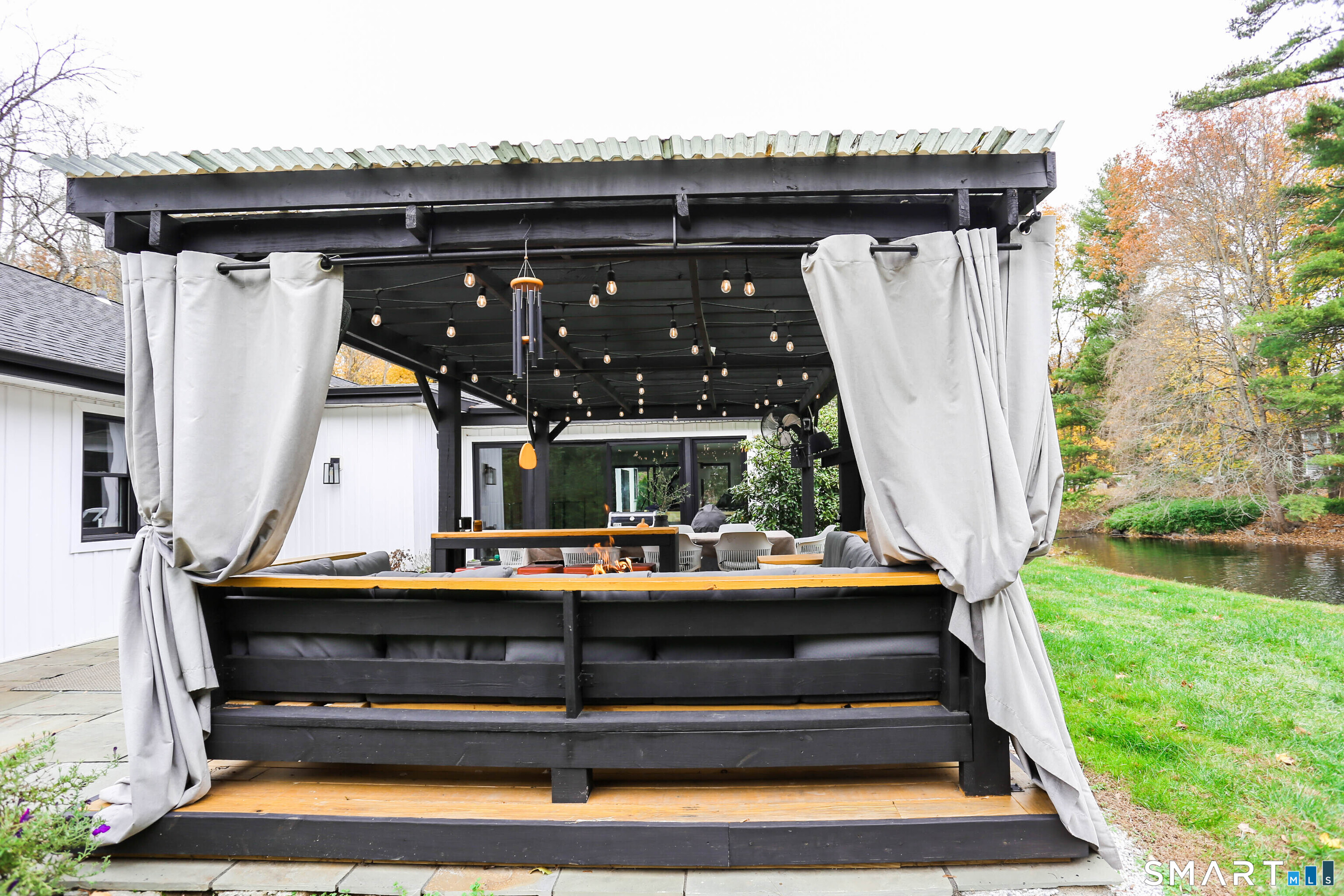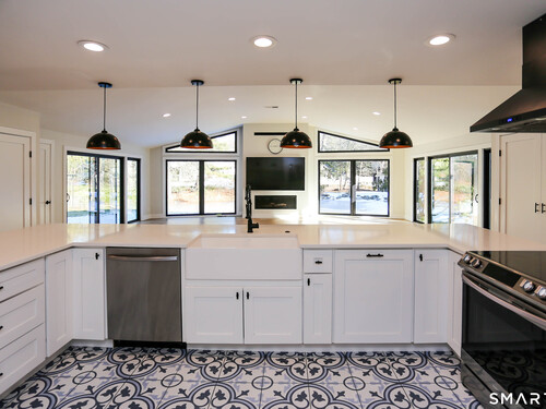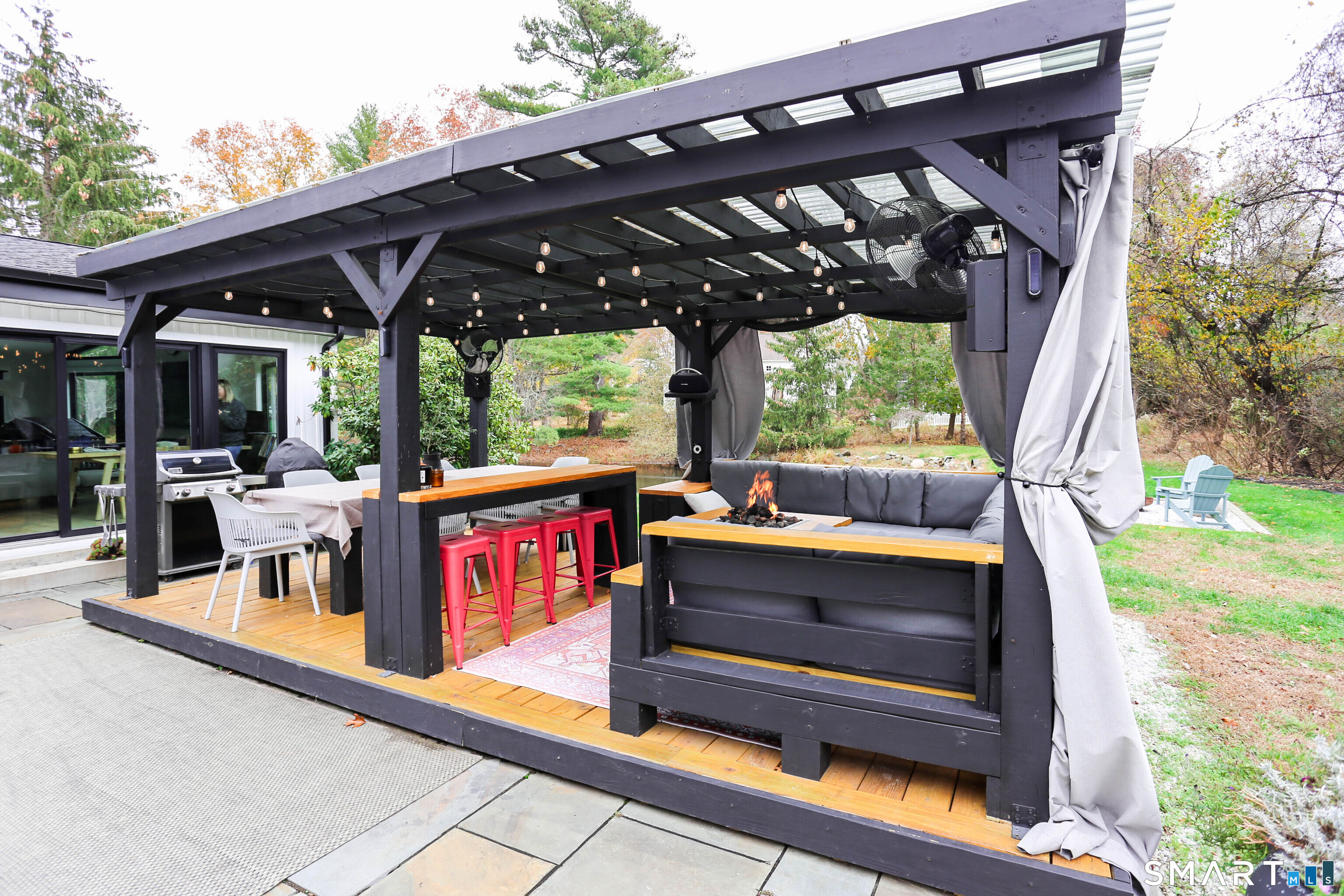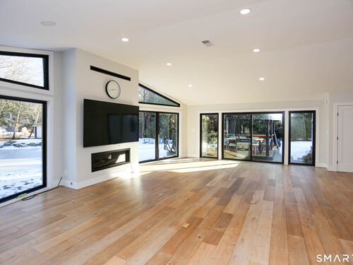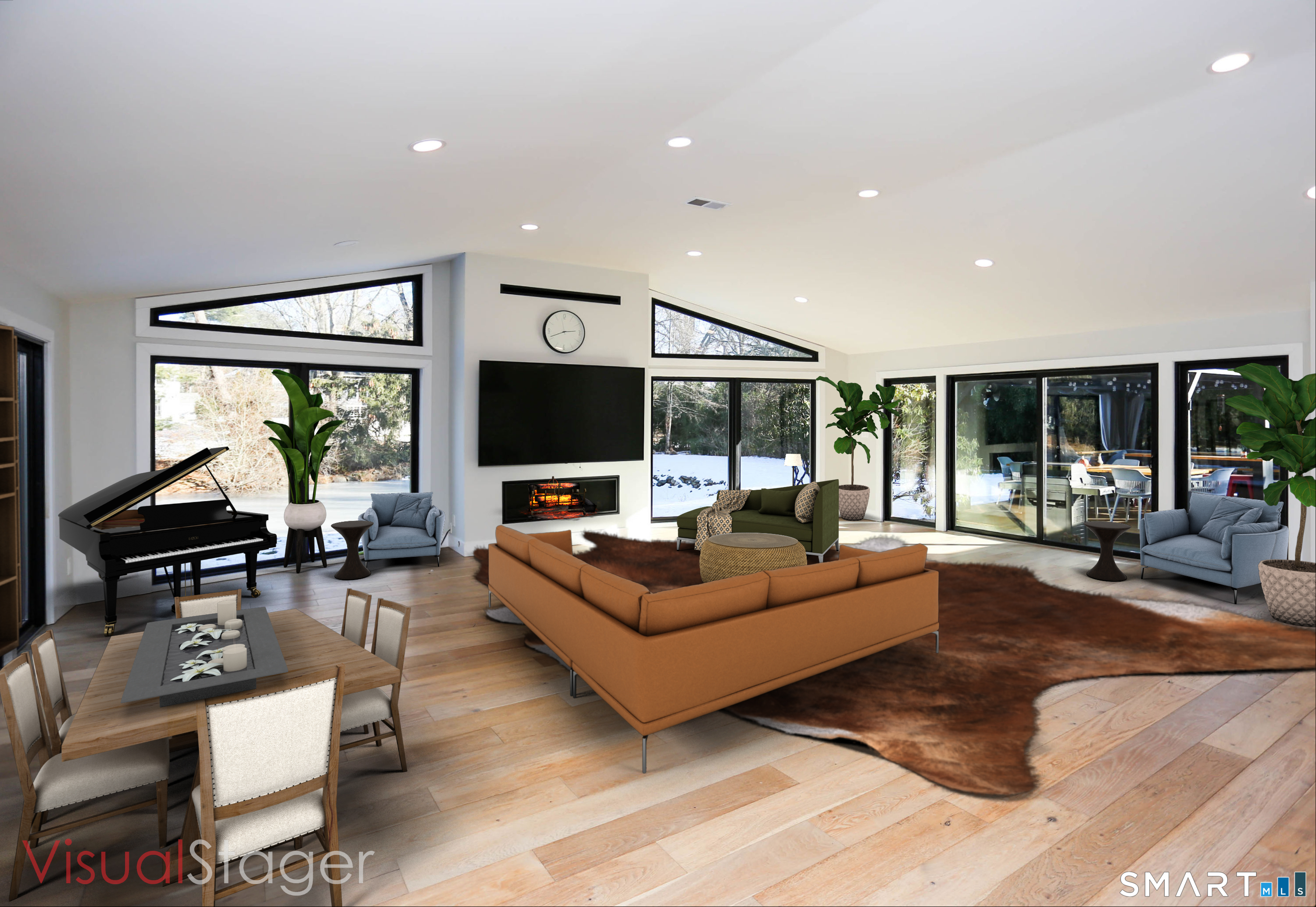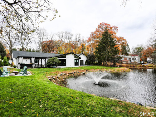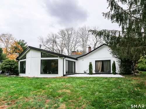 Ideally located in the heart of Westport and close to all schools, this exceptional Contemporary Ranch has been thoughtfully renovated, offering one-level living with effortless sophistication. A welcoming foyer leads to a stunning kitchen, appointed with a generous center island, heated floors, premium appliances and an elegant coffee station with dedicated water supply. The kitchen opens seamlessly into an expansive great room-the architectural centerpiece of the home-featuring a dining area, gas fireplace, cathedral ceilings, and dramatic walls of glass that flood the space with natural light. Designed for year-round entertaining private patio with a built-in heated seating area, overlooking a picturesque aerated pond and tranquil natural surroundings-blurring the line between indoor and outdoor living. Bamboo root barrier is installed. A separate family room with a wood-burning fireplace offers an inviting retreat and flexible space for work, relaxation, or quiet gatherings. The luxurious primary suite includes sliders to the backyard and a sun-filled spa-inspired bath with dual vanities, a deep soaking tub, oversized shower, and serene finishes. Steam room adds a resort-level touch. Three additional bedrooms are generously proportioned and feature custom built-in closets. Private office provides an ideal work-from-home environment. This "google smart home" delivers effortless living with natural gas, city water and sewer, two-car garage with extra storage,3 cars carport.