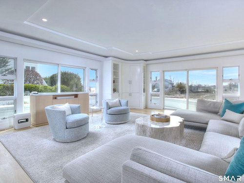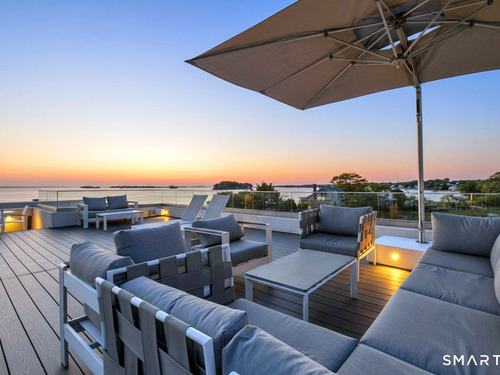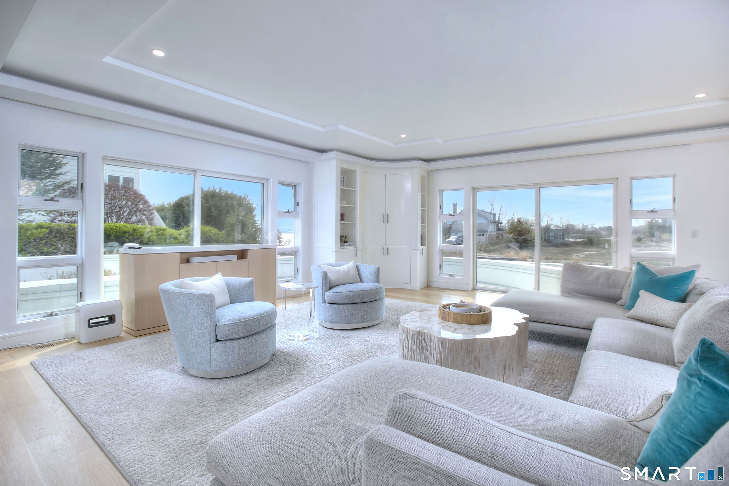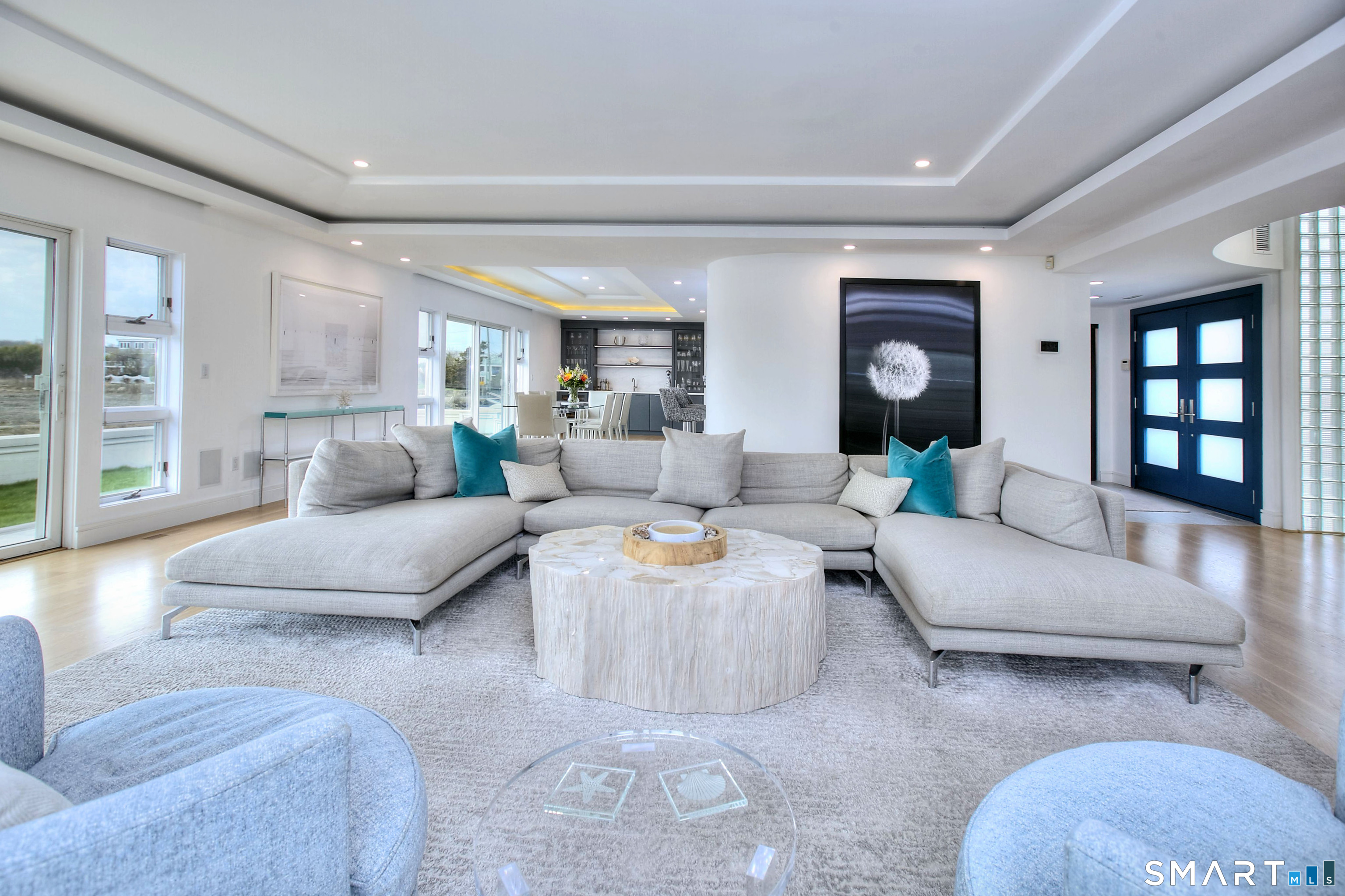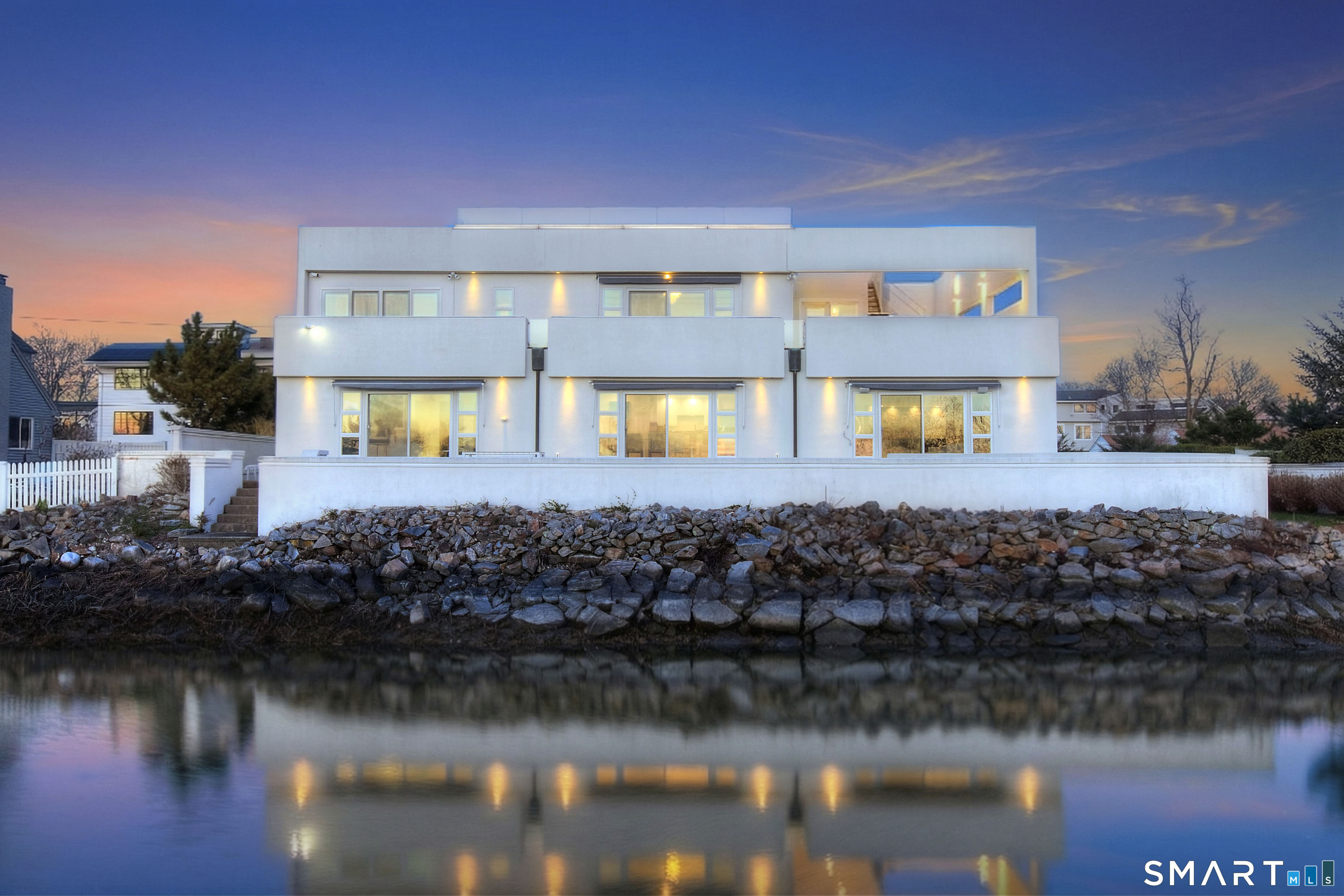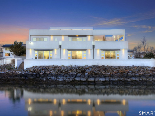 A rare convergence of water, light and privacy, this extraordinary waterfront home offers a lifestyle few ever experience.Perfectly positioned between the open expanse of the Long Island Sound and the quiet rhythm of a private canal, the home is set on a private island just one hour from New York City, yet feels worlds away. Sweeping, unobstructed views stretch endlessly in every direction, with sunsets that transform the sky into a daily work of art. Defined by its clean, modern lines and expansive walls of glass, the home is designed to fully embrace its surroundings.Three spacious decks extend the living experience outdoors, each offering a distinct vantage point from morning light over the water to the stillness of evening reflections along the canal. Inside, newly installed wide-board white oak floors bring warmth and understated sophistication to a home that is entirely move-in ready. Every space is oriented toward water, creating a seamless connection between interior living and the natural beauty beyond. With direct water frontage, a private beach and an ever-changing coastal backdrop, this is more than a home, it is a singular waterfront retreat defined by light, scale and the quiet luxury of complete privacy.