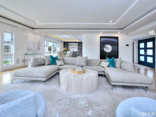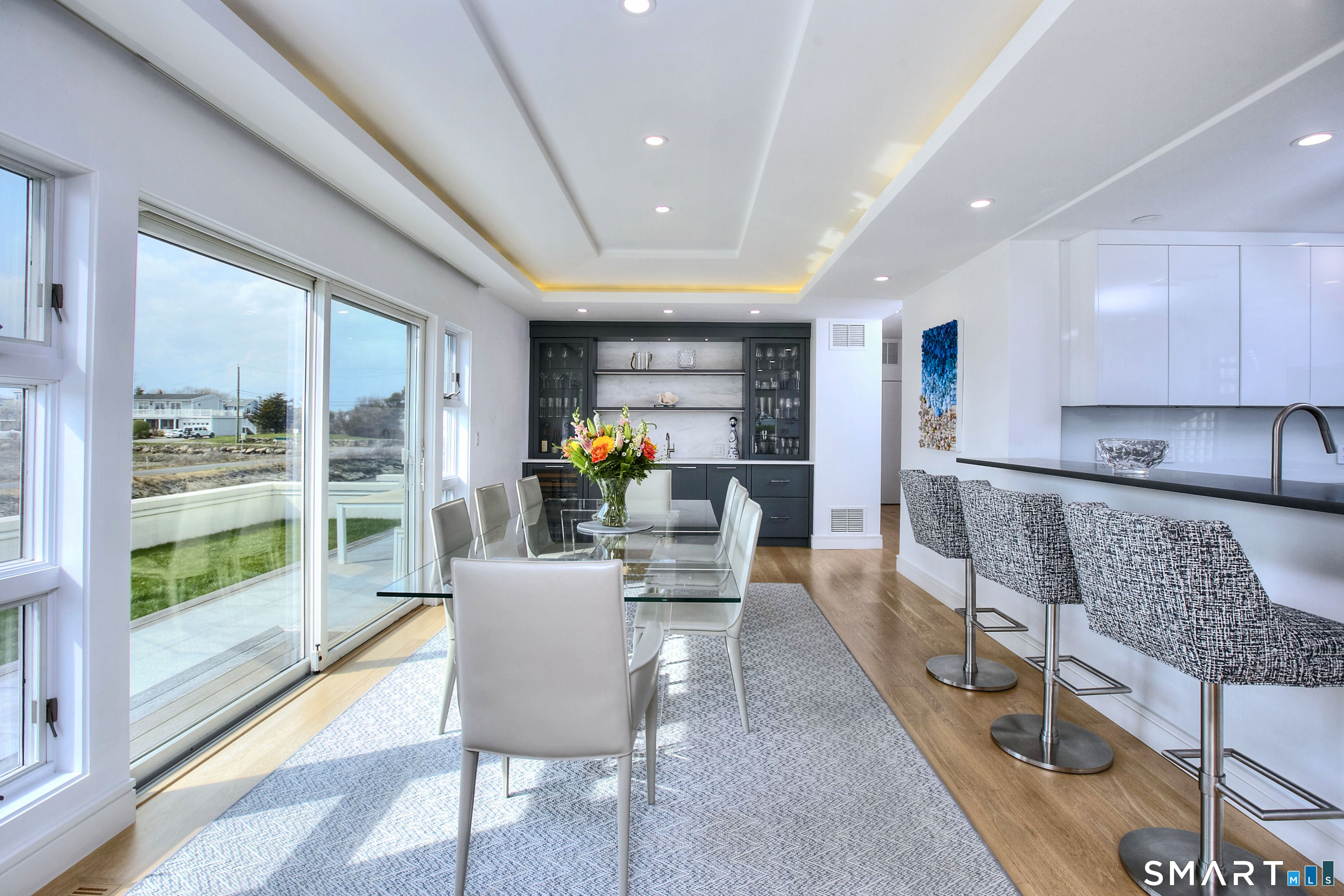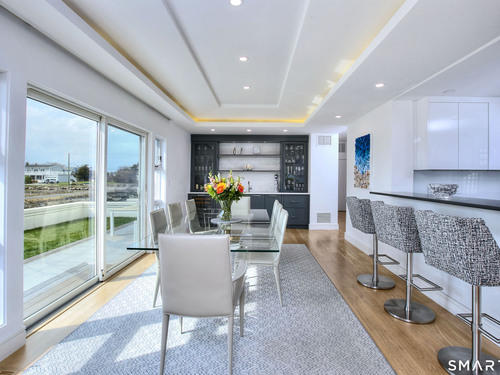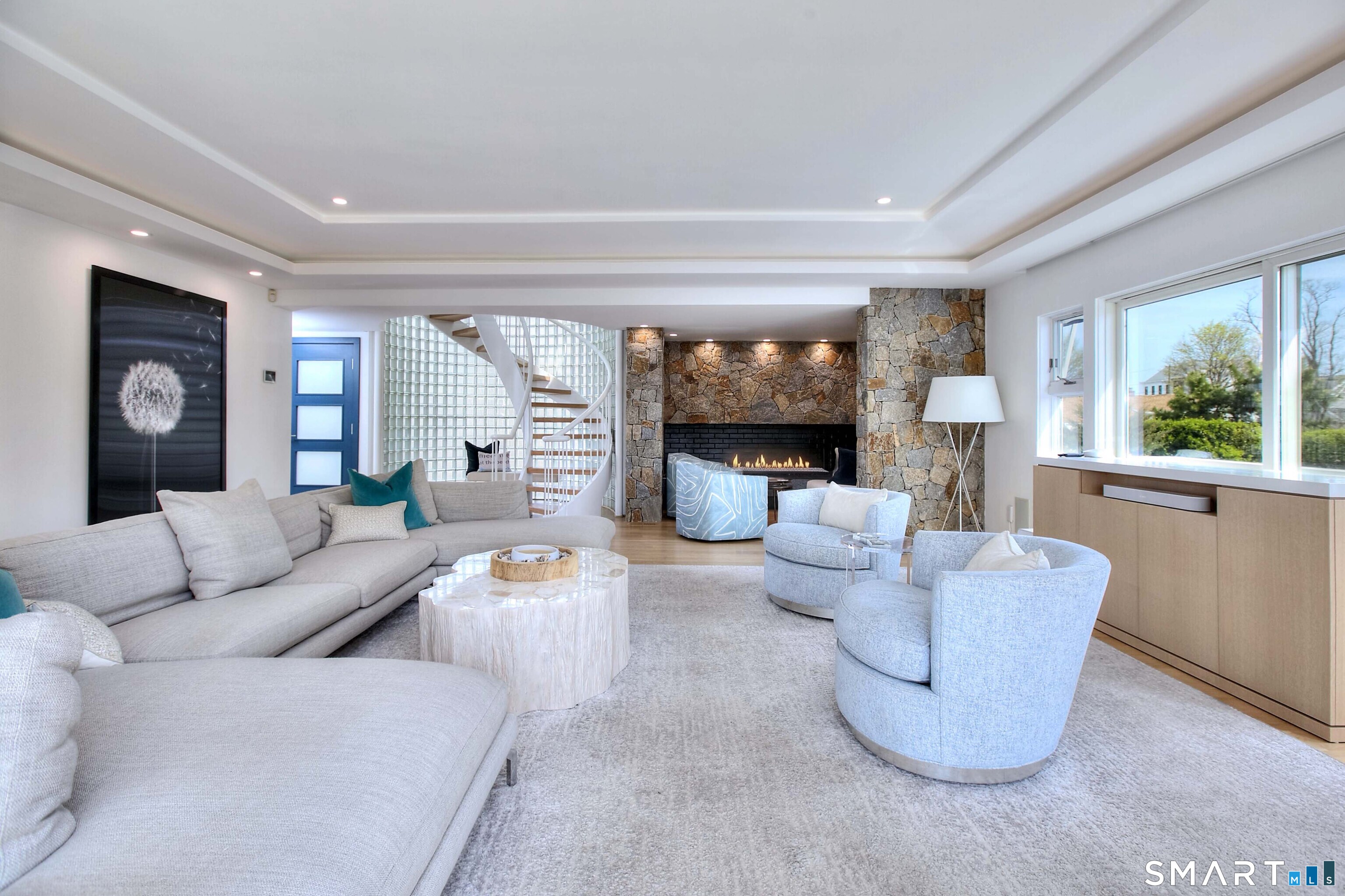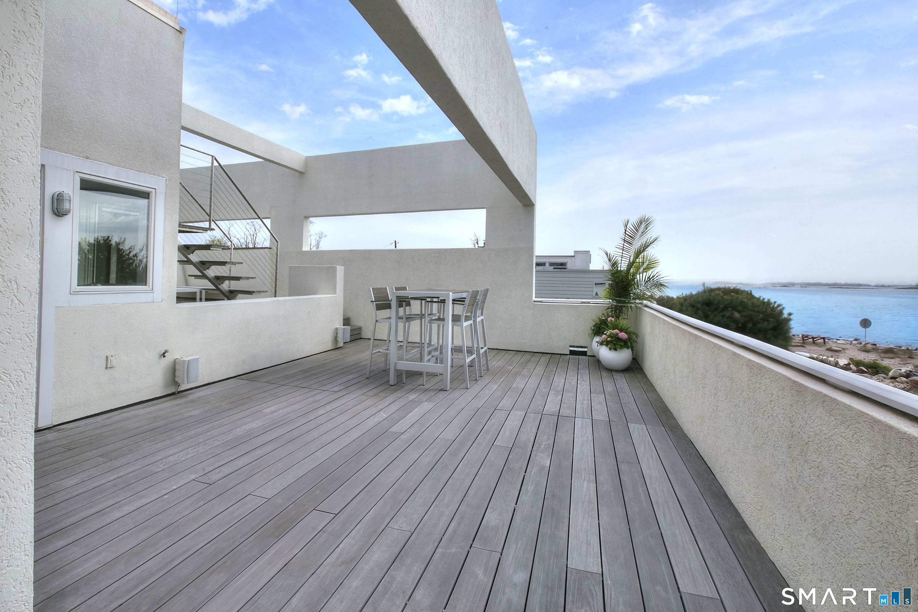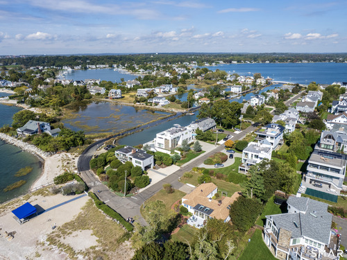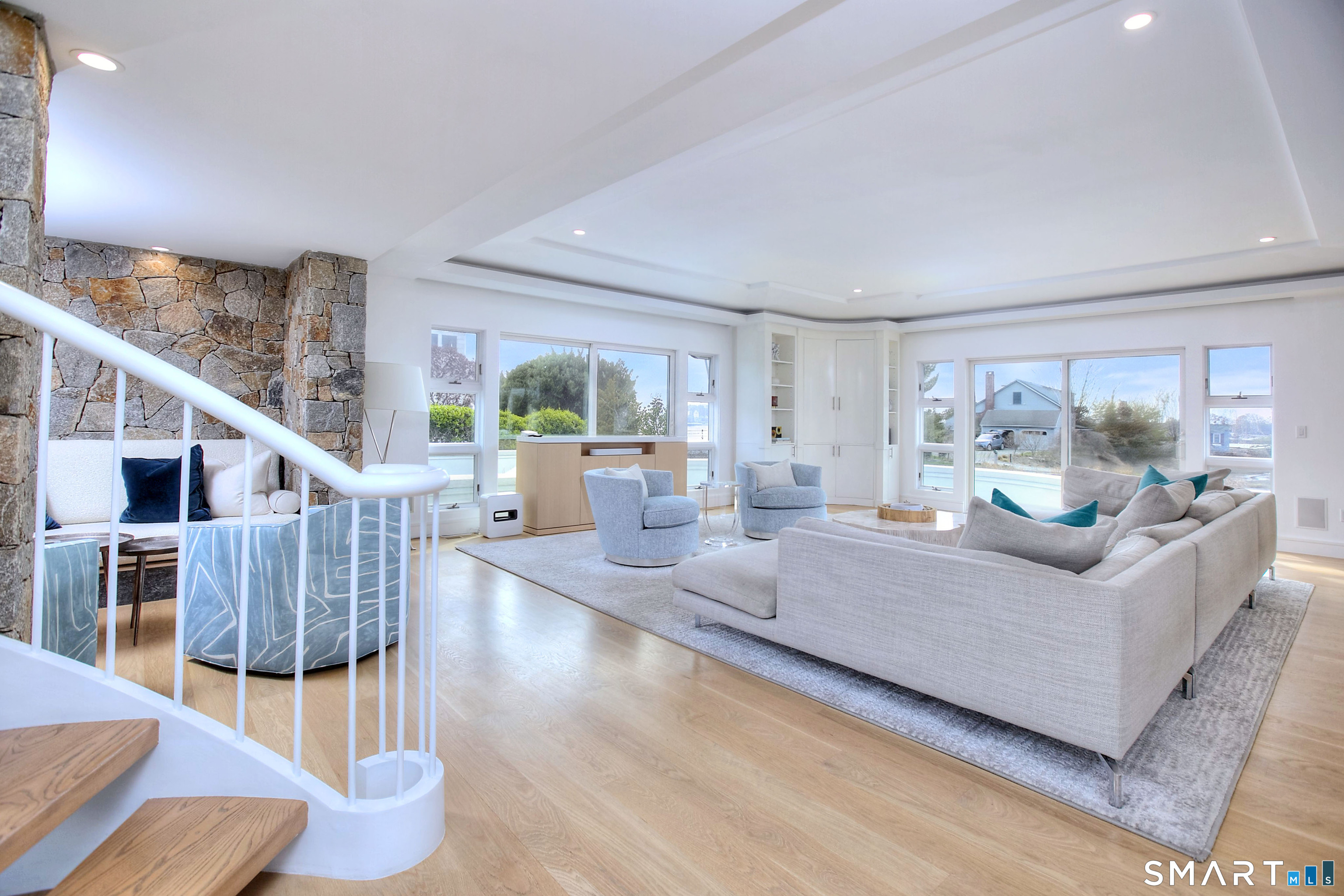 A rare convergence of water, light and privacy, this extraordinary waterfront home offers a lifestyle few ever experience.Perfectly positioned between the open expanse of the Long Island Sound and the quiet rhythm of a private canal, the home is set on a private island just one hour from New York City, yet feels worlds away. Sweeping, unobstructed views stretch endlessly in every direction, with sunsets that transform the sky into a daily work of art. Defined by its clean, modern lines and expansive walls of glass, the home is designed to fully embrace its surroundings.Three spacious decks extend the living experience outdoors, each offering a distinct vantage point from morning light over the water to the stillness of evening reflections along the canal. Inside, newly installed wide-board white oak floors bring warmth and understated sophistication to a home that is entirely move-in ready. Every space is oriented toward water, creating a seamless connection between interior living and the natural beauty beyond. With direct water frontage, a private beach and an ever-changing coastal backdrop, this is more than a home, it is a singular waterfront retreat defined by light, scale and the quiet luxury of complete privacy.