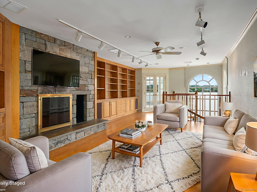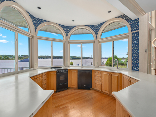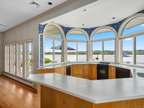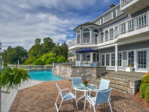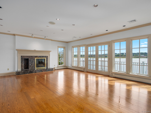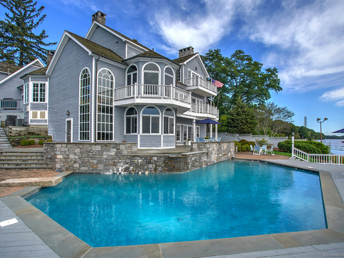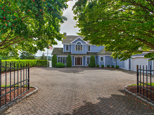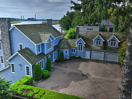 Welcome to this stunning waterfront retreat on the scenic Housatonic River, offering panoramic views, luxury, and comfort. Perfect for relaxing or entertaining, this home features 3 spacious bedrooms, 3.5 baths, and a finish able bonus room above the 2-car garage-ideal for a guest suite or office. Elevator to all three levels provides added convenience. A stone wall and gated entry lead to a paver driveway, setting the stage for what's inside. The main floor boasts a sunlit living room with a fireplace and deck overlooking the pool and river. The kitchen, dining room, family room, solarium, and home office all offer beautiful water views. The lower level is an entertainer's dream: a second kitchen, stone fireplace, sauna, steam room, Jacuzzi, two bedrooms, two full baths, and a gym. Walk out to your private pool, hot tub, and dock for direct river access. The entire upper level is dedicated to the luxurious primary suite with two walk-in closets, a cedar closet, fireplace, private balcony, and a spa-like en-suite bath. Whether hosting summer gatherings, enjoying quiet nights by the fire, or taking in the serene river views from nearly every room, this exceptional home offers the ultimate in waterfront living.