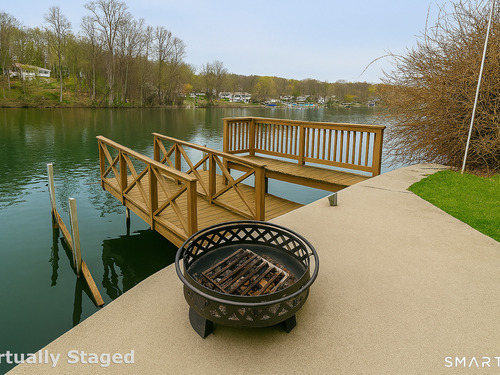 Nestled along the shore of sought after Candlewood Lake, this direct waterfront Contemporary home delivers the ultimate lake living experience! The full-length living room has gleaming hardwood floors, and two sets of sliders that lead to the expansive deck showcasing the wonderful waterfront and loads of natural light. The remodeled kitchen features a center island, ample cabinetry, and an easy flow to the living and dining areas. Offering 3 bedrooms and 2 1/2 baths, this home has the opportunity for the possible addition of a primary bathroom to create an enhanced owner's suite. The finished lower level includes welcoming guest space, perfect for visitors, extended family, or a recreation room with walkout access to the waterfront. A spacious deck, balcony, and patio areas create effortless indoor-outdoor flow for entertaining or relaxing. The expansive, large 2-car garage is ideal for vehicles and lake equipment and provides exciting expansion possibilities for added parking space or a workshop. A private dock makes boating, swimming, and sunset cruises part of your everyday routine. Whether as a year-round residence or a weekend retreat, this property offers a rare chance to enjoy Candlewood Lake at its best!