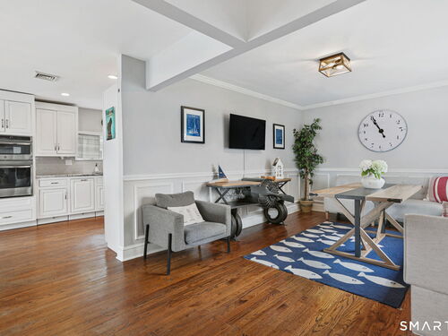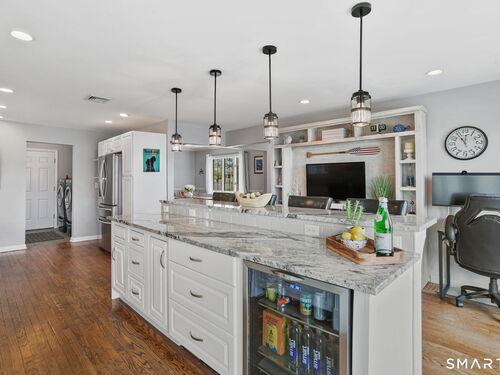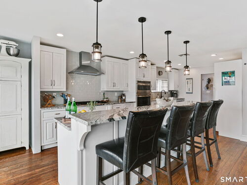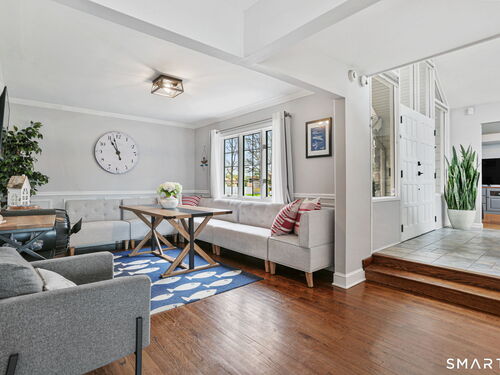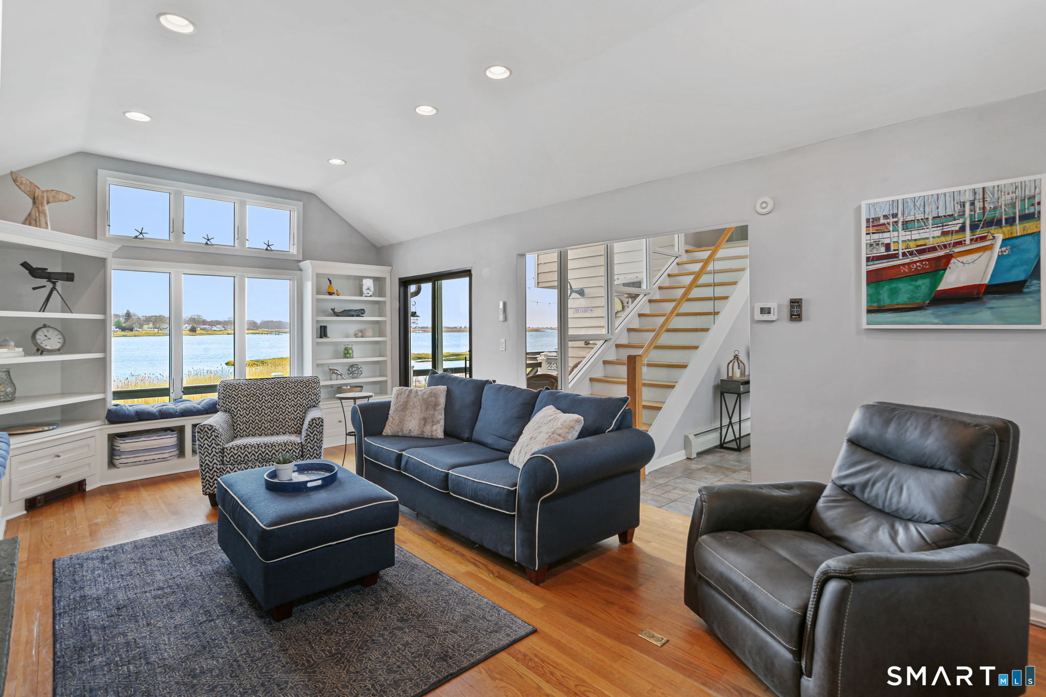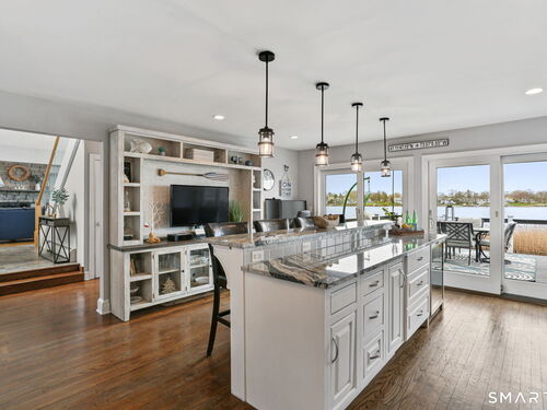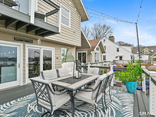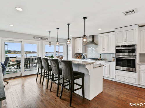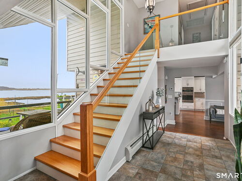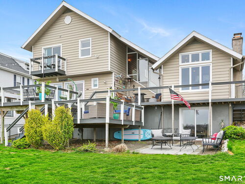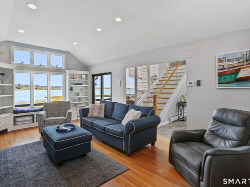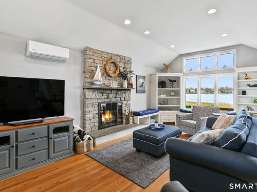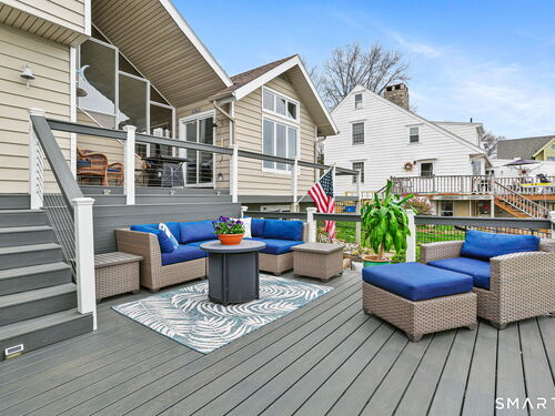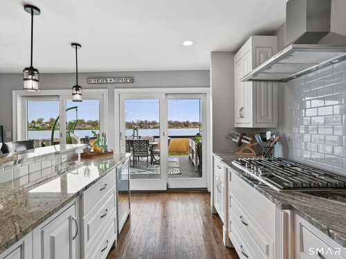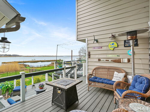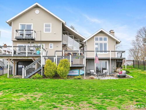 Set at the end of a quiet cul-de-sac with sweeping views of the Housatonic River, this well-maintained home offers both comfort and functionality. Multiple living spaces capture the water views, including a living room with a gas fireplace and remote, dining room, and an updated eat-in kitchen with sliders opening to a multi-level deck overlooking the river. Hardwood floors run throughout the main living areas and bedrooms, with tile flooring in the baths. The layout features a spacious primary suite with a full bath and heated tile floor, three additional bedrooms, three full baths, and a half bath. Added conveniences include remote-controlled upper windows in the living room and two guest bedrooms, as well as skylights and shades in one guest room. A laundry room is ideally located between the kitchen and attached two-car garage. The partially finished basement offers flexible living space, plus a dedicated workshop area with garage-style doors and direct access to the level backyard. Outdoor living is maximized with multiple deck levels and easy access to the yard from both the main and lower levels-all just minutes from dining, shopping, and commuter routes.