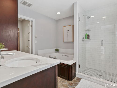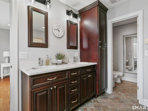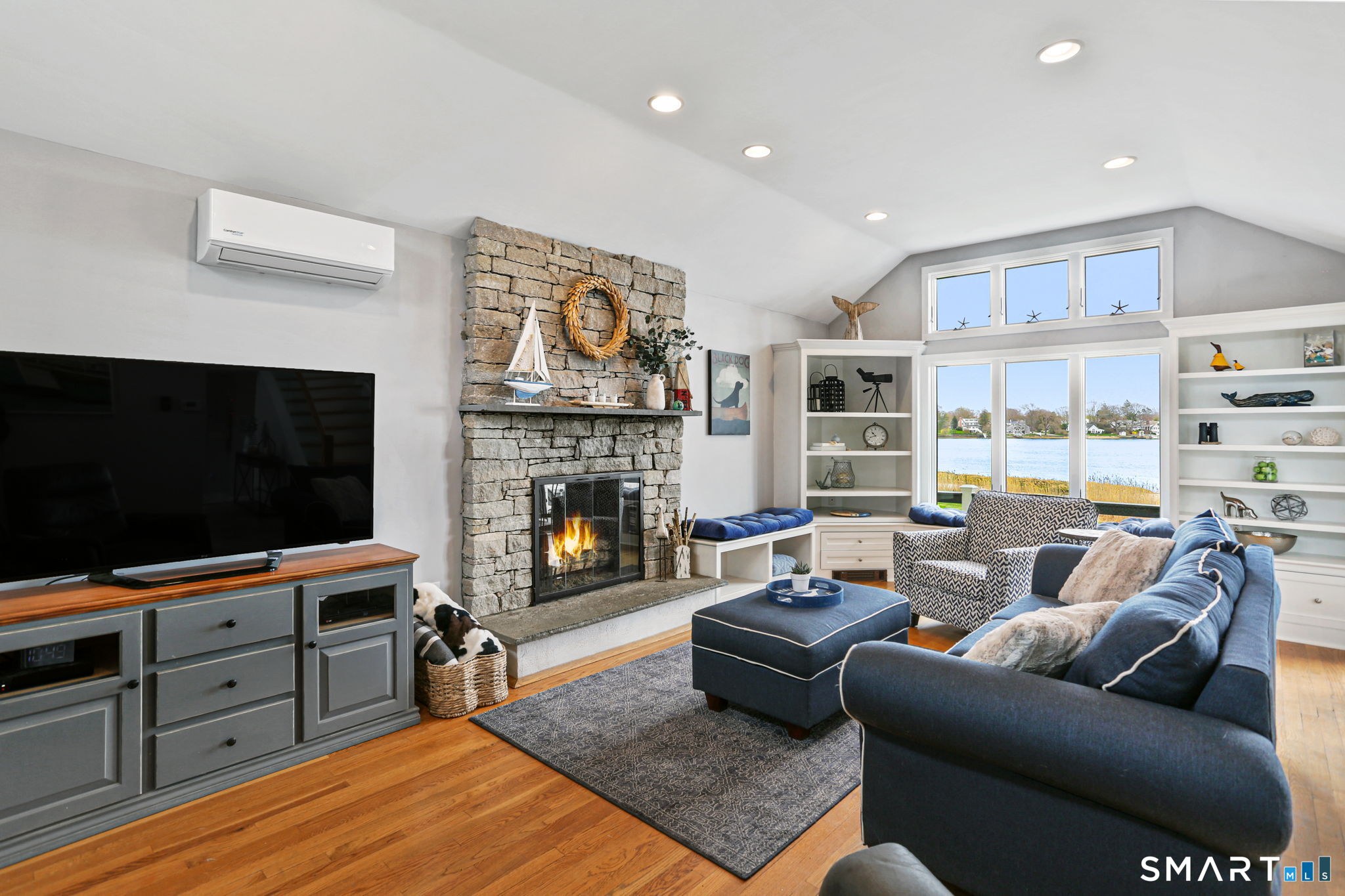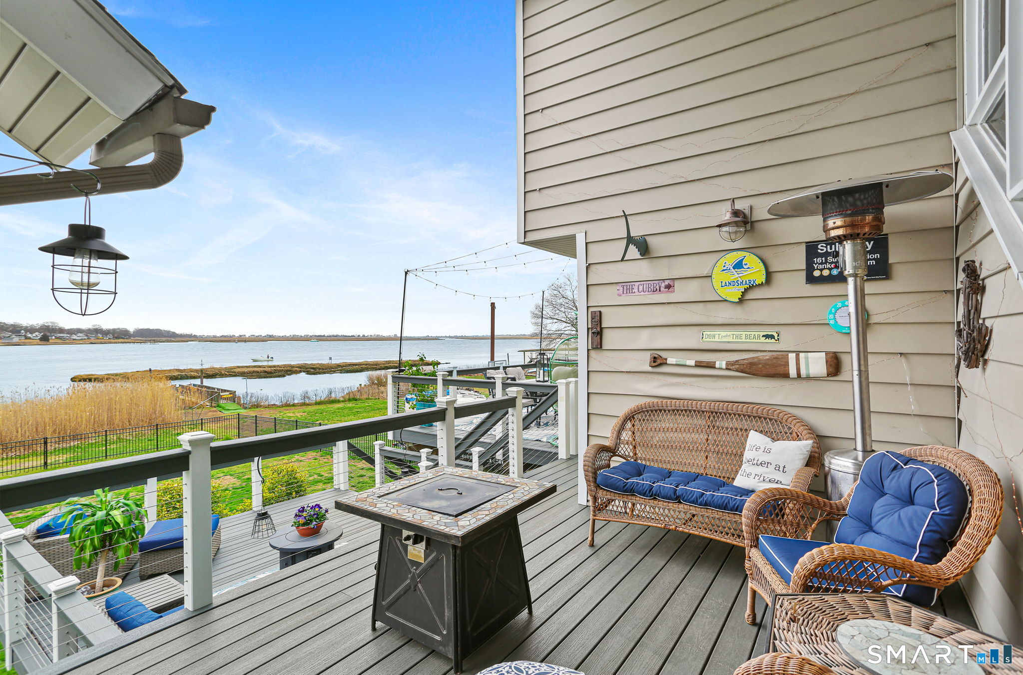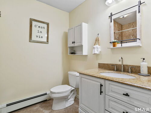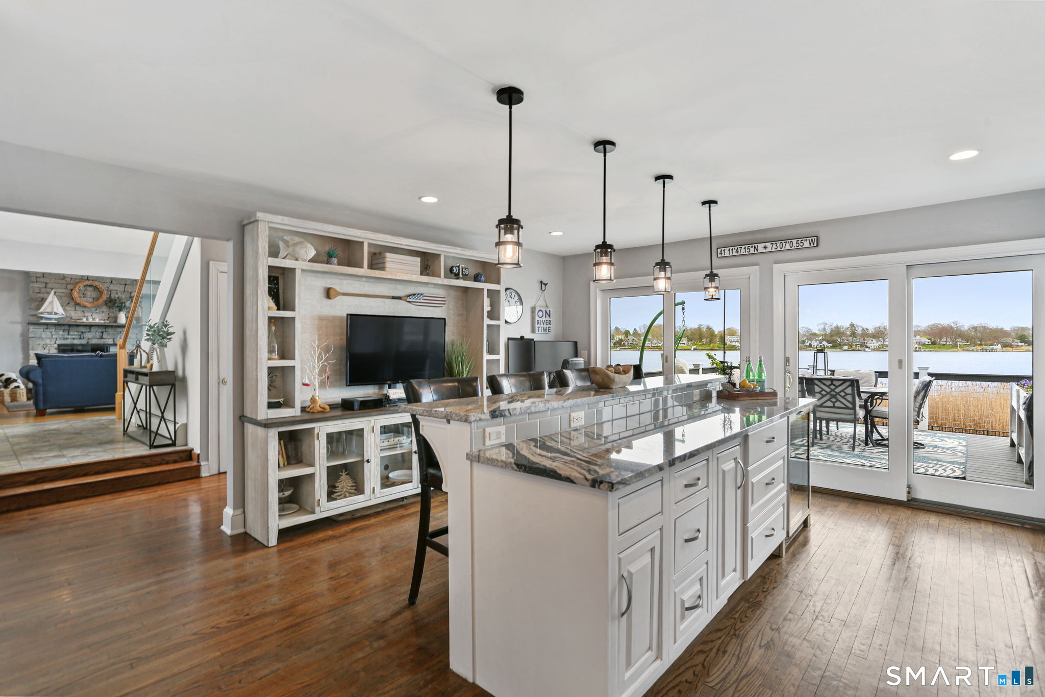 Set at the end of a quiet cul-de-sac with sweeping views of the Housatonic River, this well-maintained home offers both comfort and functionality. Multiple living spaces capture the water views, including a living room with a gas fireplace and remote, dining room, and an updated eat-in kitchen with sliders opening to a multi-level deck overlooking the river. Hardwood floors run throughout the main living areas and bedrooms, with tile flooring in the baths. The layout features a spacious primary suite with a full bath and heated tile floor, three additional bedrooms, three full baths, and a half bath. Added conveniences include remote-controlled upper windows in the living room and two guest bedrooms, as well as skylights and shades in one guest room. A laundry room is ideally located between the kitchen and attached two-car garage. The partially finished basement offers flexible living space, plus a dedicated workshop area with garage-style doors and direct access to the level backyard. Outdoor living is maximized with multiple deck levels and easy access to the yard from both the main and lower levels-all just minutes from dining, shopping, and commuter routes.