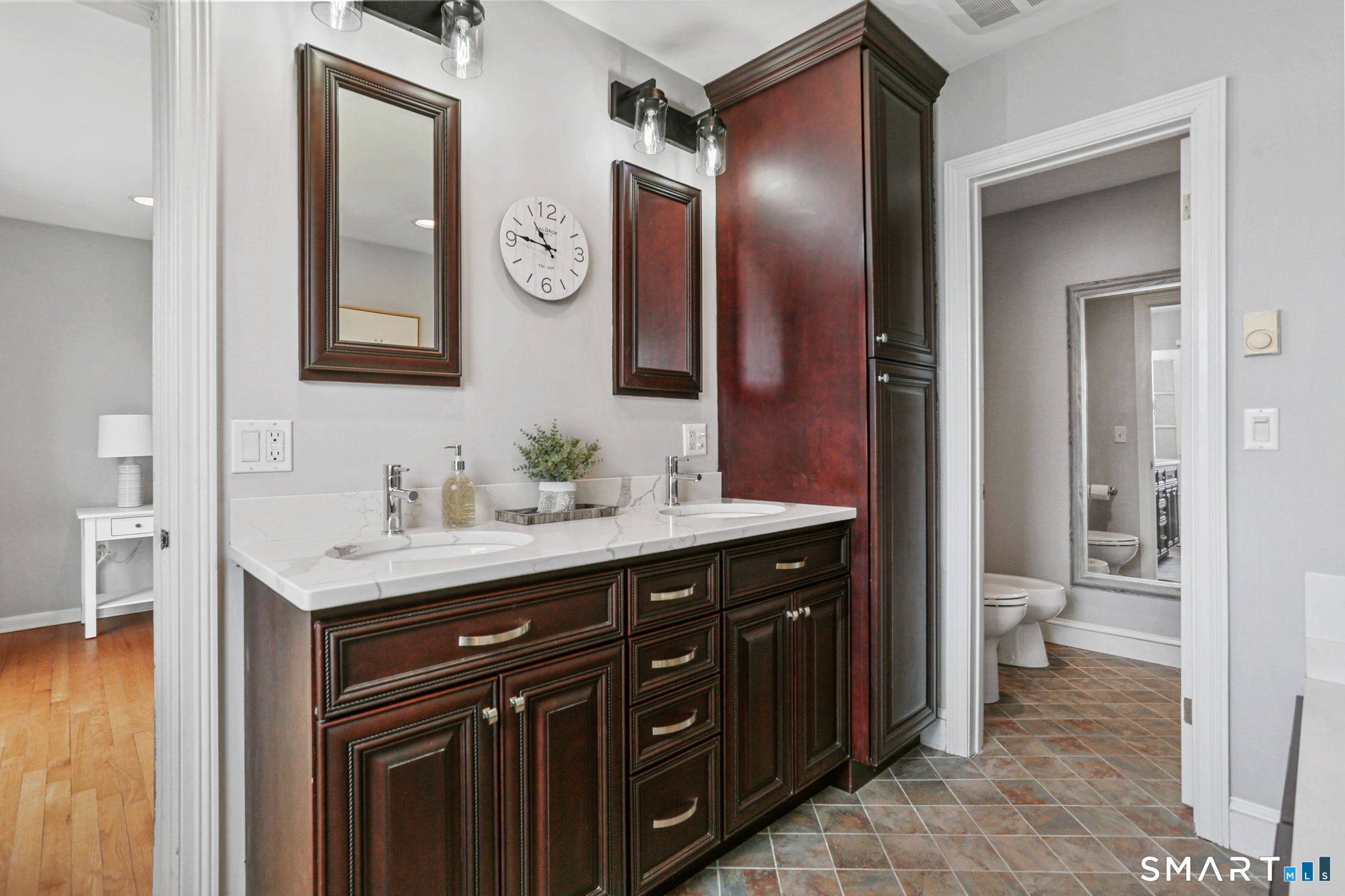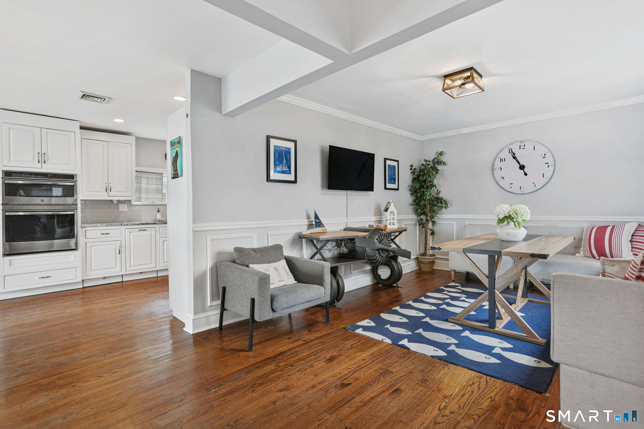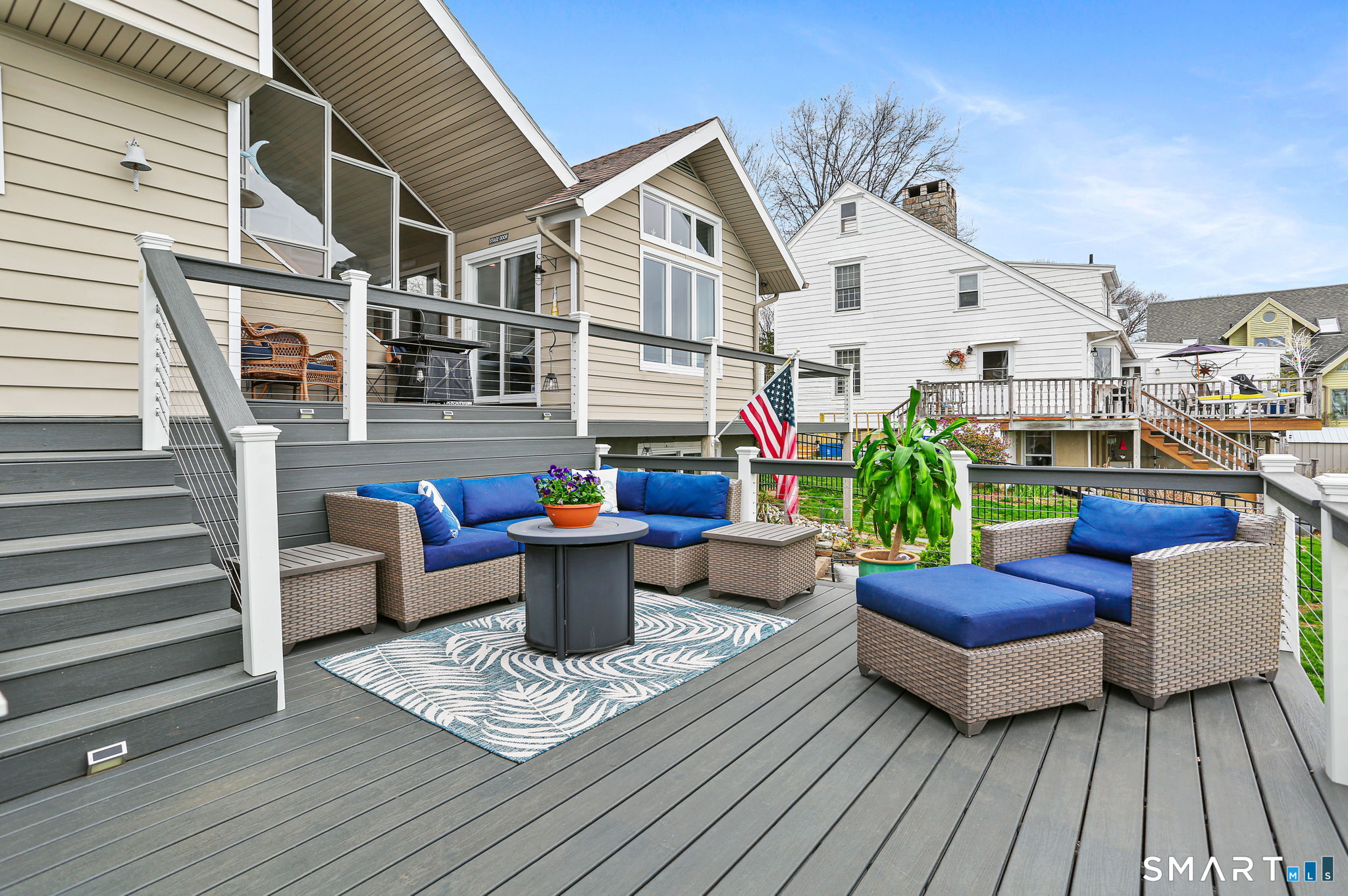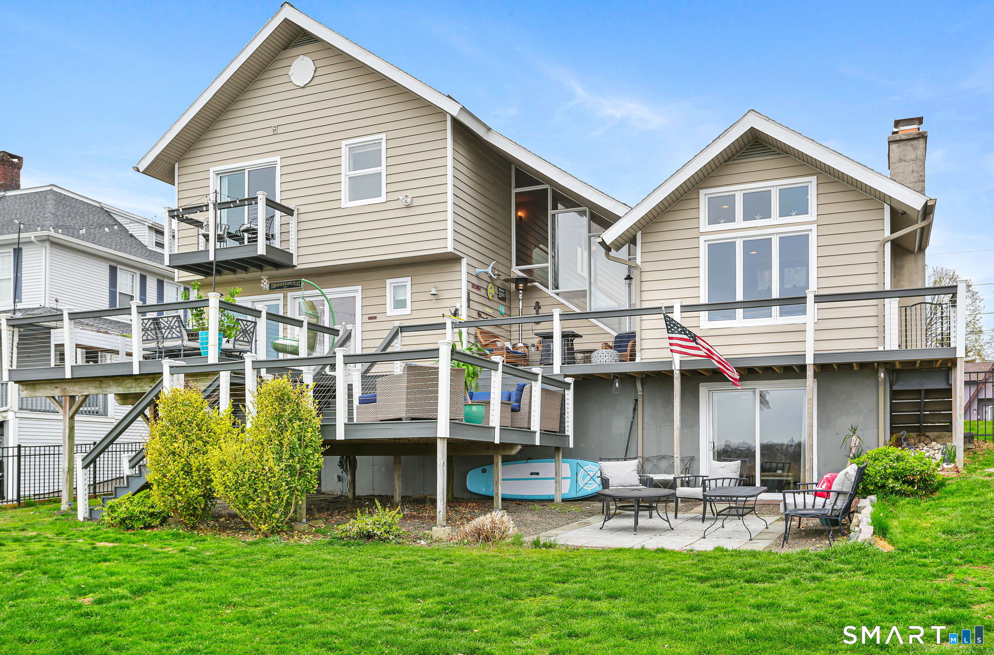 Set at the end of a quiet cul-de-sac with sweeping views of the Housatonic River, this well-maintained home offers both comfort and functionality. Multiple living spaces capture the water views, including a living room with a gas fireplace and remote, dining room, and an updated eat-in kitchen with sliders opening to a multi-level deck overlooking the river. Hardwood floors run throughout the main living areas and bedrooms, with tile flooring in the baths. The layout features a spacious primary suite with a full bath and heated tile floor, three additional bedrooms, three full baths, and a half bath. Added conveniences include remote-controlled upper windows in the living room and two guest bedrooms, as well as skylights and shades in one guest room. A laundry room is ideally located between the kitchen and attached two-car garage. The partially finished basement offers flexible living space, plus a dedicated workshop area with garage-style doors and direct access to the level backyard. Outdoor living is maximized with multiple deck levels and easy access to the yard from both the main and lower levels-all just minutes from dining, shopping, and commuter routes.