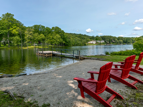 A Unique Opportunity! Sail Harbour Club, on Candlewood Lake, showcases this Rare Waterfront Find! Completely level property w/west exposure,195 ft frontage, dock, beach, IG pool & spa, on a private 1.44 acs. The stunning open plan exudes a casual elegance.The vaulted great room has a floor to ceiling stone fireplace, hand hewn beams, new hardwoods & amazing views from walls of windows, overlooking an idyllic yard. The expansive kitchen w/a large island bar overlooks both dining room & kitchen eat-in area surrounded by windows & sliders, bringing the outdoors in. Granite counters tops, white wood cabinets, stainless appliances & new hardwood floors, ideal for gathering. Sliders lead to the bluestone, canopied patio & lush lawn to lake with new dock & lakeside beach. The main level owner's suite offers a private oasis, grand bath with double sinks, granite counters, frameless glass shower & even a bidet.Two oversized bedrooms with newly renovated full baths flank the vaulted loft/office, all with dynamic lake views. wide plank floors, tiled baths, abundant closet space & custom built-ins with quality details. A 23 x 24 bedroom over the garage serves as an ideal guest space or bunk room. Another full bath, in the main level mudroom offers easy access from yard & pool. The lower level is ready for media/game room & is equipped with a maids quarters/office. Extensive custom renovations make this a true lake find! SHC amenities include:tennis, pickleball, clubhouse, beach & marina!