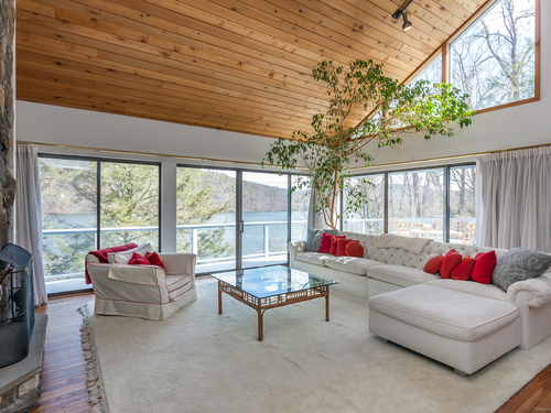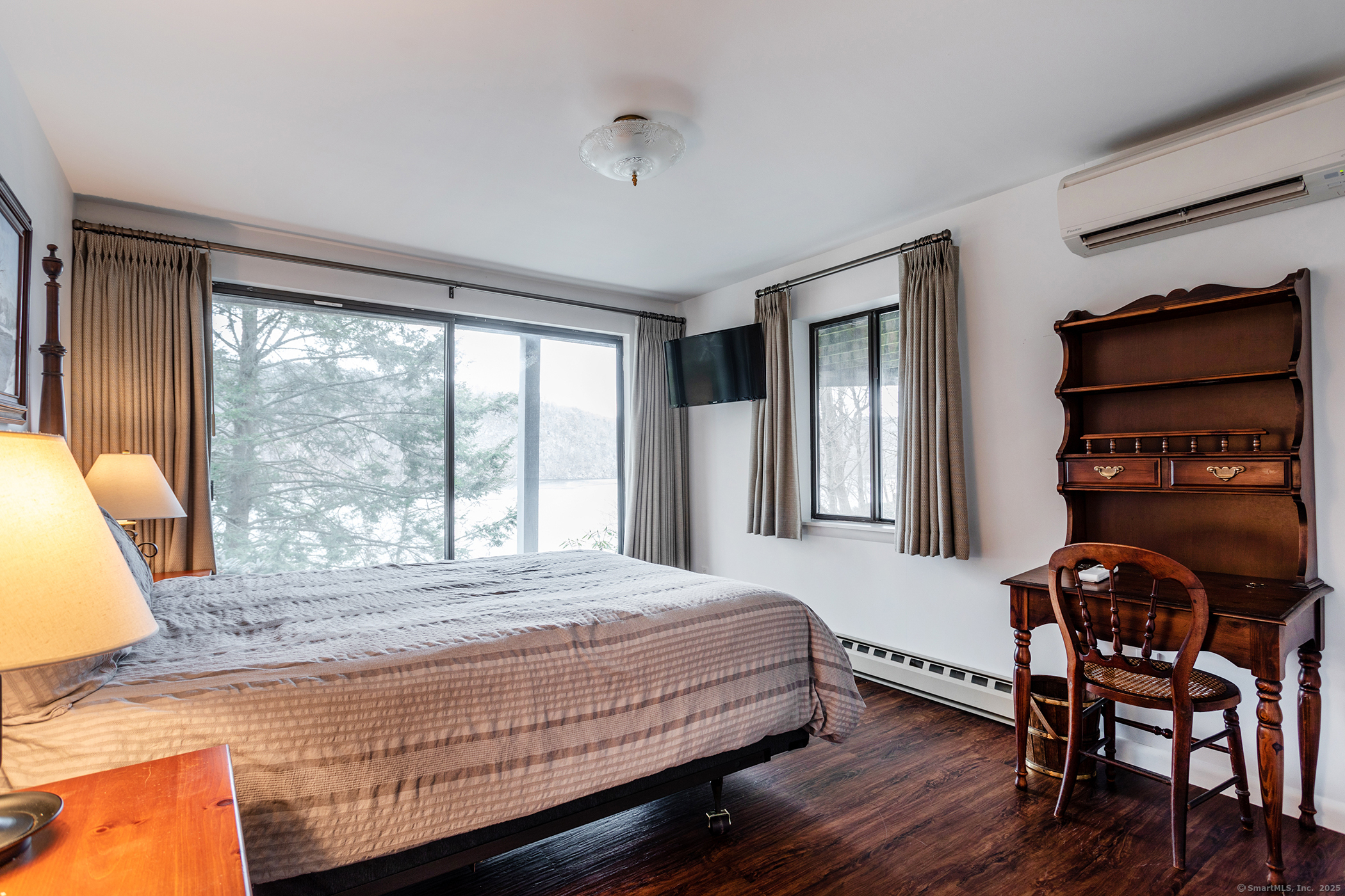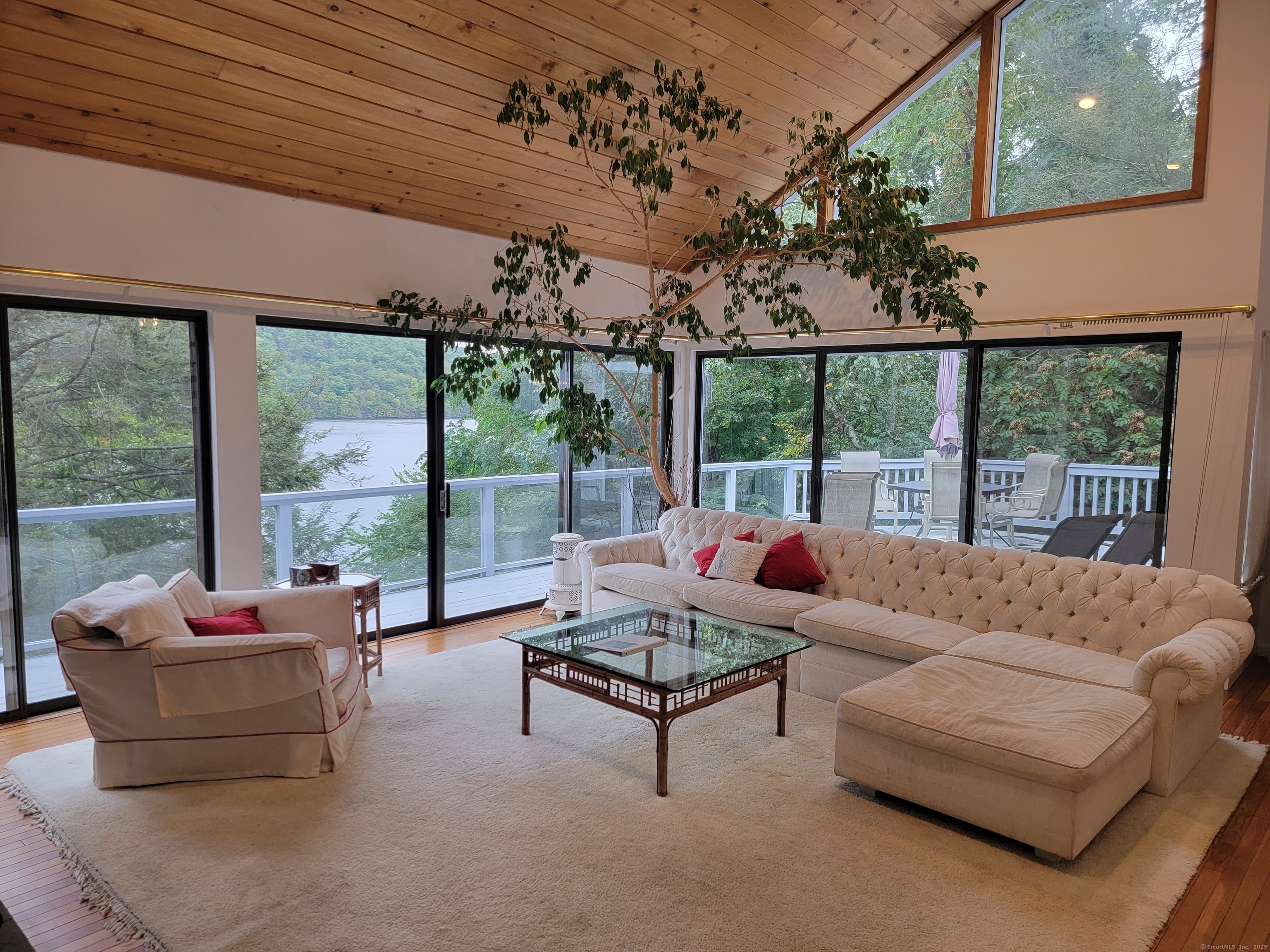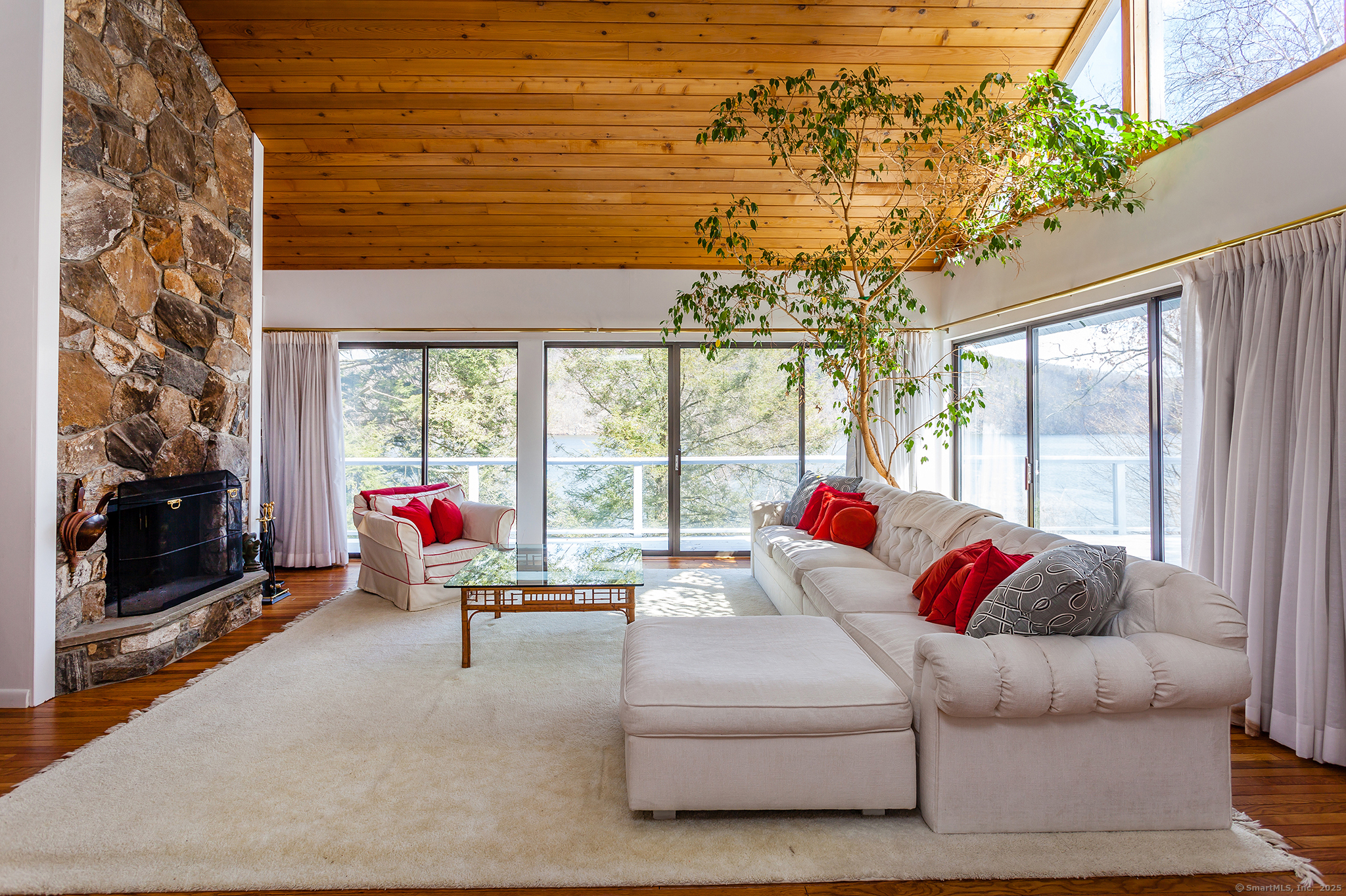 DIRECT WATERFRONT on Candlewood Lake - DEER RUN SHORES, a private Lake community. Water's Edge PRIVATE DOCK. NOTE-this is a double lot! Community Amenities include POOL, clubhouse and beach boat & guest parking. Contemporary Light and Air w/open floor plan. Great Room/Dining Area with 2-story stone fireplace, built ins & walls of sliders to oversized entertaining wrap around Deck. YEAR ROUND VIEWS of Water & Mountain Vistas. Spacious Main Level Primary Suite w/fireplace & slider to Deck. Totally updated Bath. Fantastic renovation to Kitchen (granite/stainless). Main level Laundry & Half Bath. Spiral staircase to upper-level loft OFFICE. Spiral staircase to lower level hosts 3 Bedrooms and 2 full BA w/walk out access to yard. Split systems (AC) in the main living area and all bedrooms(5 total). Breezeway from Kitchen to 2 Car Detached Garage. 2 M to quaint town center, Community Pickle Ball/Tennis, jogging path, basketball court, ball field, Pavilion & Beach on Candlewood Lake. 45M to White Plains/60M to Manhattan. 20M to Metro North Train Station. Extreme Southern Sherman for easy access to NYC. A PERFECT WEEKEND OR FULL TIME GETAWAY!