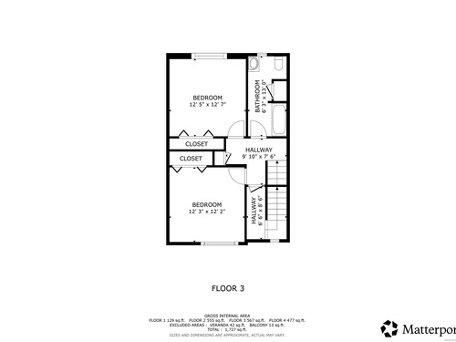 Primary Br Suite (Upper Level)Full Bath, Stall Shower, Wall/Wall Carpet