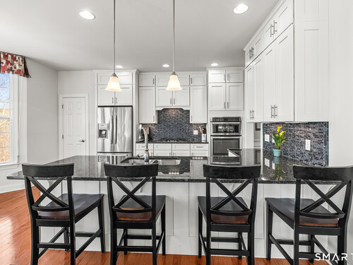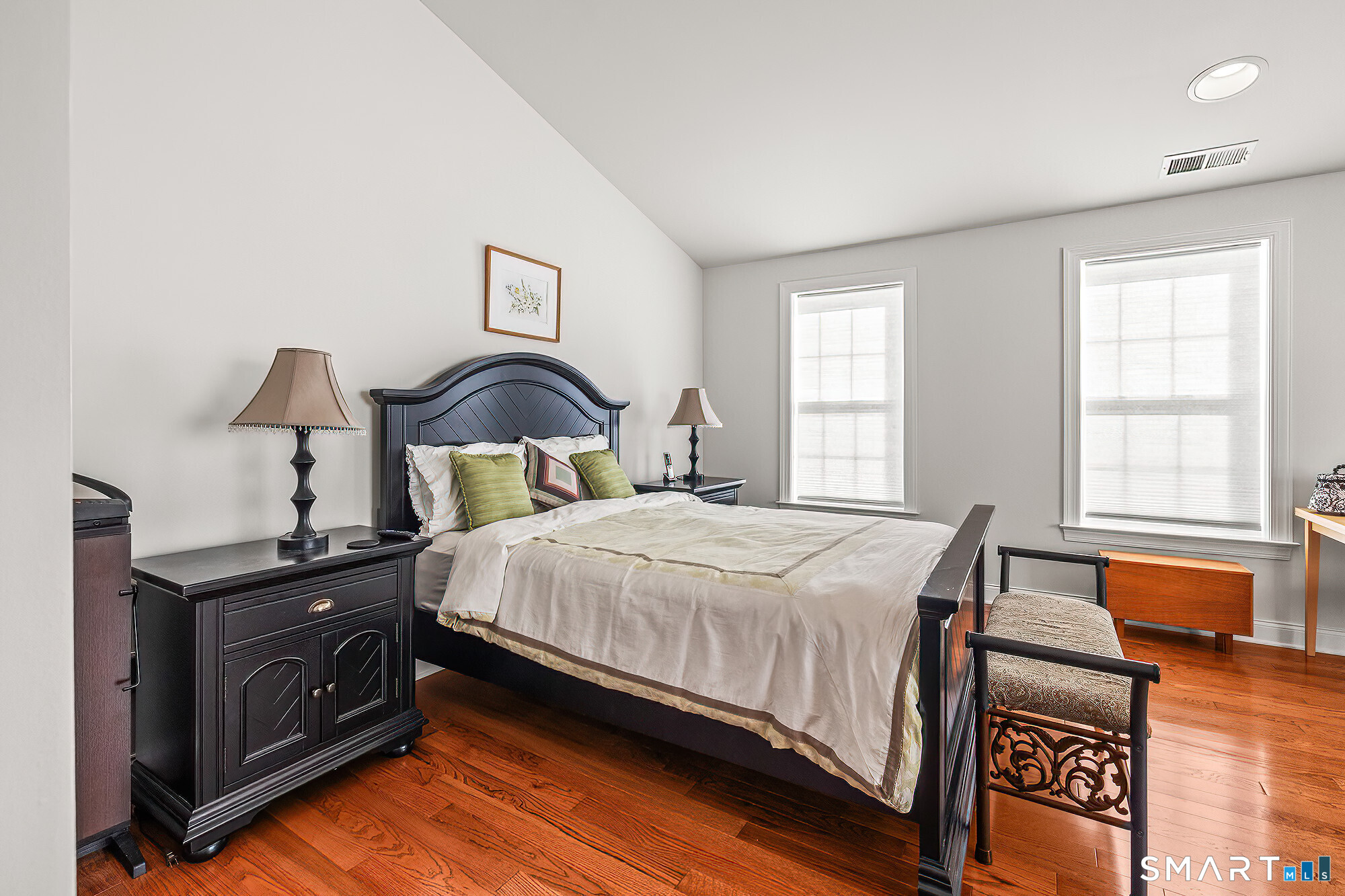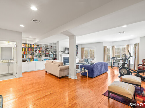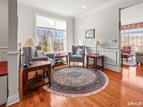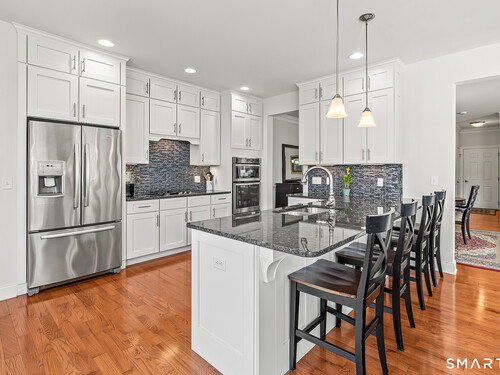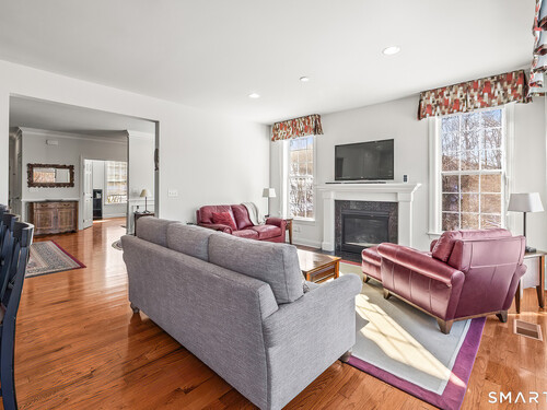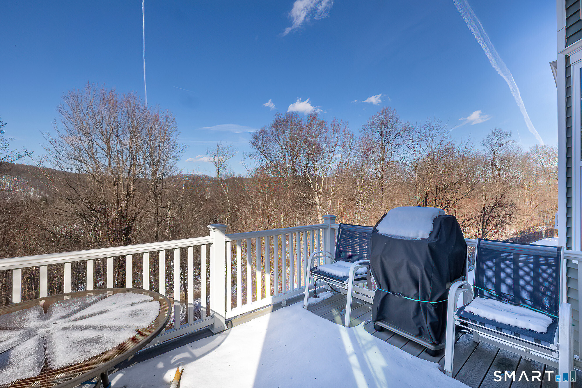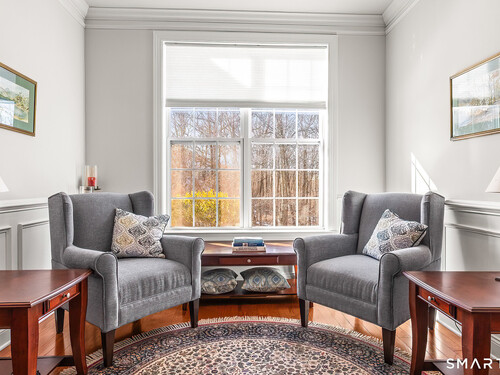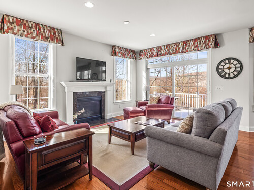 Experience the pinnacle of Toll Brothers craftsmanship in this meticulously maintained colonial-style condo. Designed for both grand entertaining and intimate daily life, the main level features a stunning Great Room with a gas fireplace located directly off the designer kitchen-creating a warm, expansive heart for the home. Adjacent to this hub, the formal living and dining areas flow together effortlessly, offering a continuous sense of space and light. For those seeking flexibility, the main floor also hosts a versatile office with a closet and nearby full bath, perfect for a professional workspace or guest retreat. The luxury extends to the fully finished walk-out lower level, a massive recreation room featuring a second gas fireplace, a full bath, and elegant French doors that lead out to a private patio. Upstairs, the grand primary suite serves as a true sanctuary, boasting double walk-in closets and a spa-like bath with a soaking tub. Two additional bedrooms are connected by a convenient Jack-and-Jill bath, with the laundry room centrally located for ease. Finish your day on the oversized deck, taking in breathtaking westerly sunset views. Residents enjoy world-class Rivington amenities and a prime location near I-84, Trader Joe's, and Starbucks. This is an elevated way of life where every detail has been considered. Cameras on premises.