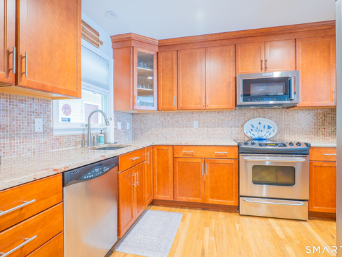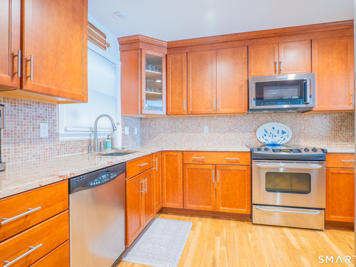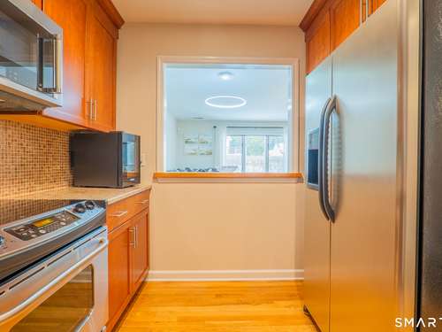 Just imagine living within 10 minutes of everything you need! Welcome to 10 Prospect Avenue Unit #8, a beautifully updated townhome ideally situated in one of Norwalk's most convenient and connected locations. This 2-bedroom, 1.5-bath residence offers 1,003 square feet of comfortable, modern living with a smart, functional layout. The home features a stylish contemporary kitchen with granite countertops. Recent capital improvements include a new HVAC system (May 2025), a new Honeywell thermostat (November 2025), professional interior painting (January 2021), and newly installed recessed bucket lighting in the hallway and kitchen. The unit includes covered garage parking directly below with two assigned parking spaces, a rare and valuable feature! Ideally located close to both I-95 and the Merritt Parkway, commuting is effortless, with easy access to the South Norwalk train station and the SoNo River Rail Trail for recreation and outdoor enjoyment. A playground located directly across the street adds to the neighborhood appeal. Just minutes from the mall, shopping, dining, Calf Pasture Beach and the vibrant SoNo district, this move-in-ready townhome offers the perfect blend of modern updates, convenience, and lifestyle. Welcome Home!
