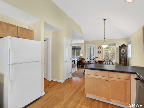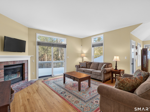 Beautiful 2 Bedroom, 2.5 Bath Townhouse nestled at the end of a quiet cul-de-sac . Enjoy the view of the lush woods and the Pootatuck River right from your spacious deck. The main level of this home features a bright and open floor plan with hardwood floors. The living room has a gas fireplace & glass sliders that lead to the deck. The kitchen is light & bright with plenty of workspace & a small bonus room currently used as a home office. The dining room is spacious & features an additional door out to the deck. Upstairs, you'll find two bedrooms and two full baths, large closets & large windows that let the light flow through. The lower level includes a laundry area, additional storage space, walk out access and a one car garage. Enjoy the benefits of city water and natural gas & newer air conditioning unit for efficient heating & cooling. Great location with easy access to nearby shops, dining, and highways. Don't miss your chance to make this beautiful townhouse home!