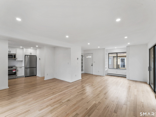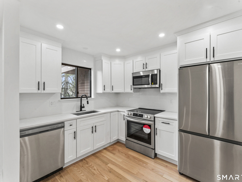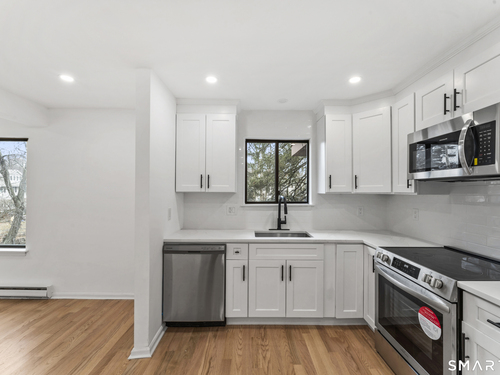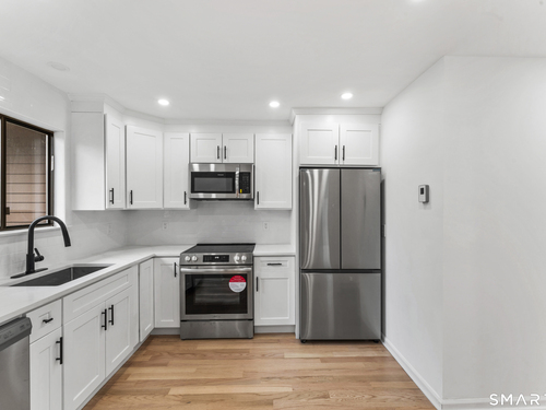 Welcome to this fully renovated end-unit tri-level townhouse ideally located in Glenbrook on the Darien border, just minutes to shops, restaurants, and multiple train stations. The sun-filled main level features an open floor plan with a spacious living room, dedicated dining area, and a brand-new modern kitchen with new appliances, sleek finishes, and excellent flow for everyday living and entertaining. Large windows throughout the home bring in abundant natural light. The upper level offers three well-proportioned bedrooms, including a generous primary bedroom, along with an updated full bath. The layout provides privacy while maintaining a bright, open feel. The finished lower level adds valuable living space, perfect for a playroom, recreation room, or home office, and includes a walk-in laundry room for added convenience. An oversized garage provides excellent storage in addition to parking. Completely updated with modern finishes, new windows, and thoughtful improvements throughout, this move-in-ready home offers comfort, style, and a prime commuter-friendly location.