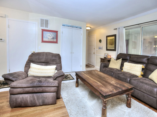 Balcony/Deck, Granite Counters, Partial Bath, Sliders, Hardwood Floor