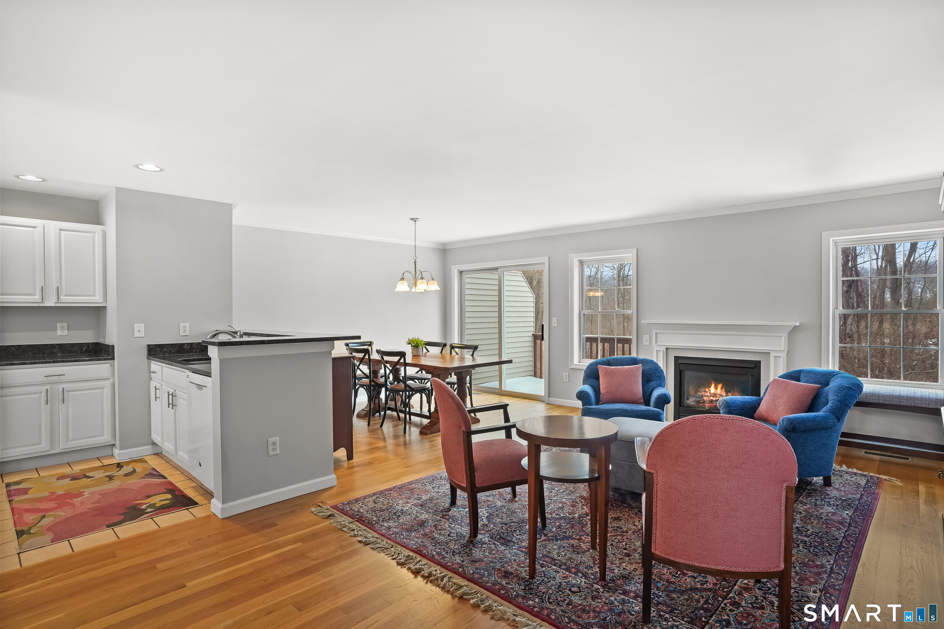 This open concept, multi-level 2 Bedroom, 2.5 Bath, Townhouse with 1650 square feet offers inspiring views from the multiple sunlit windows located in the Living Room, Dining Room and Primary Bedroom. This meticulously maintained home features a Kitchen with a spacious Dining Area, Bay Window, calming wall colors, a Gas Stove, Pantry, Breakfast Bar, and Granite Countertops. Watch the mesmerizing Gas Fireplace located in the Living Room while sitting at the Breakfast Bar drinking your first cup of coffee, and taking in those amazing views! The Living Room also contains 2 large windows and Hardwood Flooring. The Dining Room is perfect for those Friday evening get togethers. Open the Slider to the Deck, and feel that summer breeze. The half bath is also located on the Main Level. The spacious Primary Bedroom is located on the Upper Level and has a Full Bath with a Double Sink Vanity, Hardwood Flooring, Ceiling Fan, Walk-in Closet, and another large closet. The spacious 2nd Bedroom also has a Bay Window, Hardwood Flooring, and a Full Bath. The Laundry is located on the Upper Level for convenience. The Lower Level contains a Family Room with a slider to another Deck and Laminate Flooring. This home comes complete with Natural Gas Heat & Central Air. Access to the 1 Car Garage is on this level. The complex has a Clubhouse, Exercise Room and Heated Inground Pool. Ideal commuting location. On the CT/NY Border. Short distance from shopping and restaurants. Come explore Danbury!