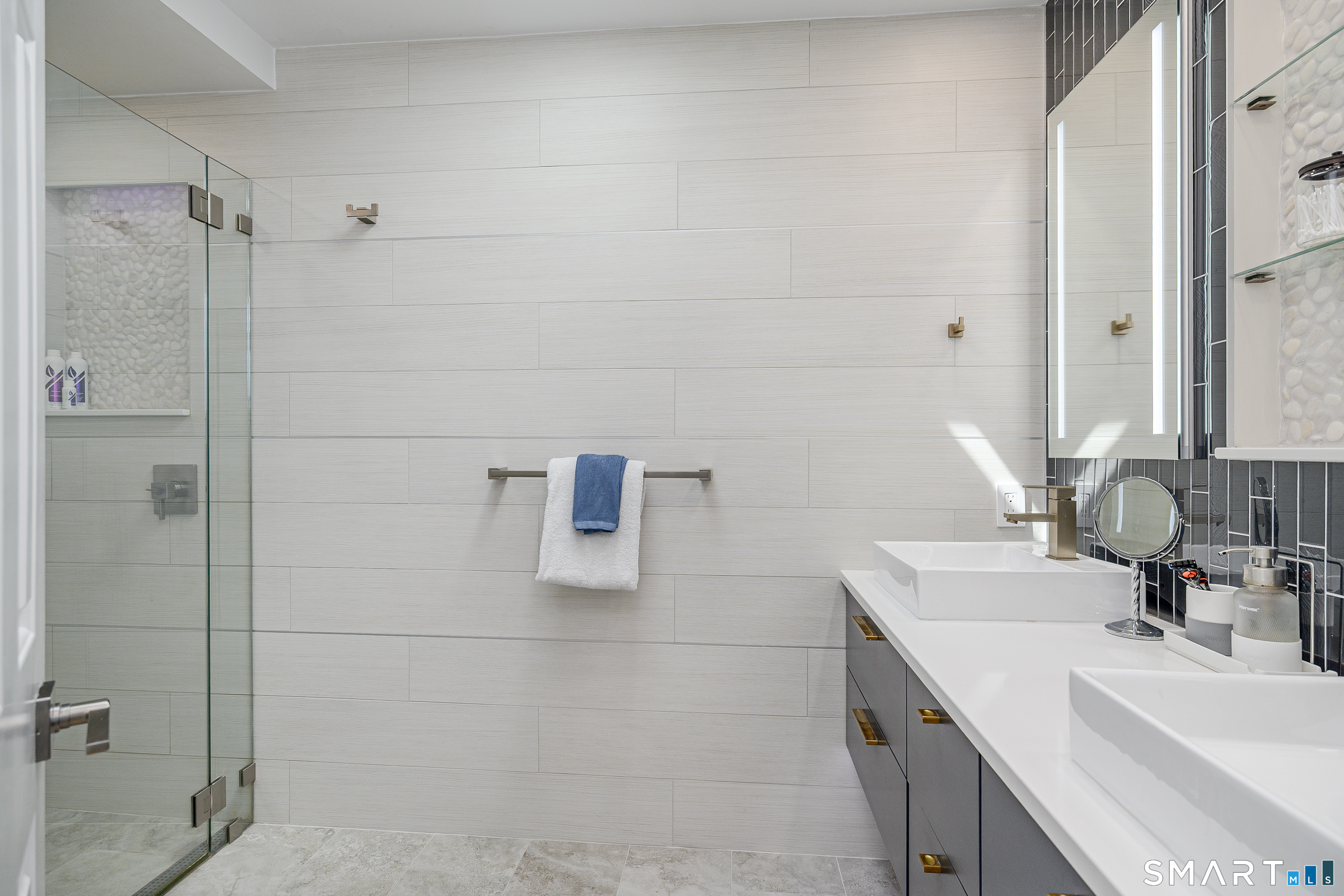 As seen in the Pottery Barn catalog and on a prominent award winning home site! Imagine living in a home that is magazine worthy.....completely reimagined by a design team offering today's trends. Truly a one of a kind, not seen before at Lake Place where you are only a few minutes to the NY border and a short walk to Lake Kenosia, where sailing, kayaking, bird watching are daily activities. Come experience this end unit with an abundance of light that filters through surrounding glass and skylights in the soaring ceilings. The practicality of a pellet stove in the wood-burning fireplace is a cost-saving feature on chilly nights. The endless list of upgrades includes hickory cabinetry, maple hardwood flooring, quartz counters, a plethora of creative built-ins, and designer lighting throughout. Entertain in the spacious kitchen with an oversized quartz island hosting lots of counter seating and stainless Bosch appliances. Hang out on the private deck with a wooded backdrop or work from home in the main level office overlooking that same green setting. Head upstairs to the primary suite with a cathedral ceiling and walk in closet. The designer bath includes 2 vessel sinks, heated flooring and an oversized shower with seating. Lots of storage or a room to finish on the lower level which leads to the 2-car attached garage. Common charges include lawn maintenance, snow removal, roads, roof and siding, windows, water, sewer, pool, tennis, clubhouse and activities.