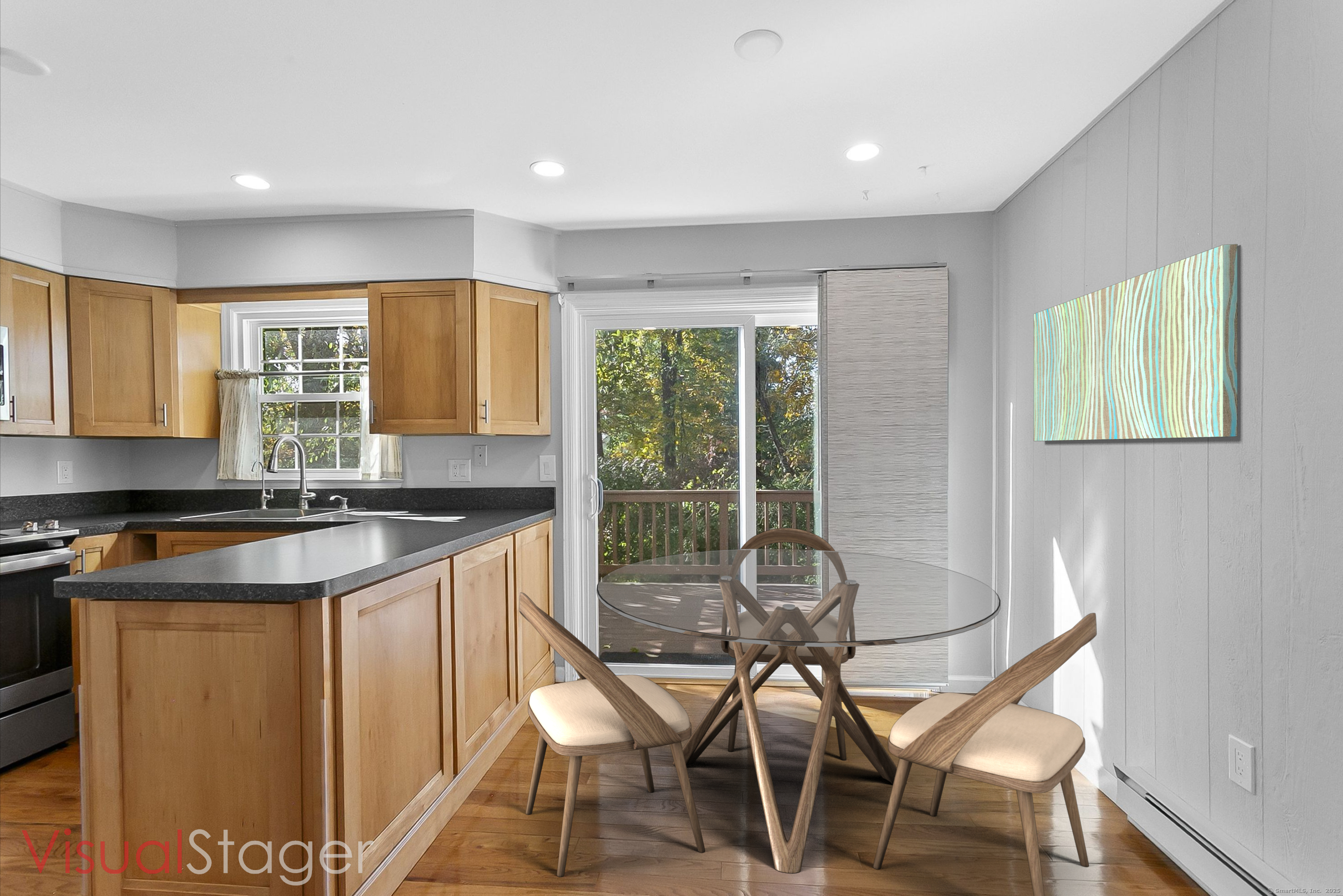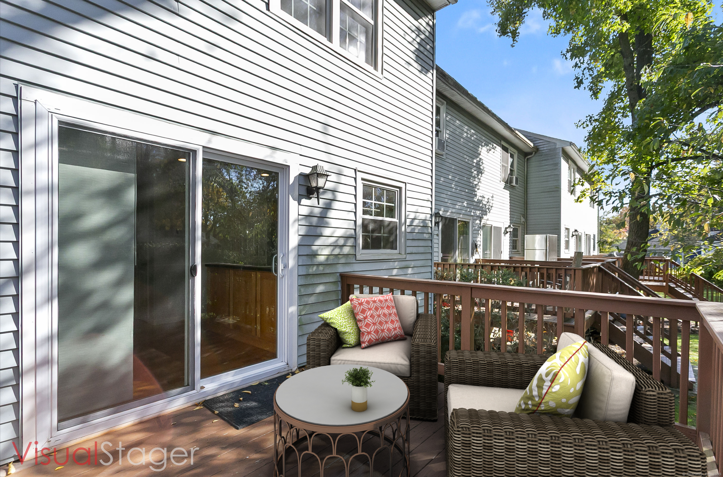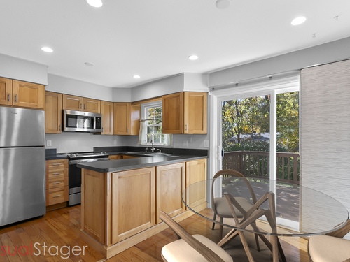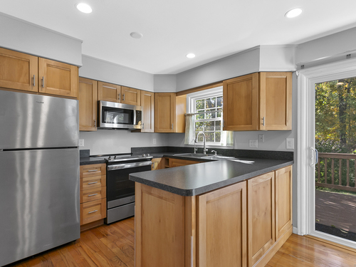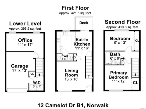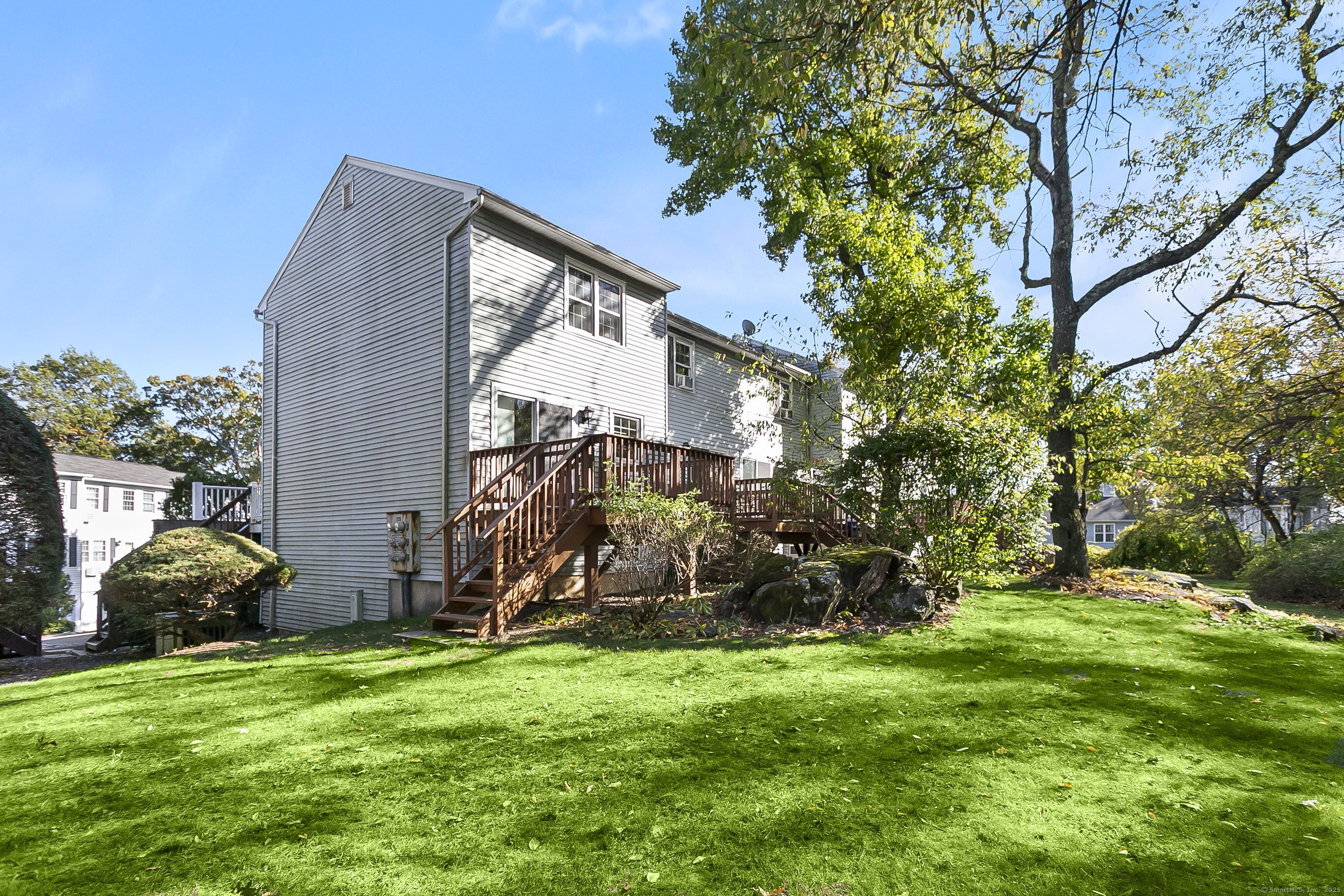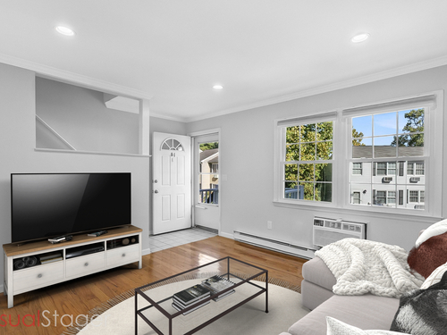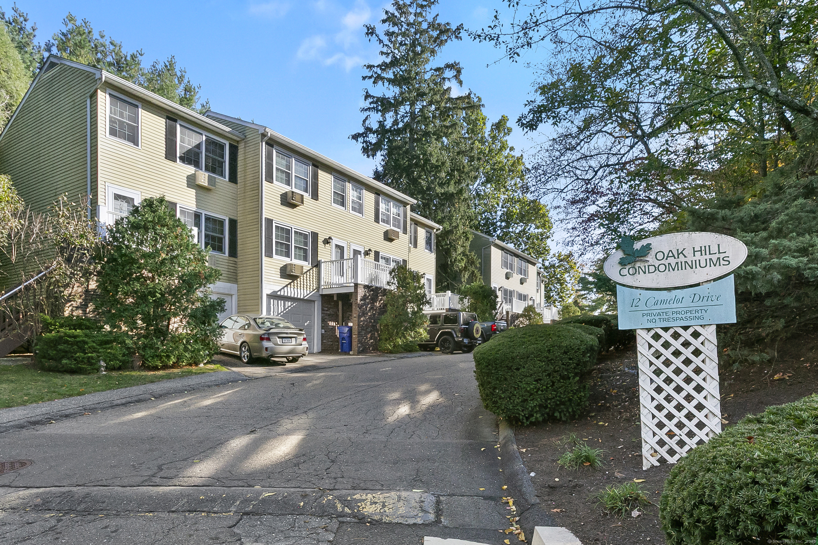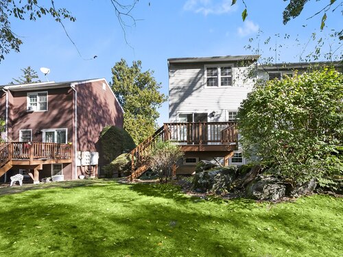 Welcome to 12 Camelot Drive, Unit B1 in desirable Norwalk. This lovely townhouse in a well maintained complex is tucked away in a peaceful residential neighborhood, and offers the space, layout and features for what a savy buyer is looking for today. Perched on a hill, the end unit features a renovated eat-in kitchen with shaker style cabinets and newer stainless steel appliances that lead to a large deck to enjoy all of your outdoor entertaining needs and lovely backyard. Living room with gleaming hardwood floors and a half bath complete the first floor. Upstairs boasts two bedrooms and a renovated full bath. Need to work from home? An additional room, accessed thru the attached garage can accommodate your remote needs or use it as a media or playroom. Washer/dryer add to the perfection. Enjoy the community pool during the summer. This home combines comfort, convenience, and a serene setting. Make your home ownership dreams a reality and move right in!