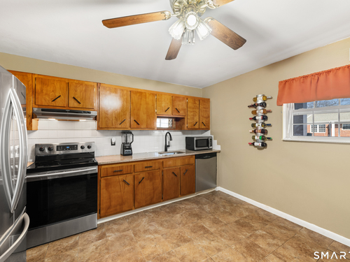 Welcome to Colonial Garden Terrace- a bright and functional 2-bedroom, 1 full bathroom home located in Stamford's desirable Glenbrook neighborhood. This well-laid-out unit features a spacious living room with sliding glass doors leading to a private back deck, perfect for entertaining or relaxing outdoors. The full eat-in kitchen offers ample cabinet space and room for a dining table, creating a comfortable everyday living experience. Both bedrooms are generously sized, complemented by a centrally located full bathroom. An additional onsite storage room provides valuable extra space. Conveniently located just one mile from Chelsea Piers CT, two minutes to Interstate 95, and approximately six minutes to both Stamford Train Station and Downtown Stamford, this home offers exceptional accessibility for commuters and those seeking convenience. A perfect blend of comfort, location, and practicality.