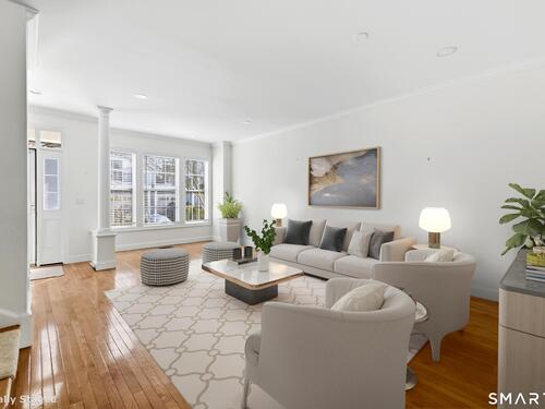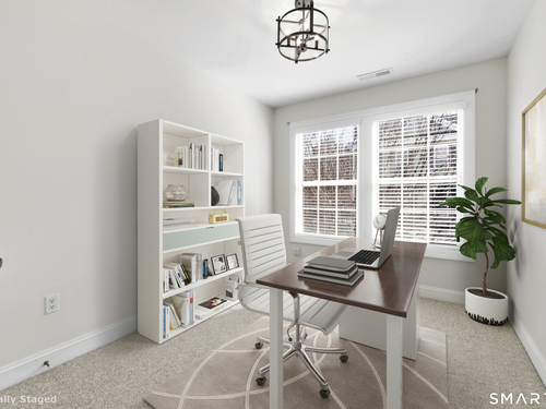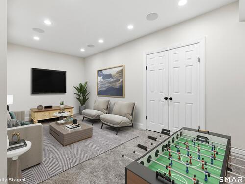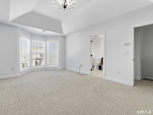 Absolutely stunning 3-bed, 2.5-bath townhouse, freshly painted in neutral tones throughout. When entering through the front door you walk in directly into the first level with convenient street access steps away. The first level features hardwood floors and an oversized eat-in kitchen with a striking feature wall showcasing a white built-in wall unit. Entertaining is effortless with a large granite island that seats three, a breakfast nook, and sliding doors opening to an exterior deck. The spacious living room flows into a separate dining area, creating an open, seamless first-floor layout ideal for both casual and formal gatherings. Upstairs, the primary suite boasts a large walk-in closet with custom built-in shelving and a beautifully renovated en-suite bath featuring dual modern floating vanities, a delightful soaking tub, and a sparkling glass shower. Two additional bedrooms and a hall bath complete the upper level. The lower level offers a mudroom off the two-car garage, plus a nice finished space perfect for a home office or media room. The coveted Rivington lifestyle in The Hills-unique to this home-includes a private pool and pool house within walking distance. The Main Clubhouse features indoor & outdoor pools, fitness center, yoga studio, movie theater, arts & crafts room, bocce, tennis, pickleball and basketball courts, walking trails, and more. Just one hour to NYC and close to highways and shopping-this is the ultimate in leisurely living.