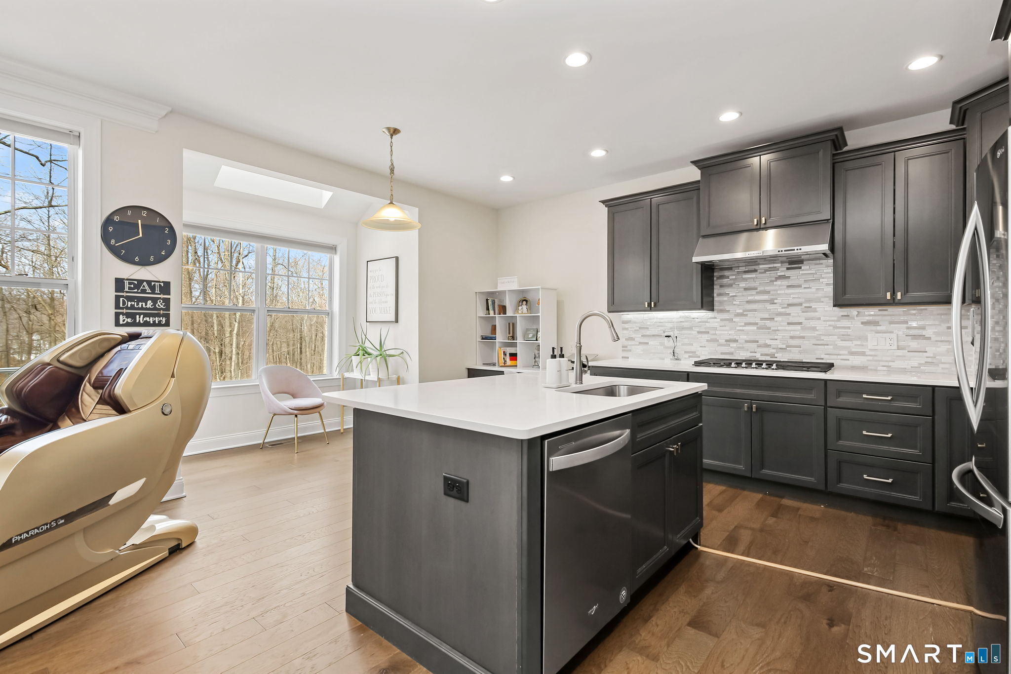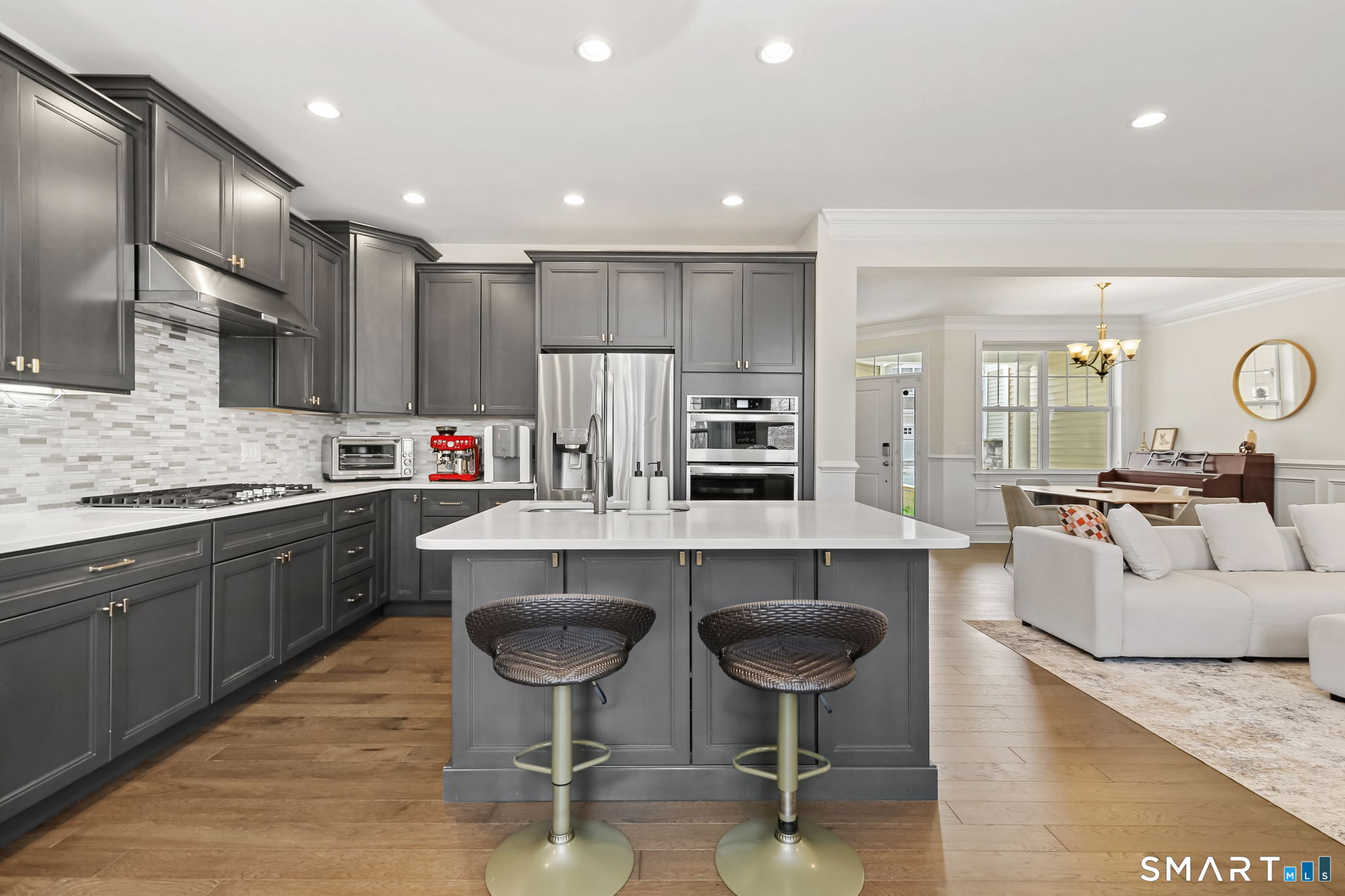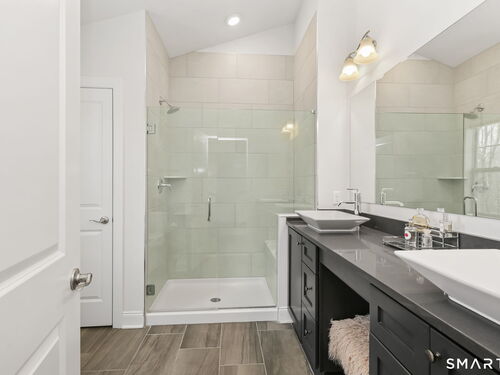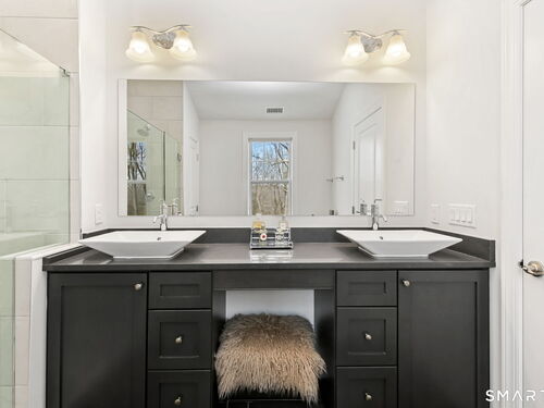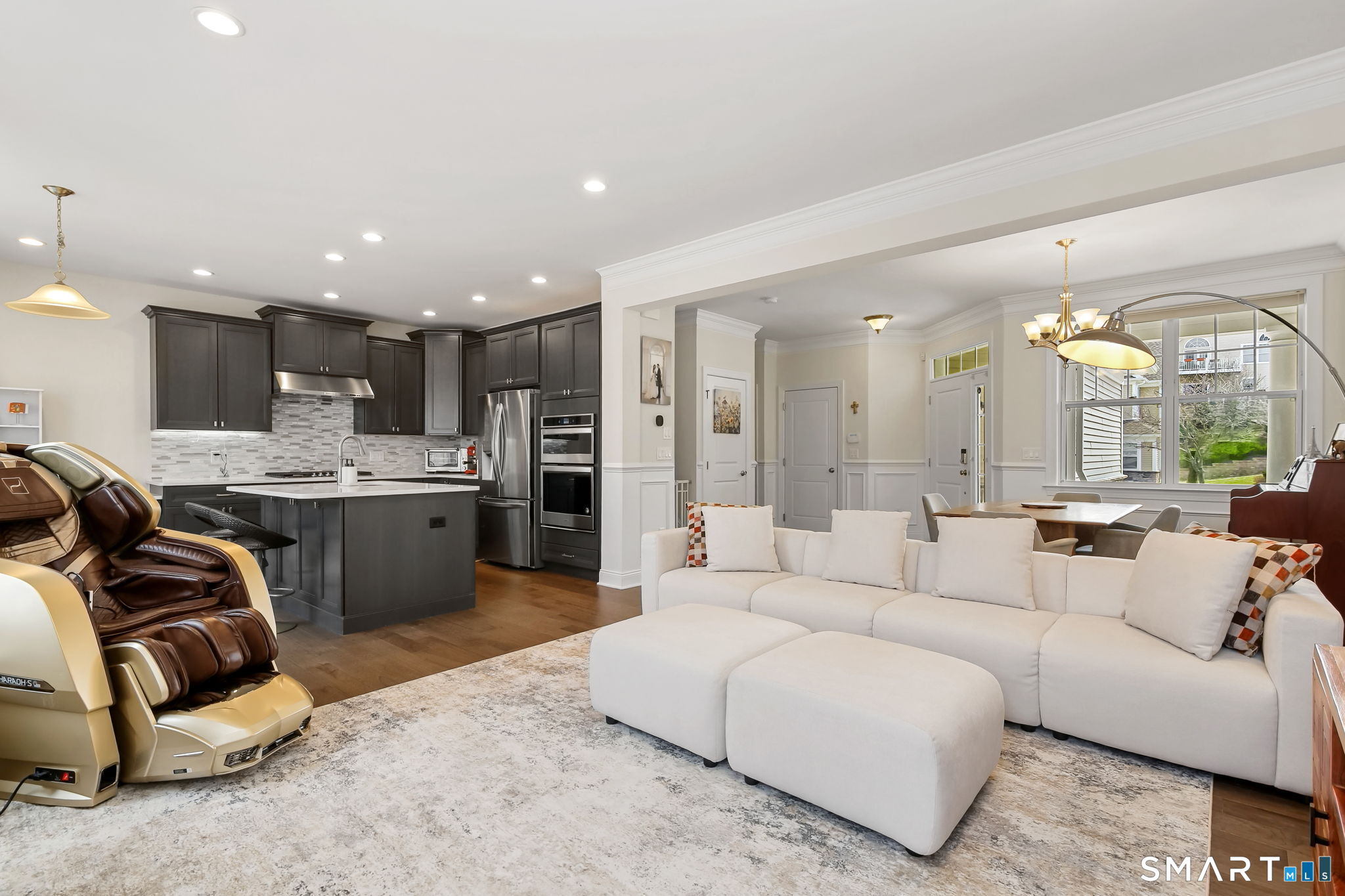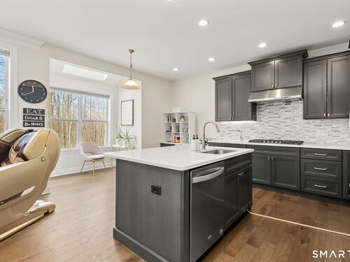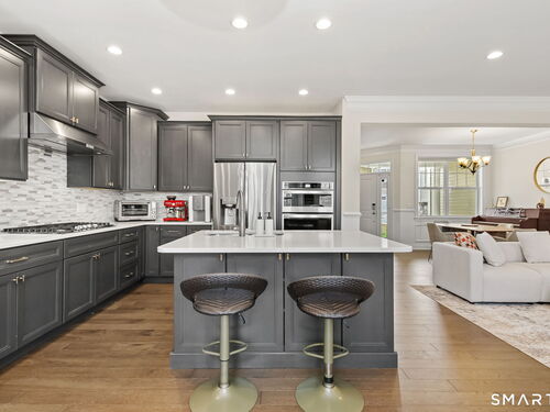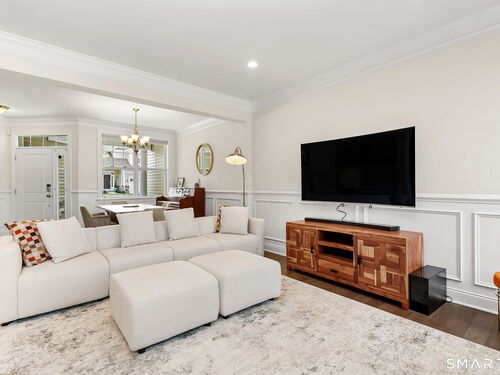 Experience the pinnacle of sophisticated living in this impeccably upgraded "Portman" model at The Ridge at Rivington. Overlooking a serene wooded nature trail for ultimate privacy, this residence offers the ease of condo living with the scale and refined feel of a private home. Truly turnkey and lightly lived-in, the open-concept layout impresses with 9' ceilings, hardwood floors, crown molding, and a cozy gas fireplace. The heart of the home is the chef's kitchen, featuring an expansive quartz center island with seating, custom cabinetry, premium stainless steel appliances, and a beautiful tile backsplash. Upstairs, the vaulted primary suite serves as a true sanctuary, boasting a spa-like bath with an intricate floor-to-ceiling tile shower and frameless glass enclosure. Two additional spacious bedrooms, a dedicated laundry room, and a full bath complete this level. For future expansion, the massive walk-out lower level is already plumbed for a full bathroom. Complete with an attached two-car garage, you'll enjoy the ultimate convenience and security year-round. Beyond the home, enjoy amenities at The Rivington Club, featuring a state-of-the-art fitness center, indoor/outdoor pools, tennis courts, and a stylish clubhouse for social gatherings. Conveniently located near I-84 and Metro-North, this home offers a maintenance-free lifestyle without compromise. Luxury awaits in Danbury's premier community!