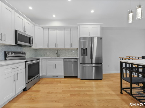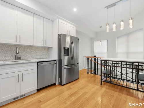 Move right in and enjoy this bright, welcoming four-level home offering two bedrooms and two and a half baths. Sunlight fills each level, highlighting gleaming wood floors, beautifully updated bathrooms, and an eat-in kitchen with stainless steel appliances that's ready for everyday living and easy entertaining. The living room feels both inviting and refined, centered around the wood-burning fireplace with a sleek gray marble hearth. Upstairs, the primary suite is a peaceful retreat with a soaring cathedral ceiling and a marble bath featuring a double vanity and a spacious walk-in shower. Spacious 2nd bedroom, full marble bath, and stacked W/D complete the 2nd floor. The third-floor loft is filled with natural light and offers flexible space ideal for a home office, den, or exercise area. On the lower level, you'll find space perfect for a mudroom, recreation area, or workspace, along with direct access to a generous two-car garage. Set within the desirable Gazebo complex, this turnkey home offers easy access to downtown Stamford, Stamford Hospital Tully Health Center, the Ferguson library, popular dining, and convenient shopping. With the Glenbrook Metro-North station under a mile away and Stamford Station less than two miles away, this home delivers comfort, convenience, and an easy, low-maintenance lifestyle. Available for rent or to own, you don't want to miss the chance to make 132 Hope Street, C, your home.
