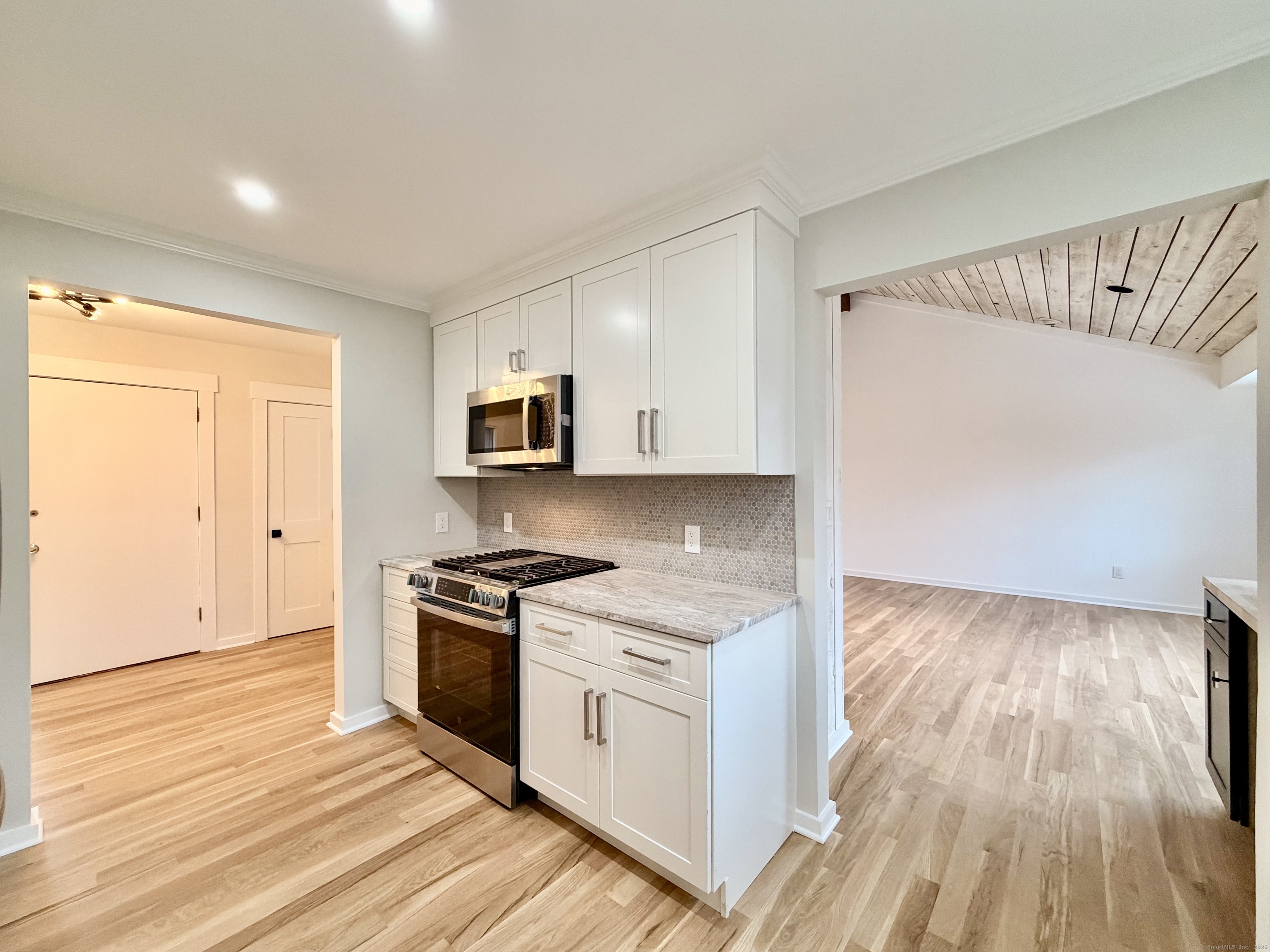 Discover unparalleled luxury and effortless living at 133 Bannock Ln #A, a stunningly renovated 2BR/3BA ranch-style condo in Stratford's premier 55+ Oronoque Village. Masterfully reimagined by acclaimed local renovators MPires Construction known for their high-quality craftsmanship and innovative design. This 1,938 sq ft gem has been completely updated with designer details that blend sophistication and comfort. Step into an open-concept main level where vaulted ceilings soar above gleaming hardwood floors, a chef's kitchen dazzles with quartz counters, stainless steel appliances, and a chic island perfect for gatherings. The sunlit living room flows seamlessly to a private deck, ideal for your morning coffee. The primary suite offers a serene retreat with a spa-like en-suite bath, walk-in closet, and serene ambiance. The lower level features a full in-law suite with walk-out access to the picturesque grounds, a fully equipped kitchenette for effortless entertaining, a spacious bedroom, a large, beautifully appointed full bath, and a dedicated laundry room. Every inch reflects expert renovation: energy-efficient windows, fresh HVAC, and meticulous finishes that elevate daily life. Nestled in 300 acres of picturesque New England beauty, Oronoque Village surrounds you with resort-style amenities: three sparkling pools, five pickleball courts, three tennis courts, a state-of-the-art fitness center and easy access to Stratford beaches. claim your slice of paradise!