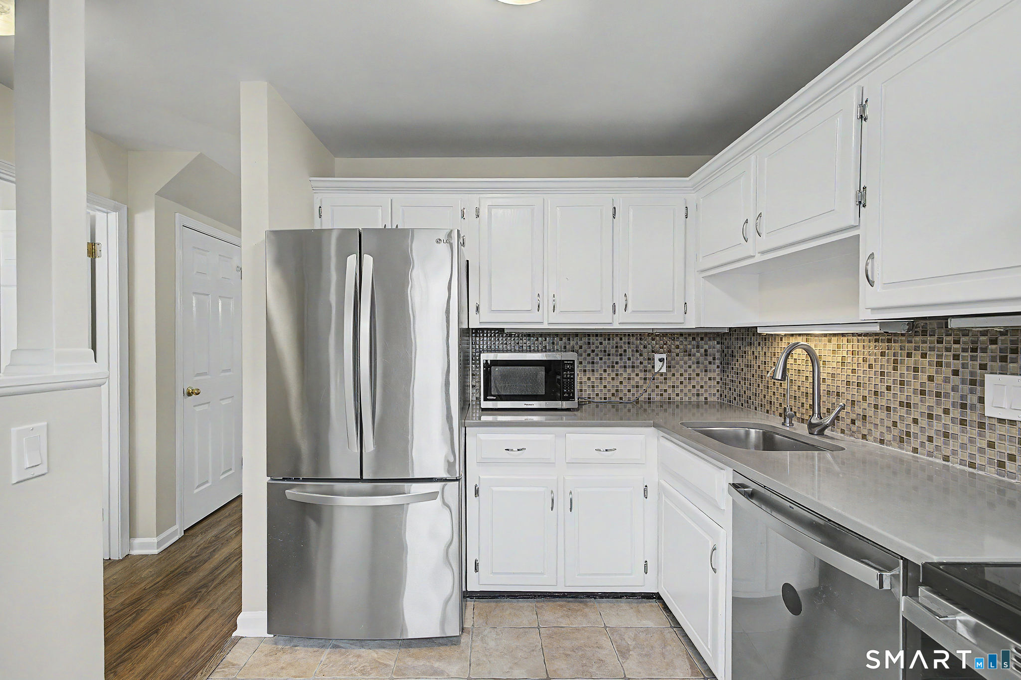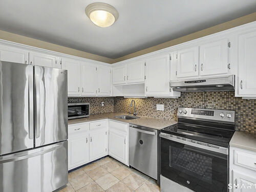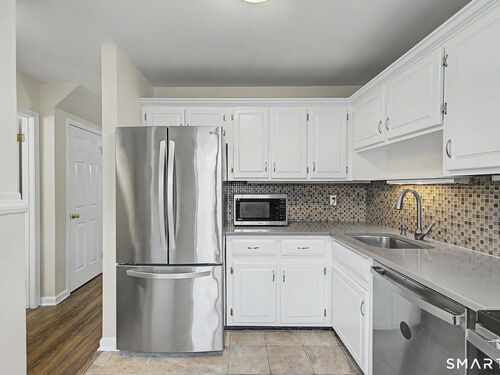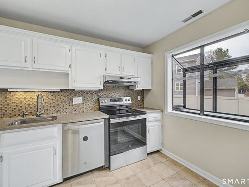 Tucked away in a quiet complex in Glenbrook, this 3 bed 1.5 bath townhouse has it all - 2 car garage plus one outside spot, laundry in unit, central air, fireplace, backyard, and fresh paint. The eat in kitchen features stone countertops and stainless steel appliances including dishwasher. The second floor features 2 large bedrooms with ample closet space, and a full bathroom. The 3rd bedroom is located on the 3rd floor, with ample closet and additional attic walk-in storage space. Additional storage in 2nd floor of garage. Sewer and water included in HOA fee. This unit is within walking distance to the Glenbrook Train Station, shops, restaurants, and a short drive to Downtown Stamford!